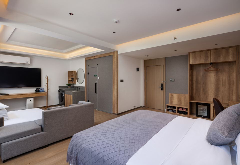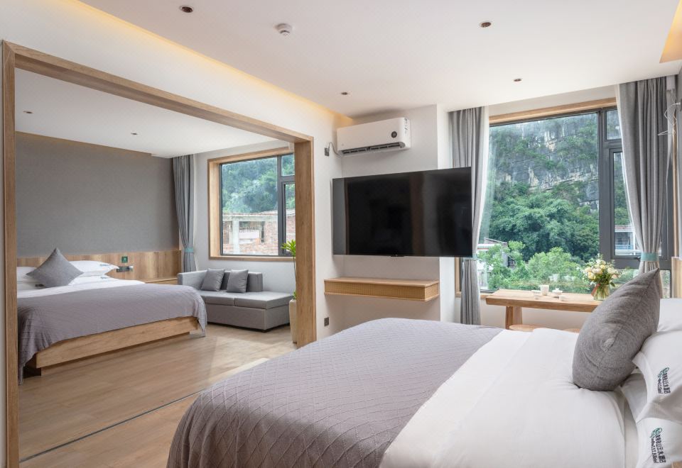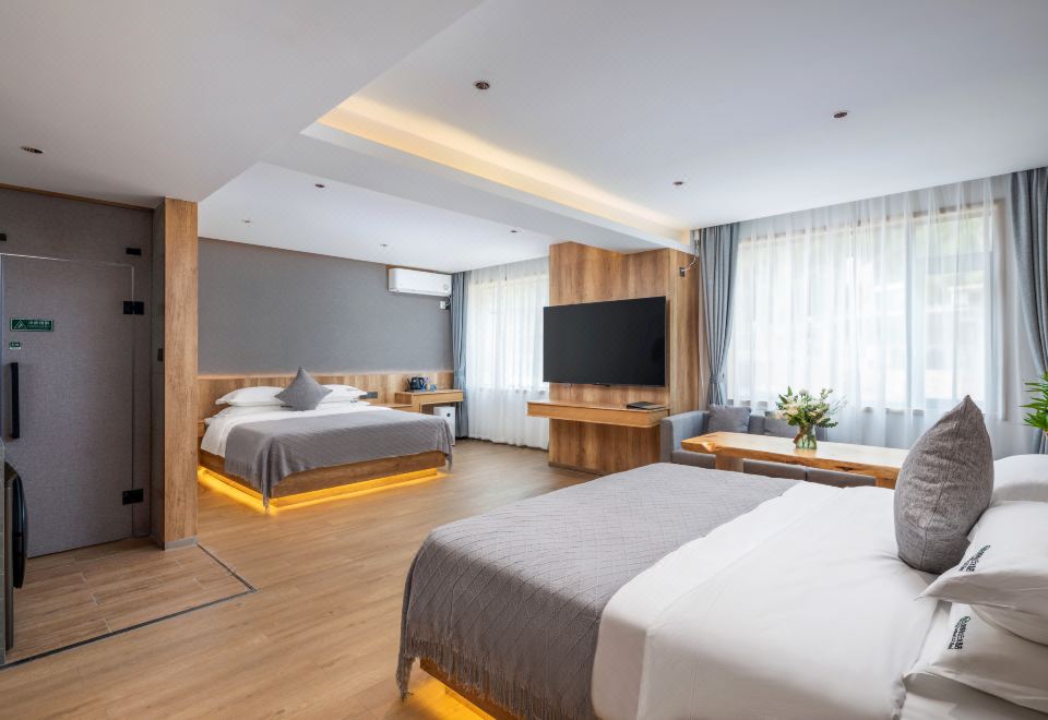 依山雅静双大床房-独立小米洗衣机-空气净化-冰箱