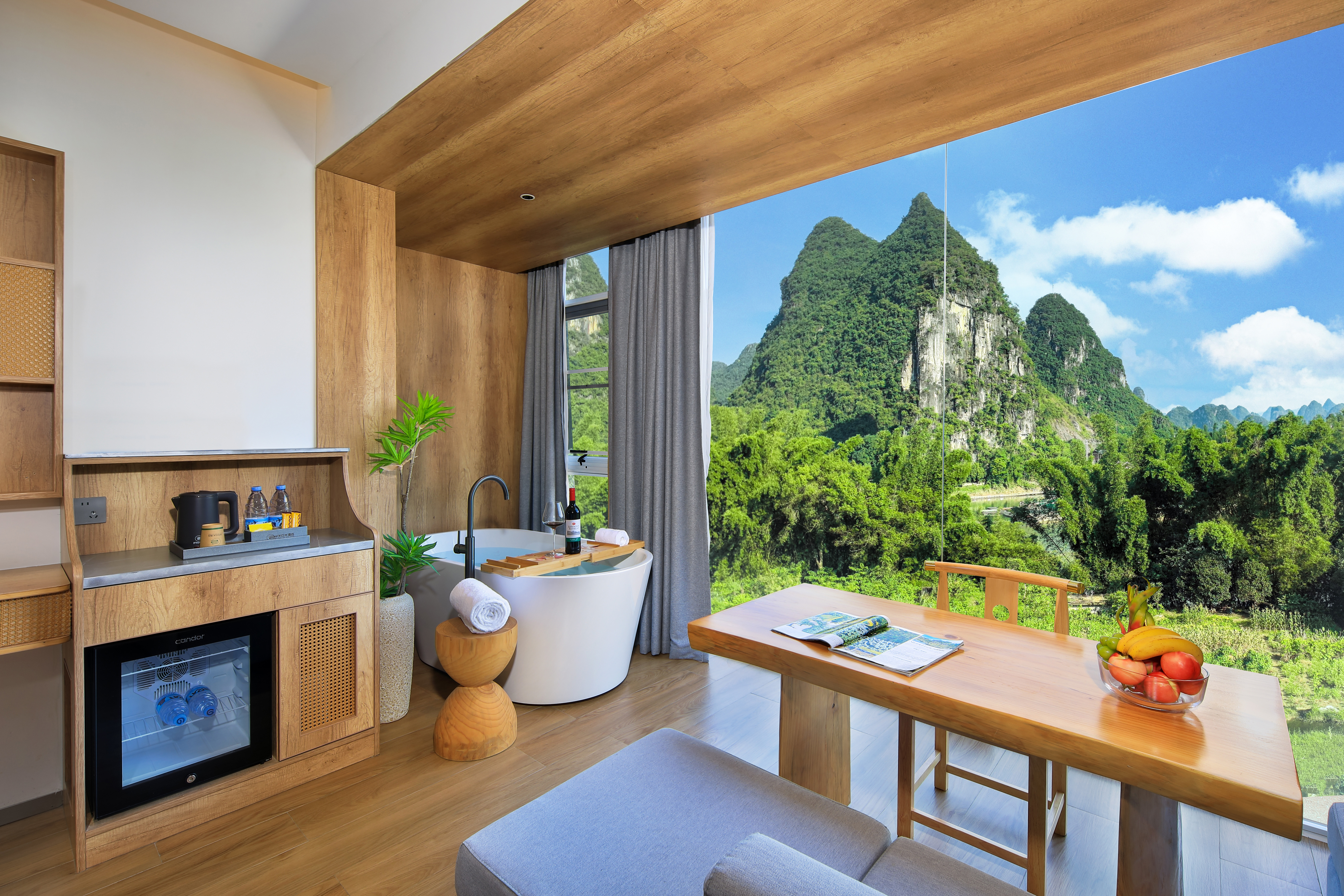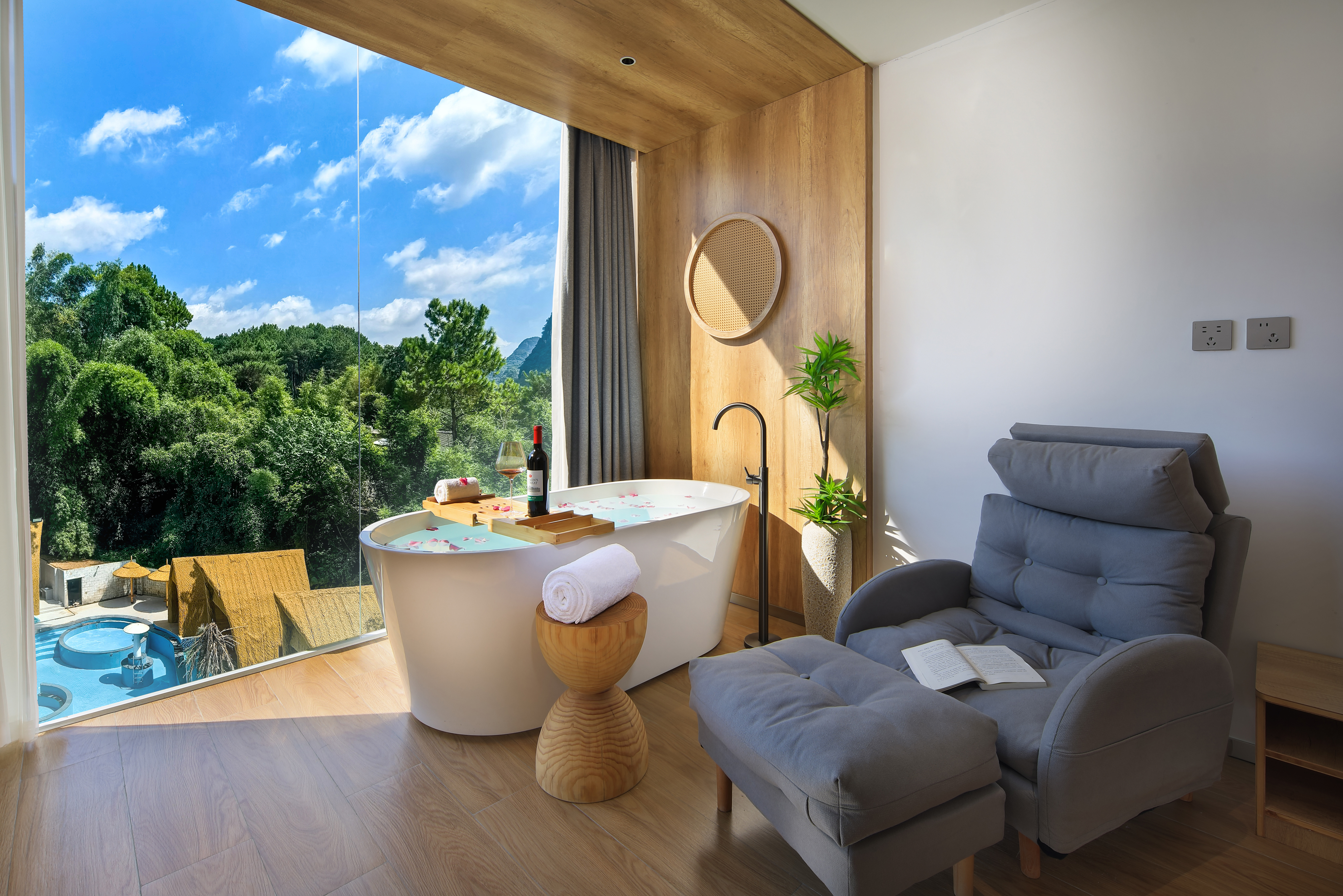 园林泳池观景浴缸一室一厅-有沙发-全屋智能-独立洗衣烘乾机-空气净化器-冰箱