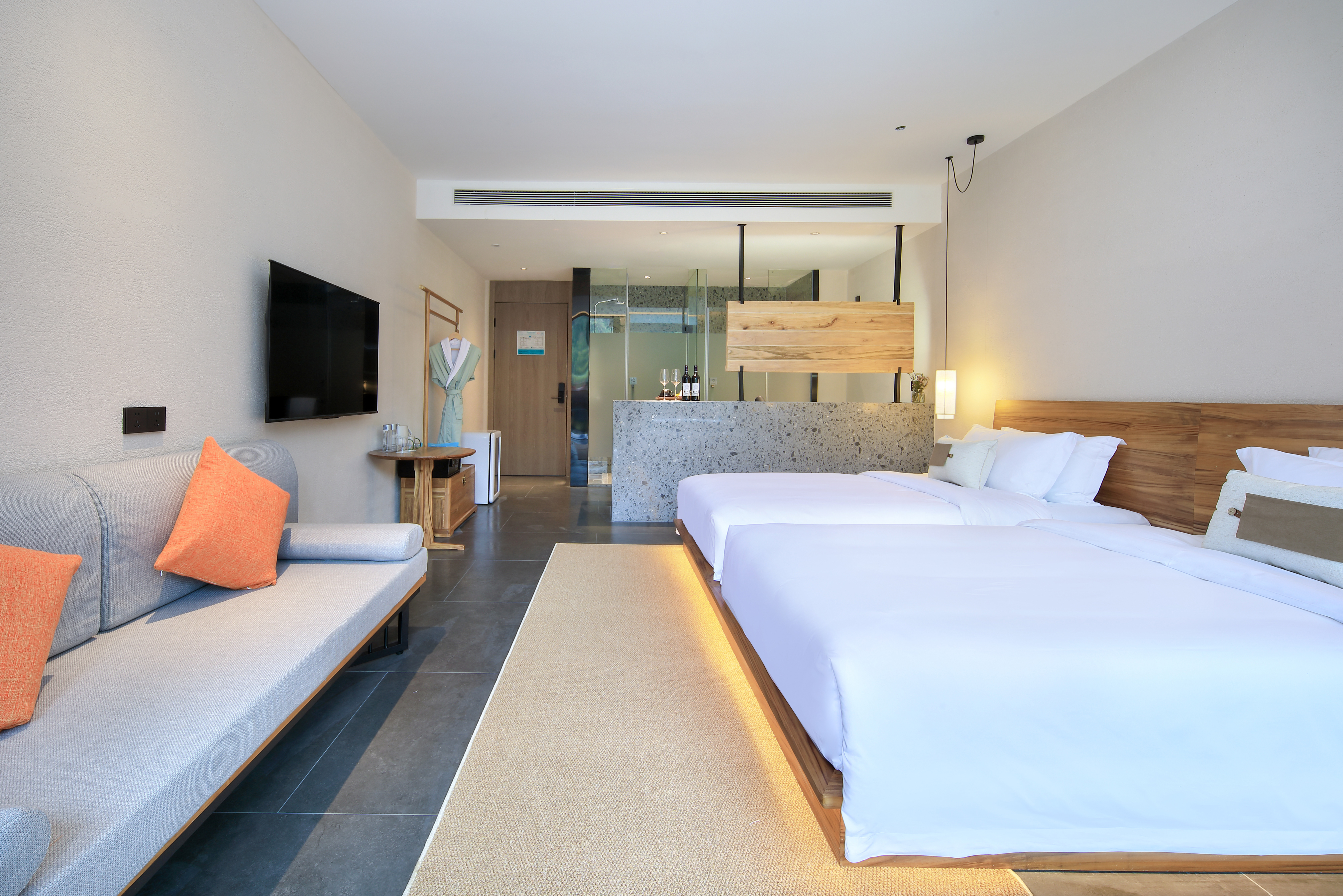 云雾大床房+慢回弹记忆枕+进口手工柚木家俱+全屋客控