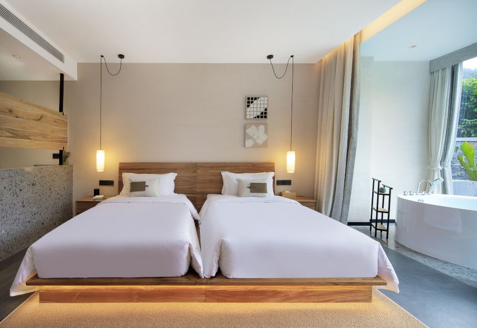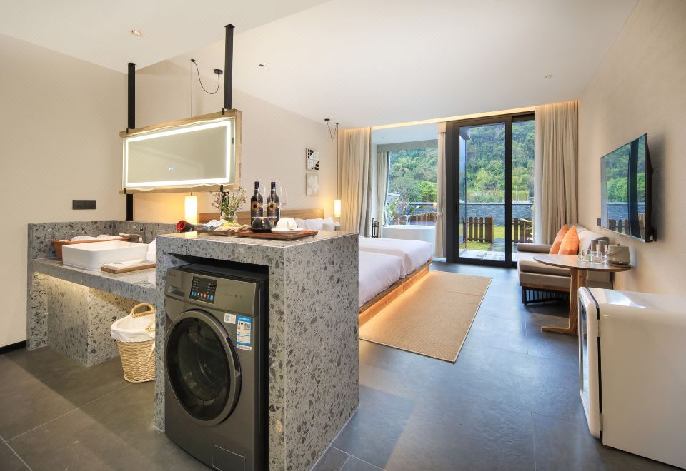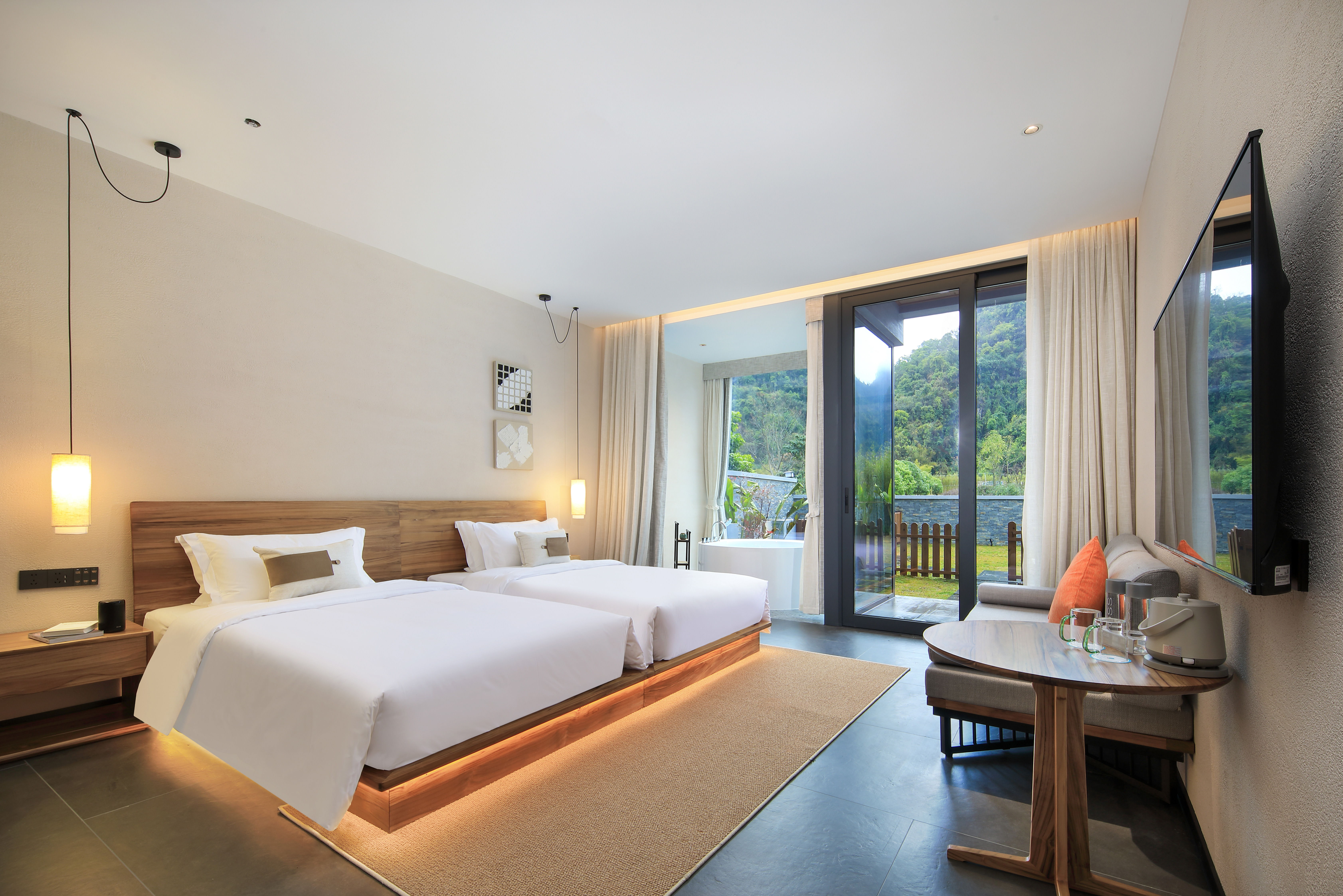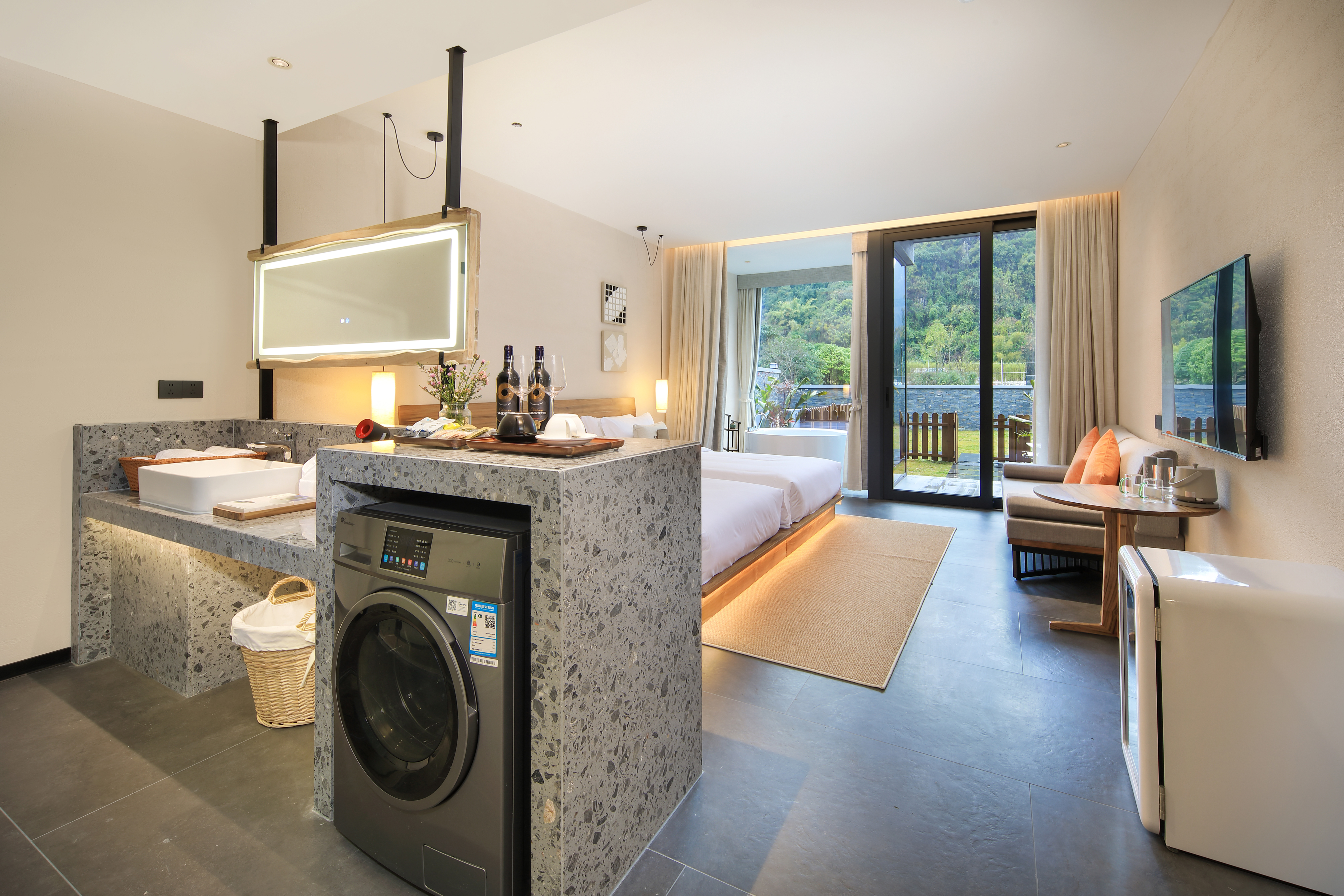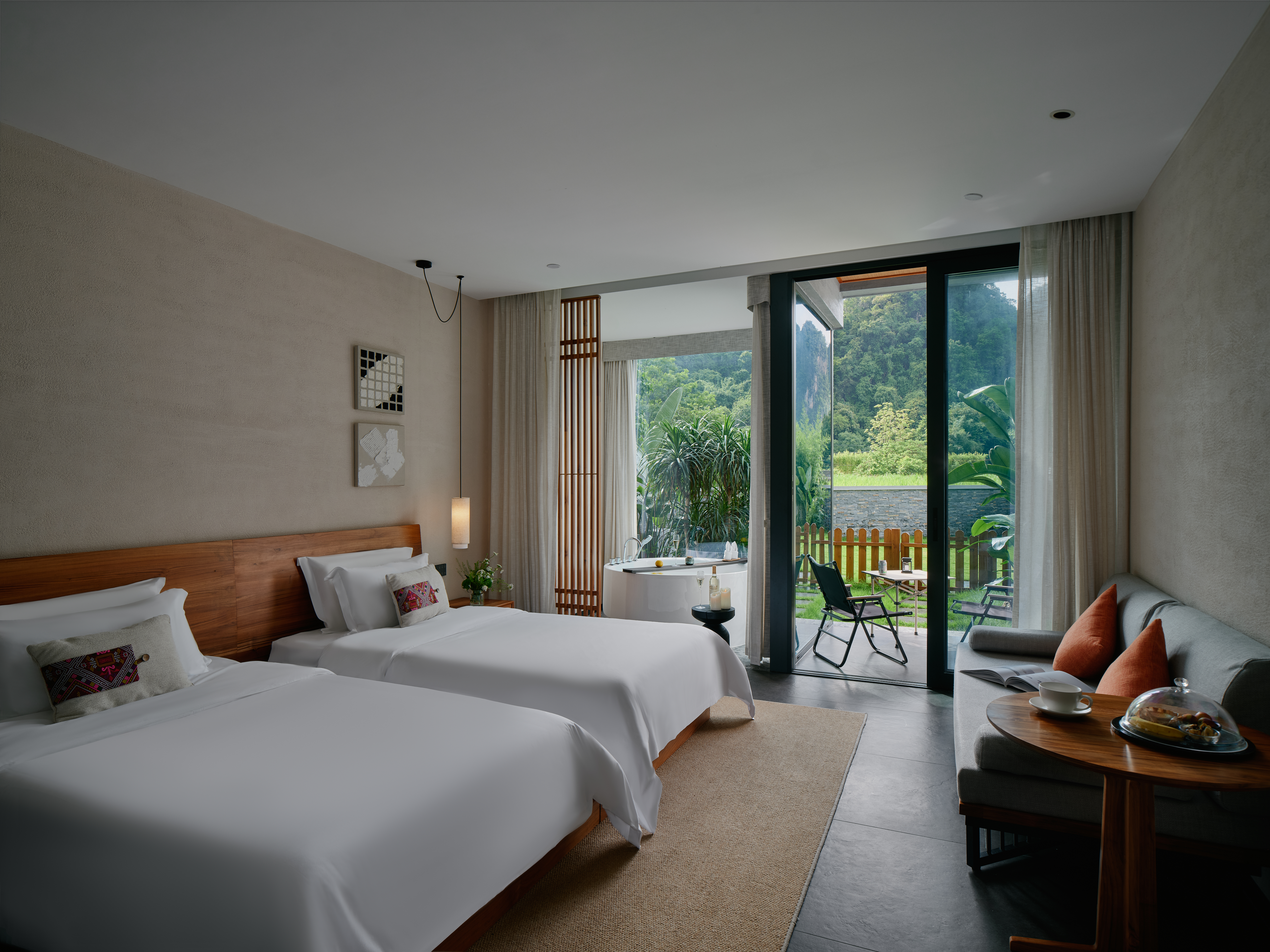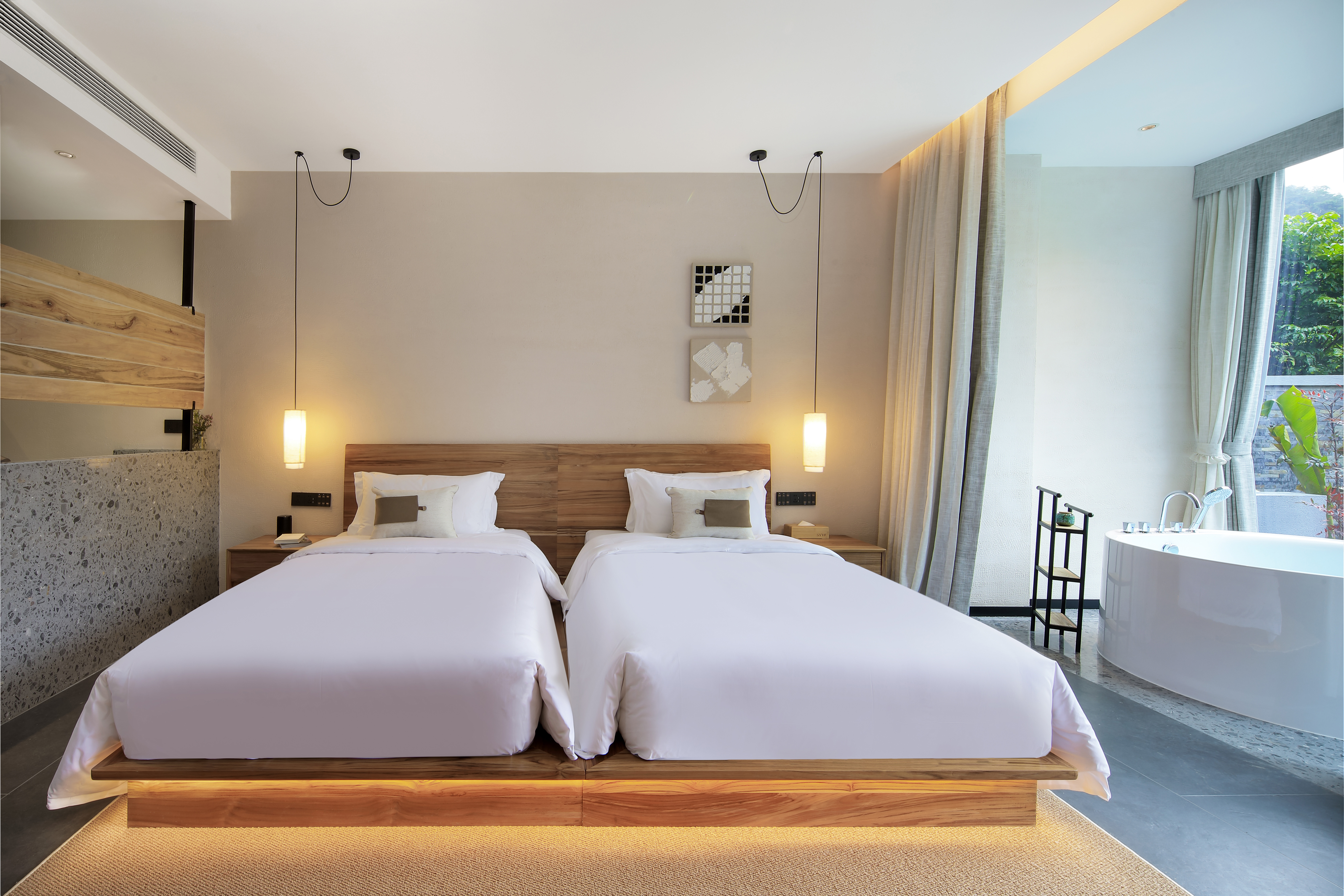 庭院双床房+dyson吹风筒+进口手工柚木家俱+洗烘机