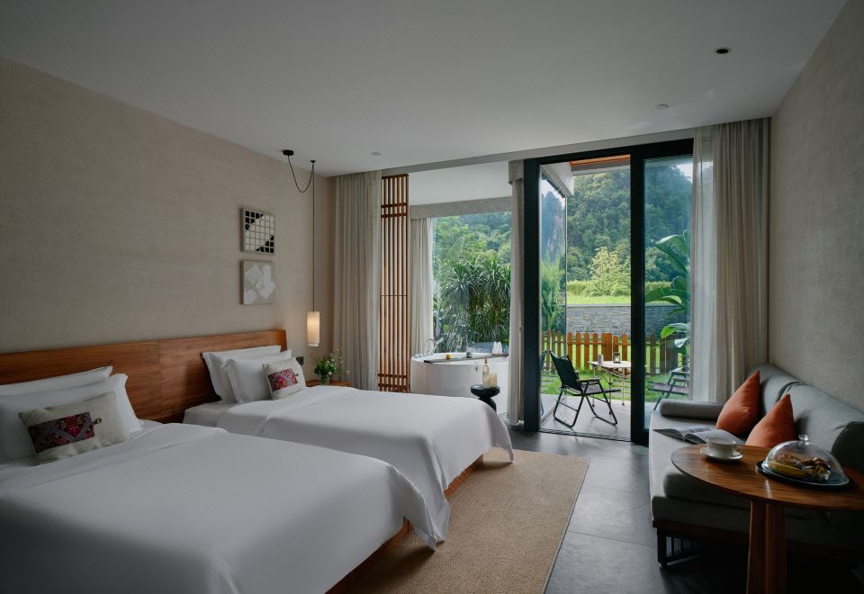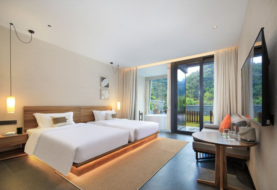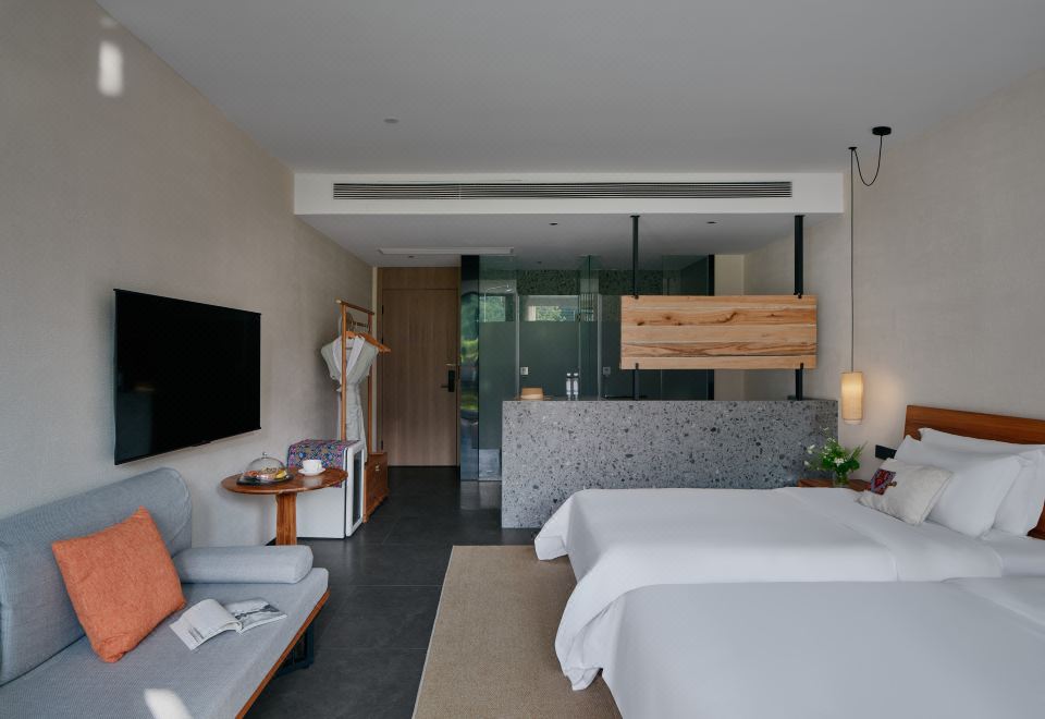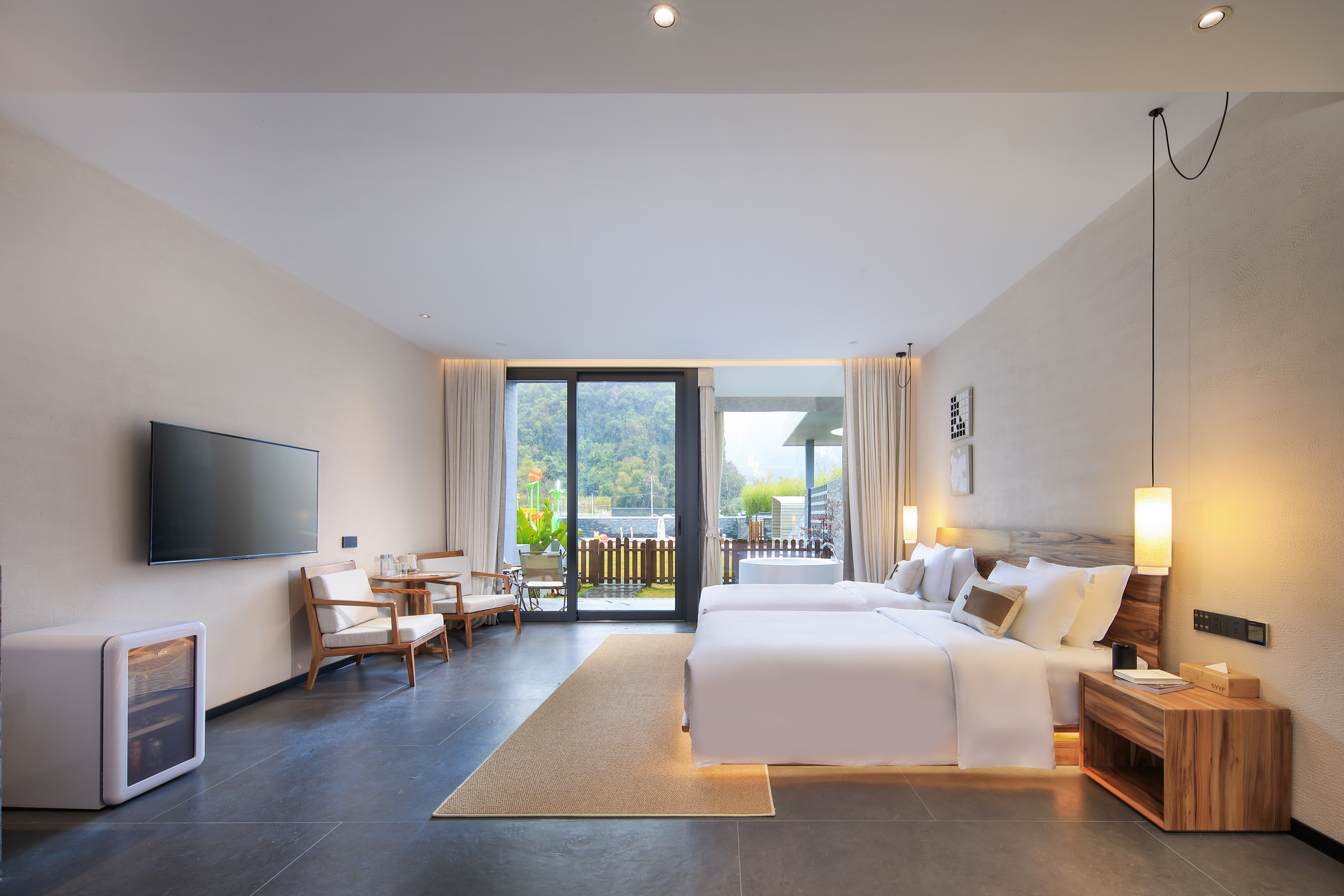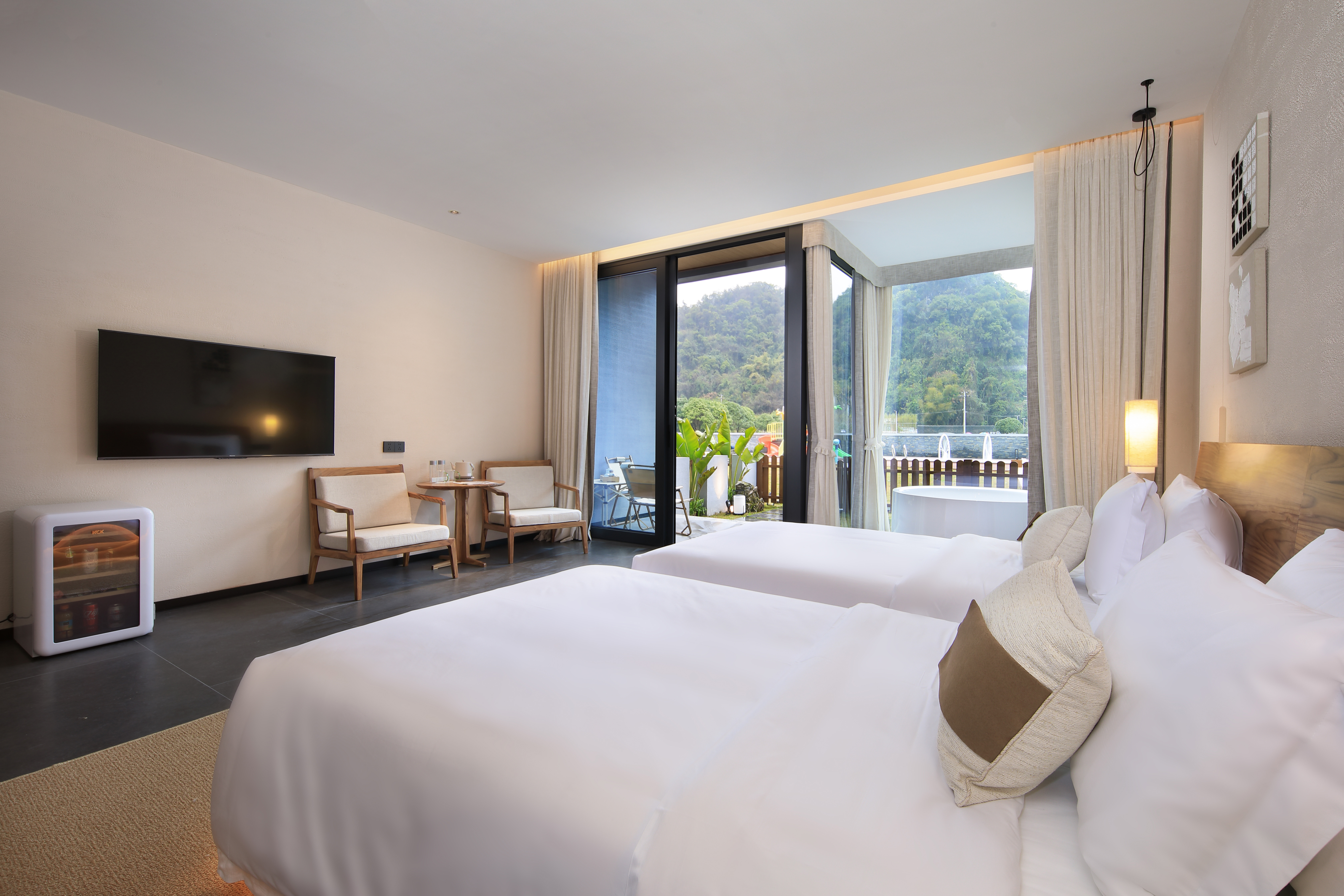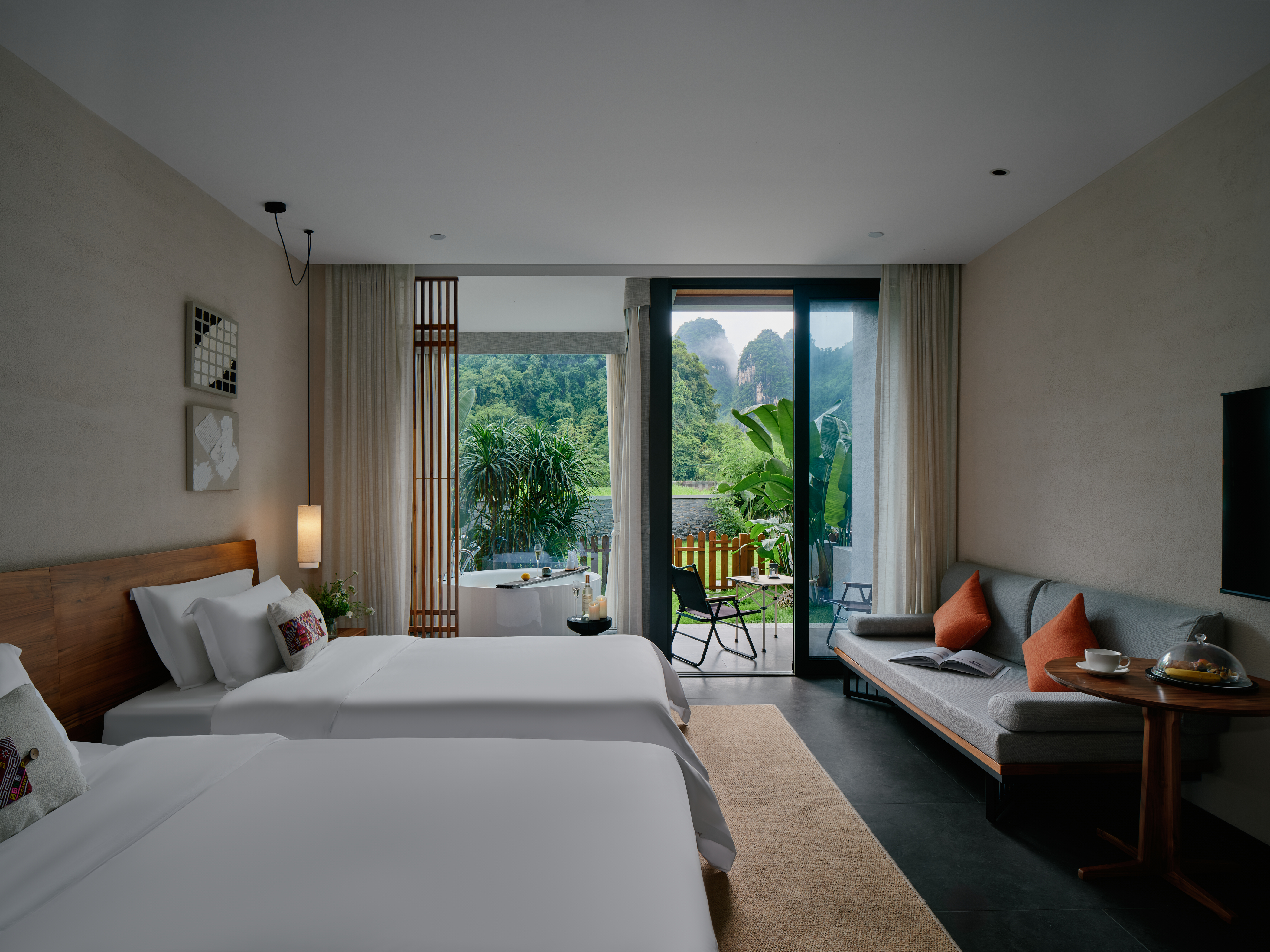 庭院双床房+dyson吹风筒+进口手工柚木家俱+洗烘机