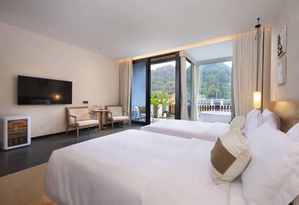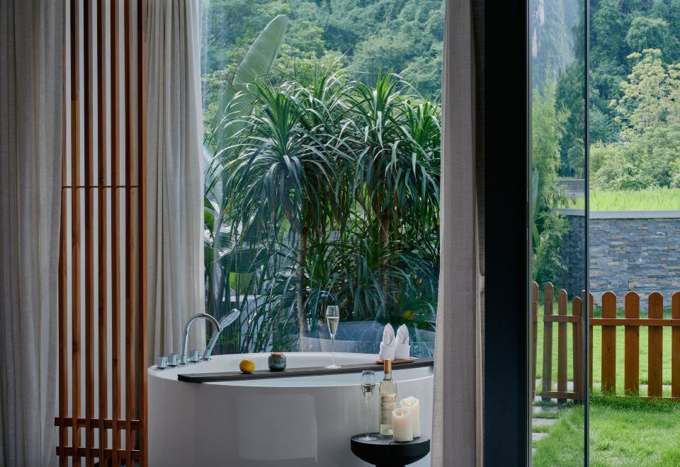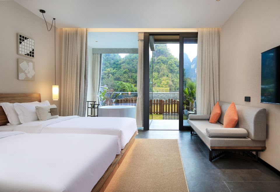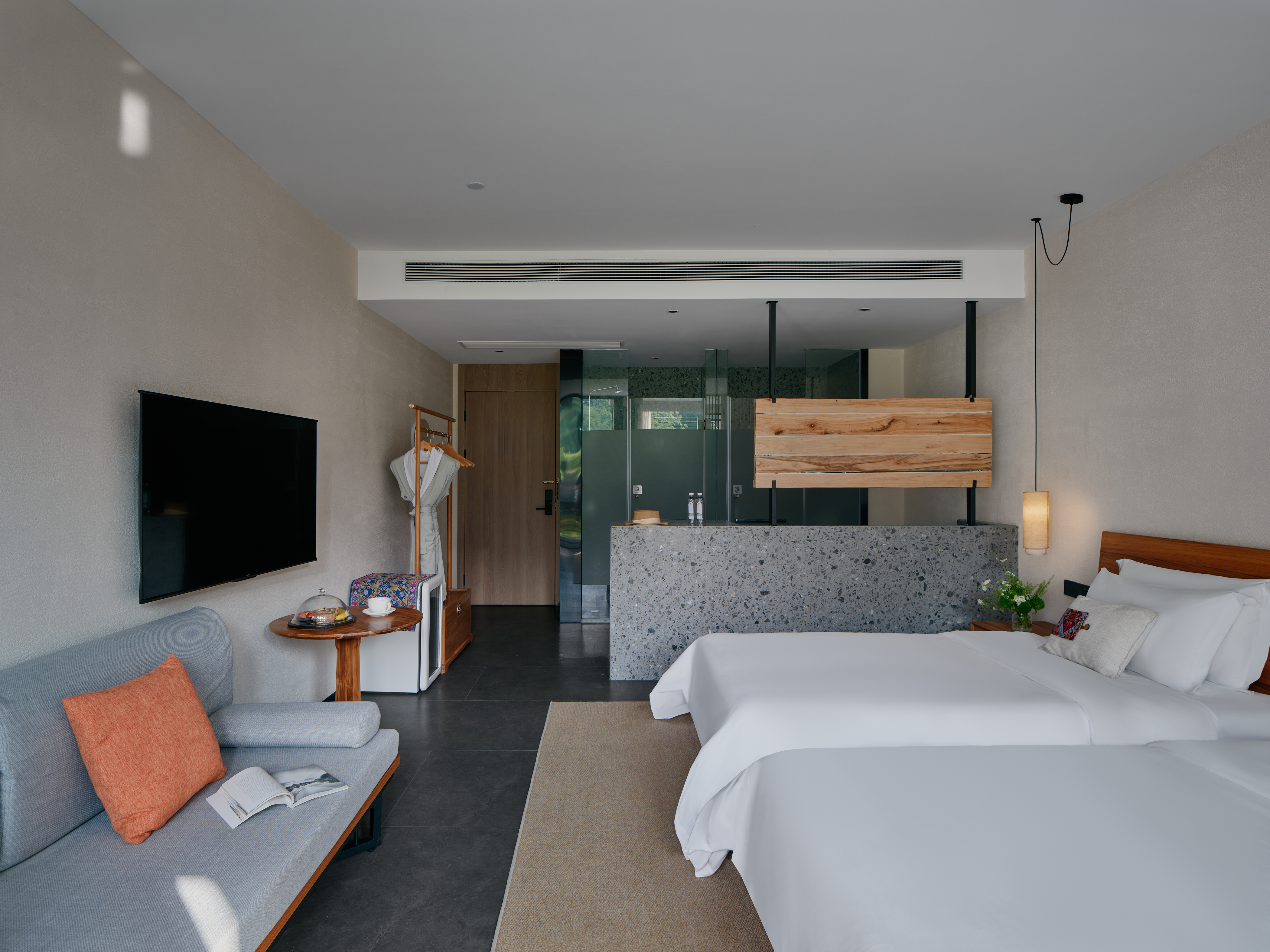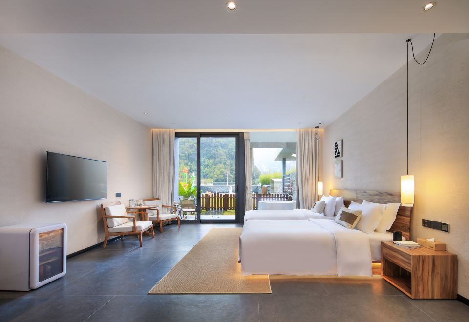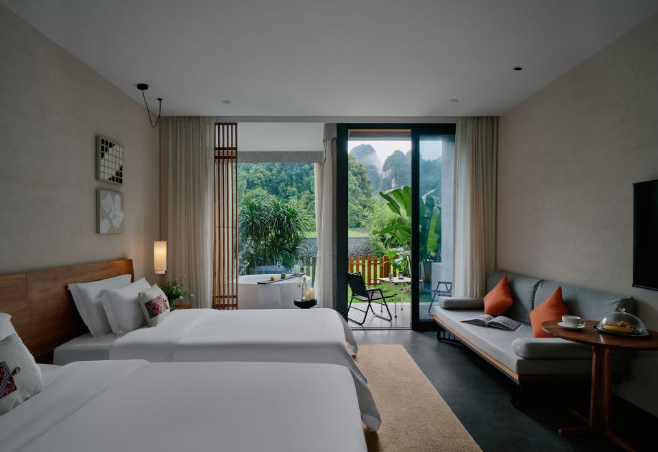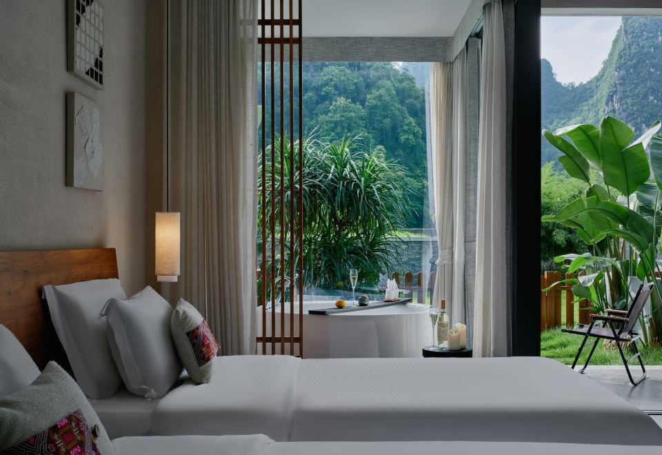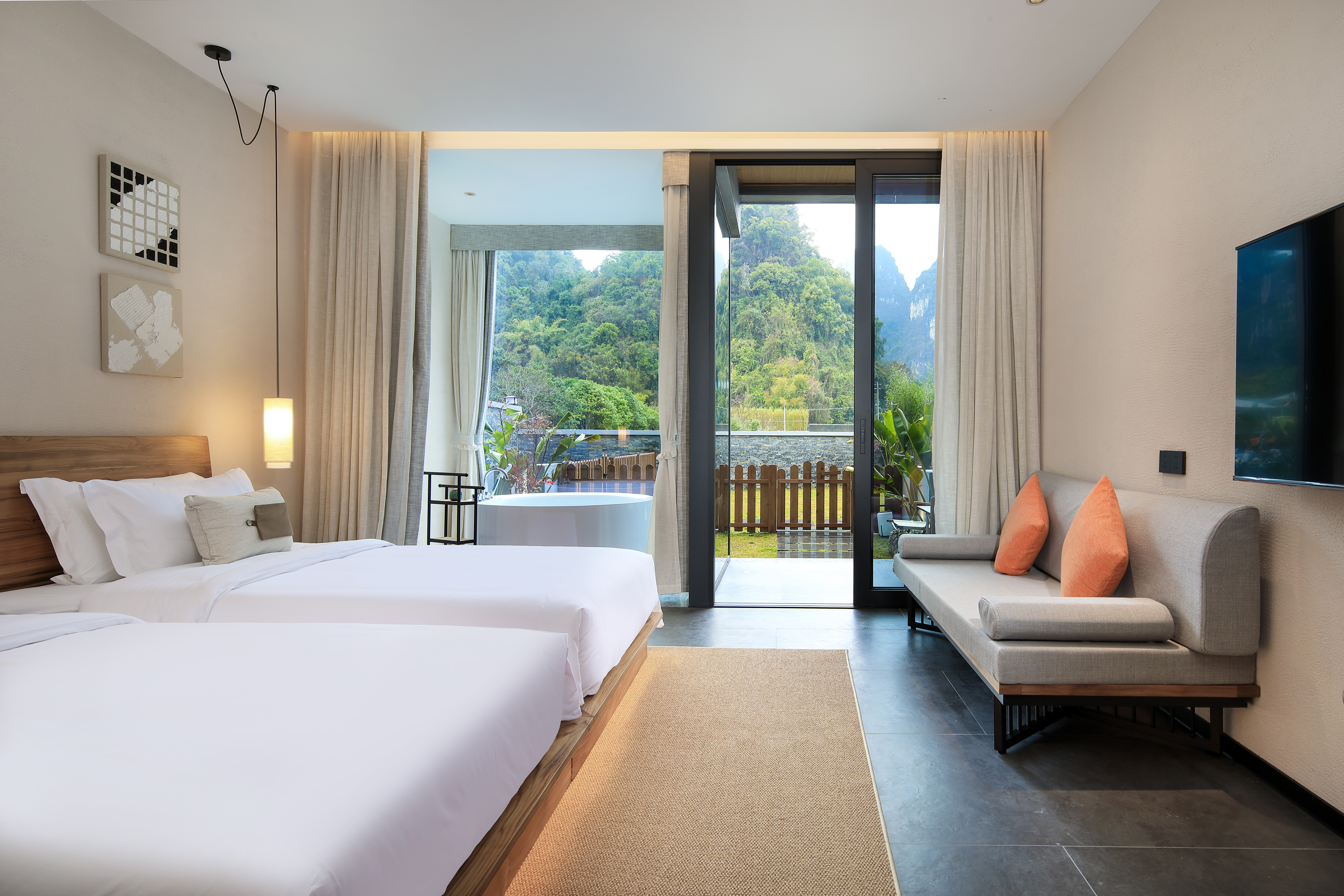 庭院双床房+dyson吹风筒+进口手工柚木家俱+洗烘机