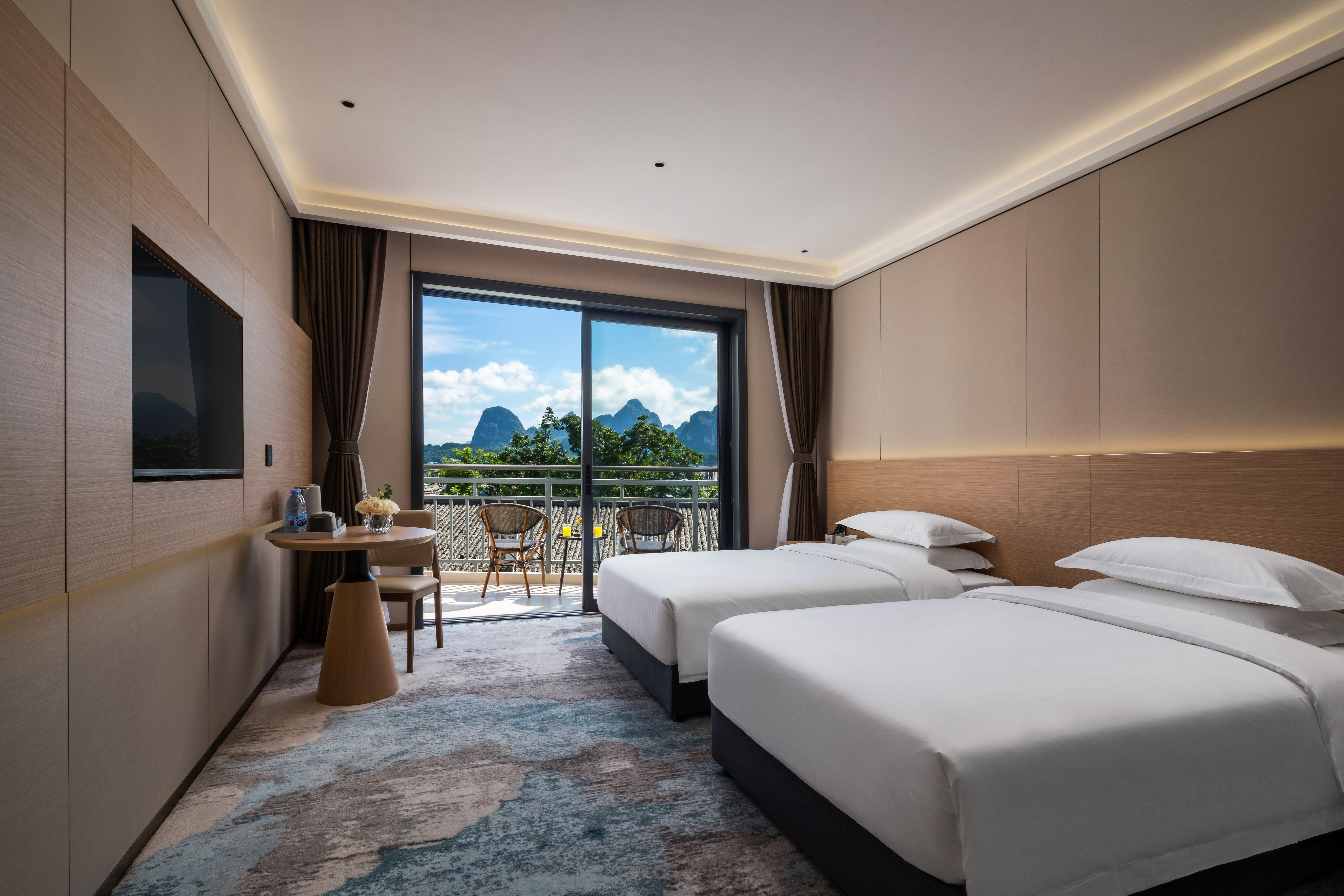 翠峦·江景阳台双床房(江畔山景+观烟雨漓江)