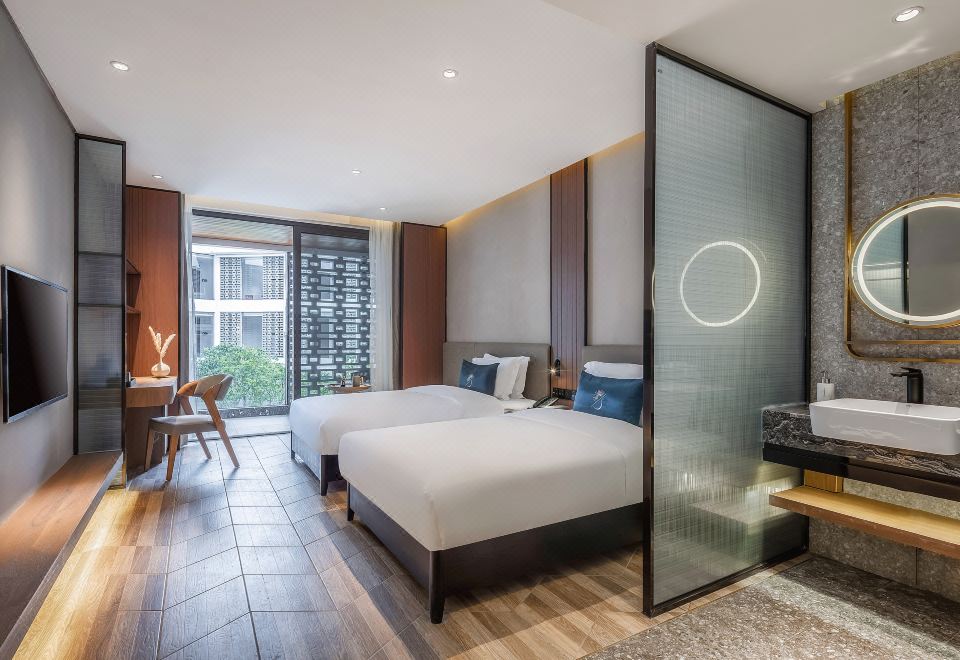 院景阳台双床房(精致园林景观+静谧熟睡+慕思床垫)