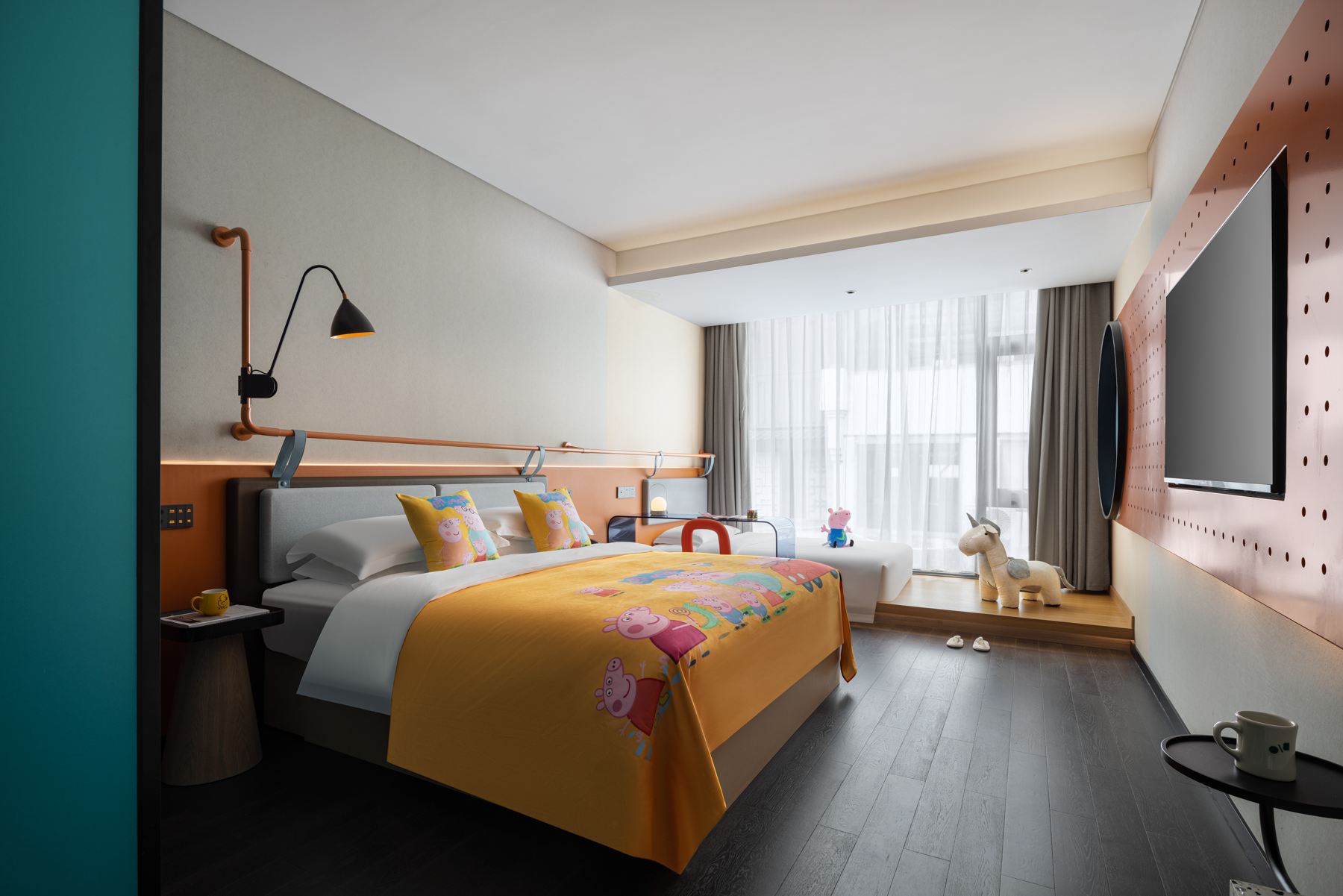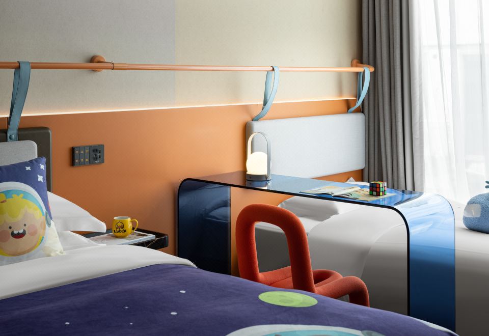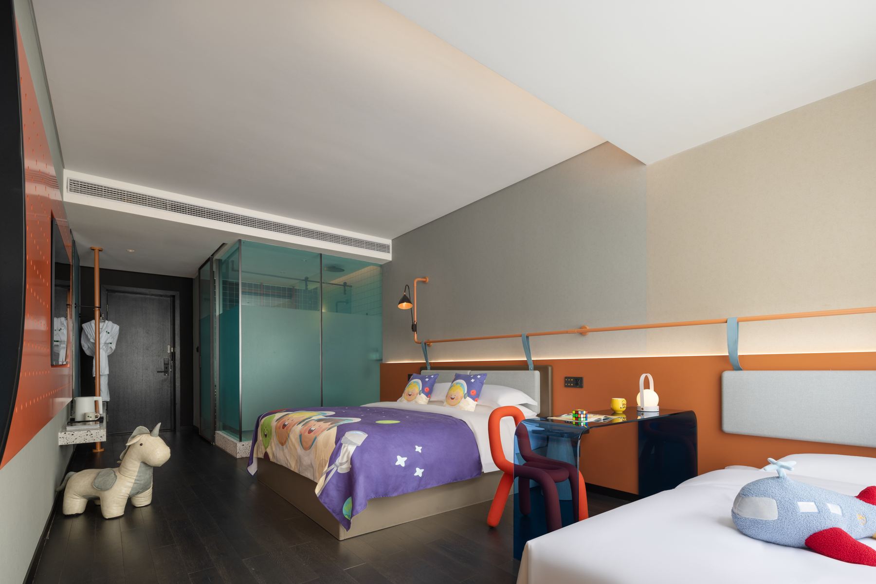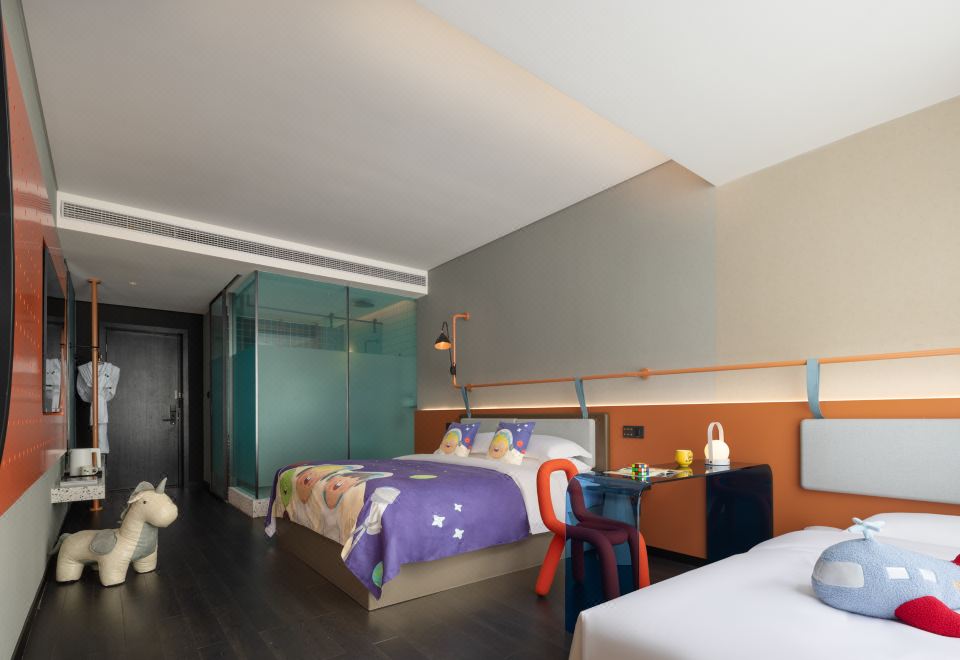 童趣亲子双床主题房 | 落地玻璃+摇摇马+小童玩具