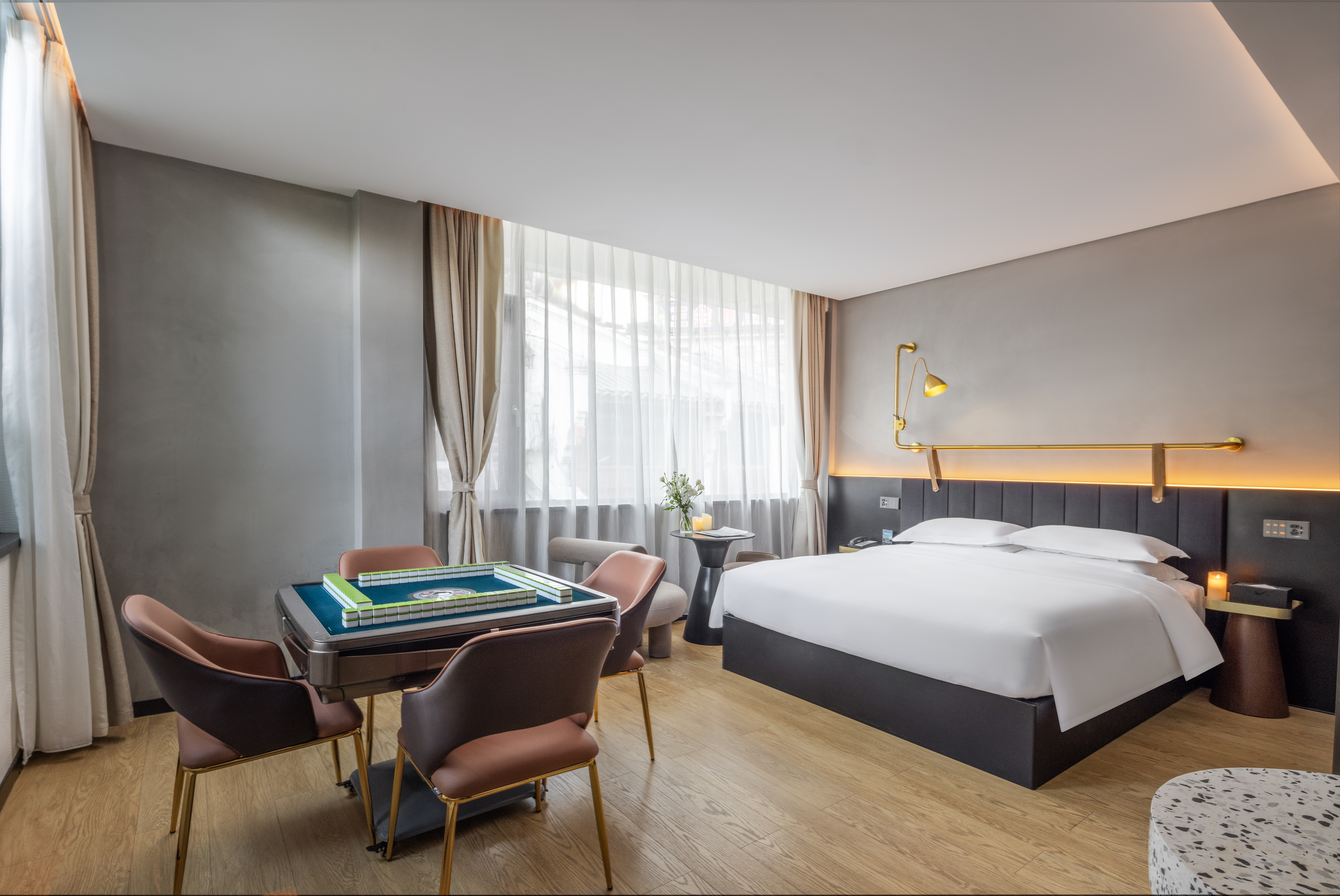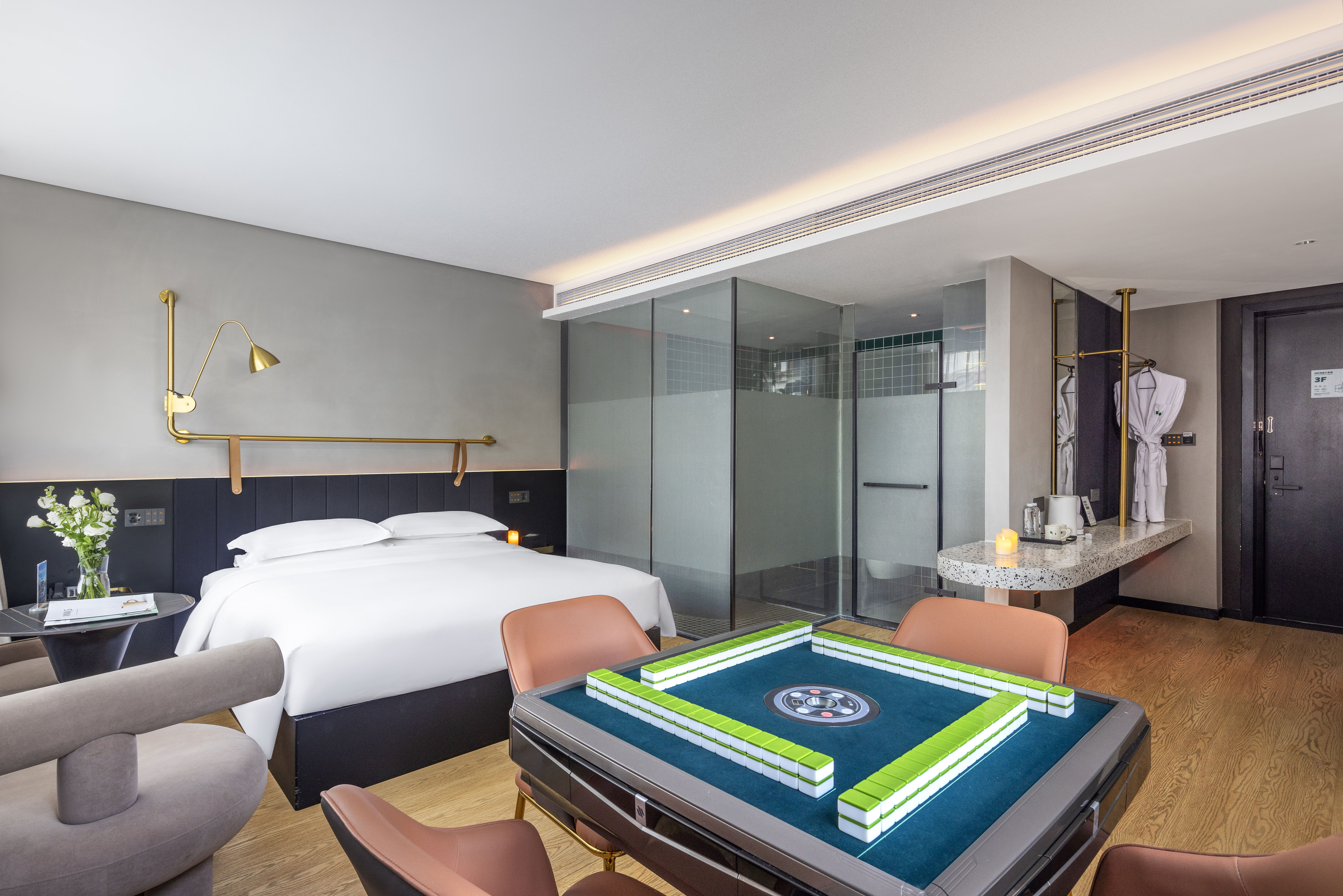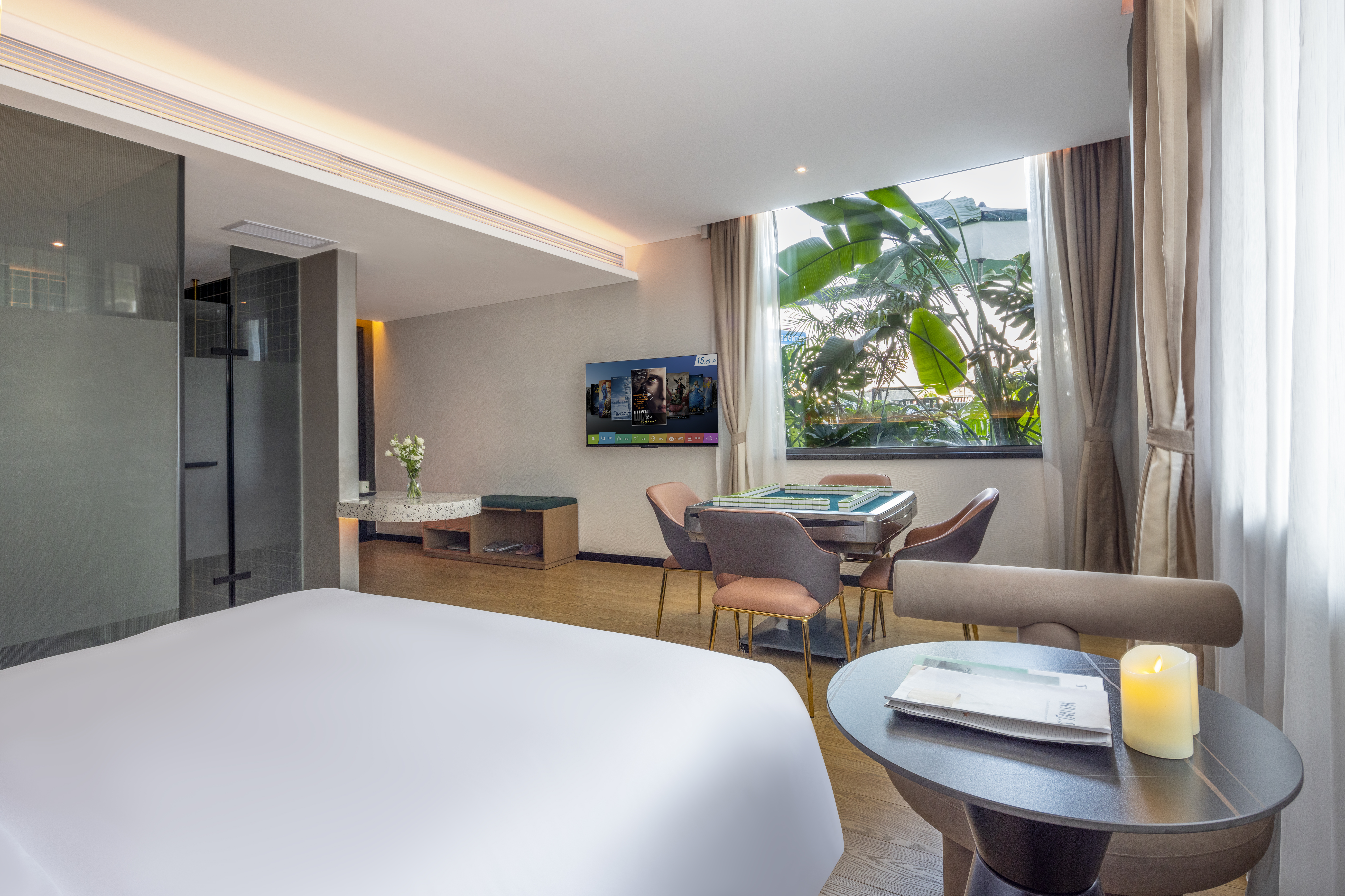 清一色麻将大床房|雀友全自动麻将机+休闲娱乐配置