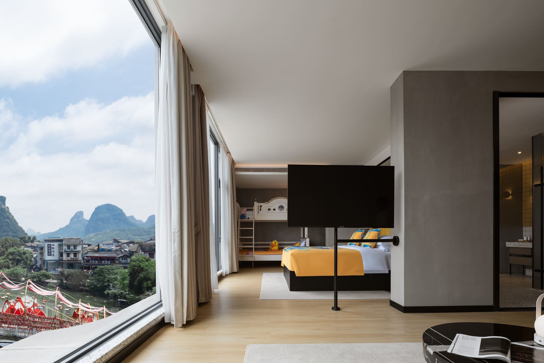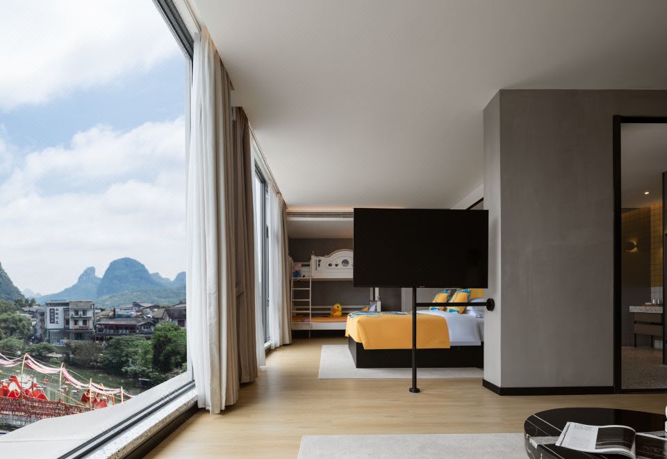 180°山水夜景|四口之家套房+超大落地窗+ 迷你游戏区