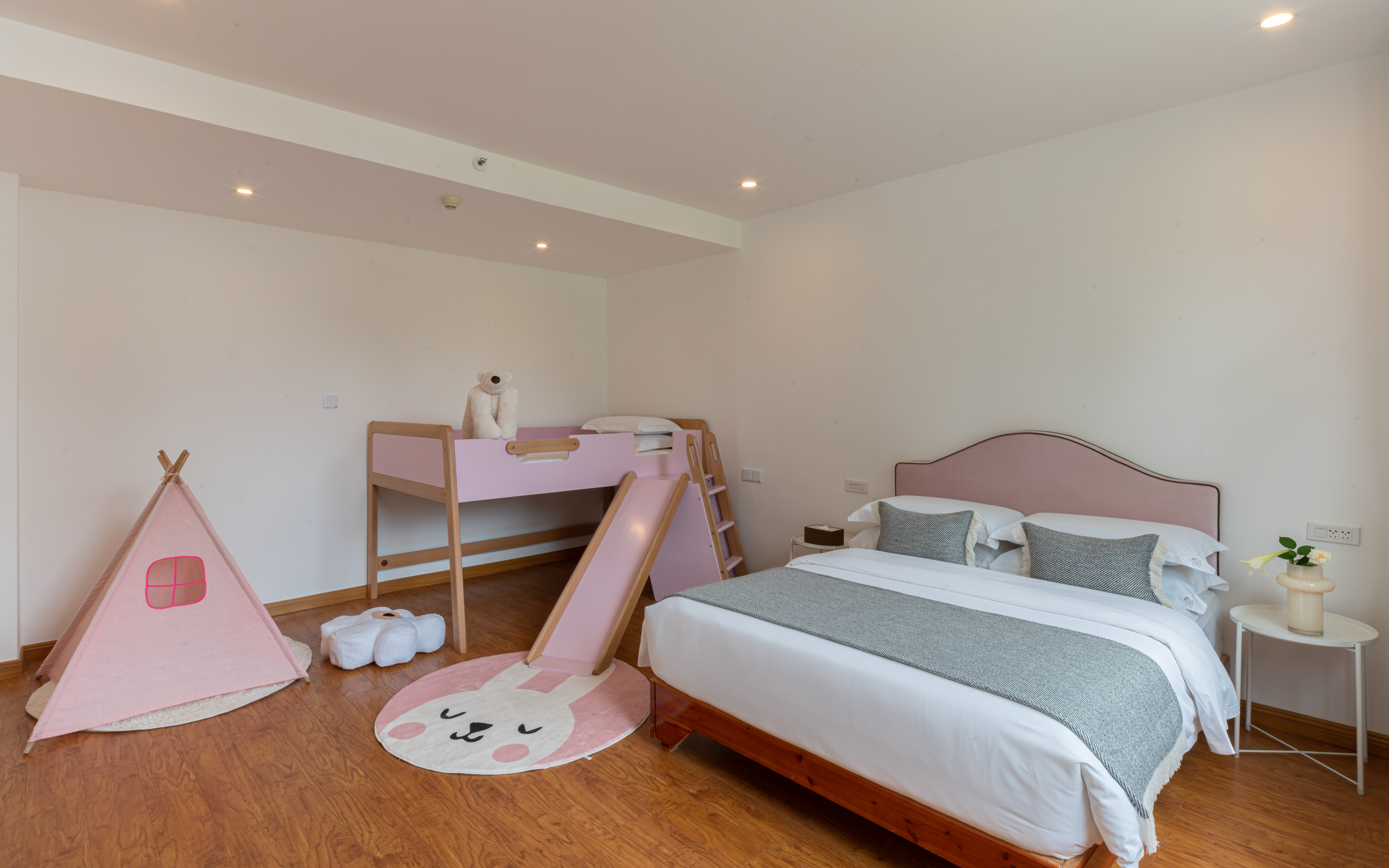 閲山童趣·粉色滑梯双床家庭套房(一室一厅+童趣滑梯)