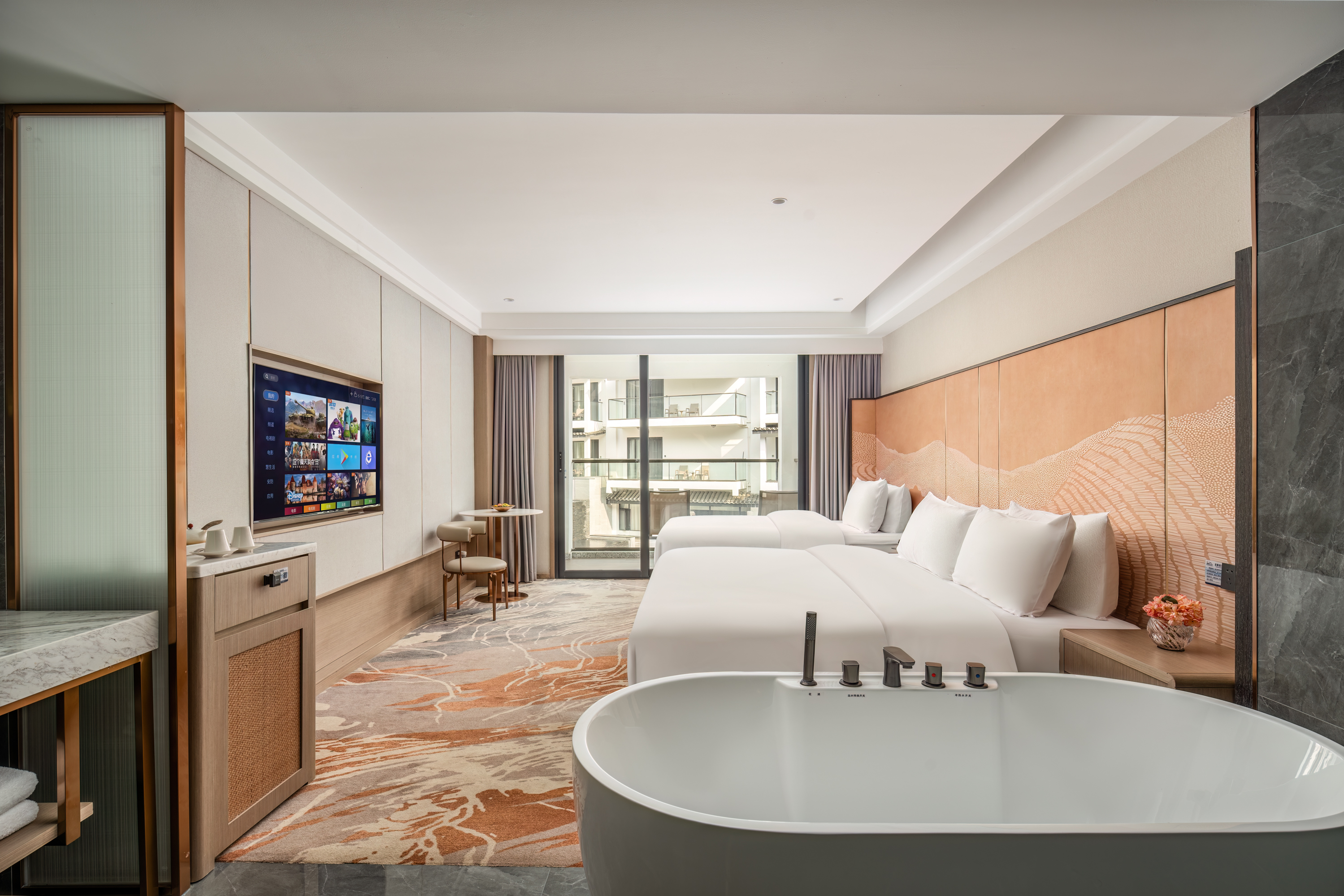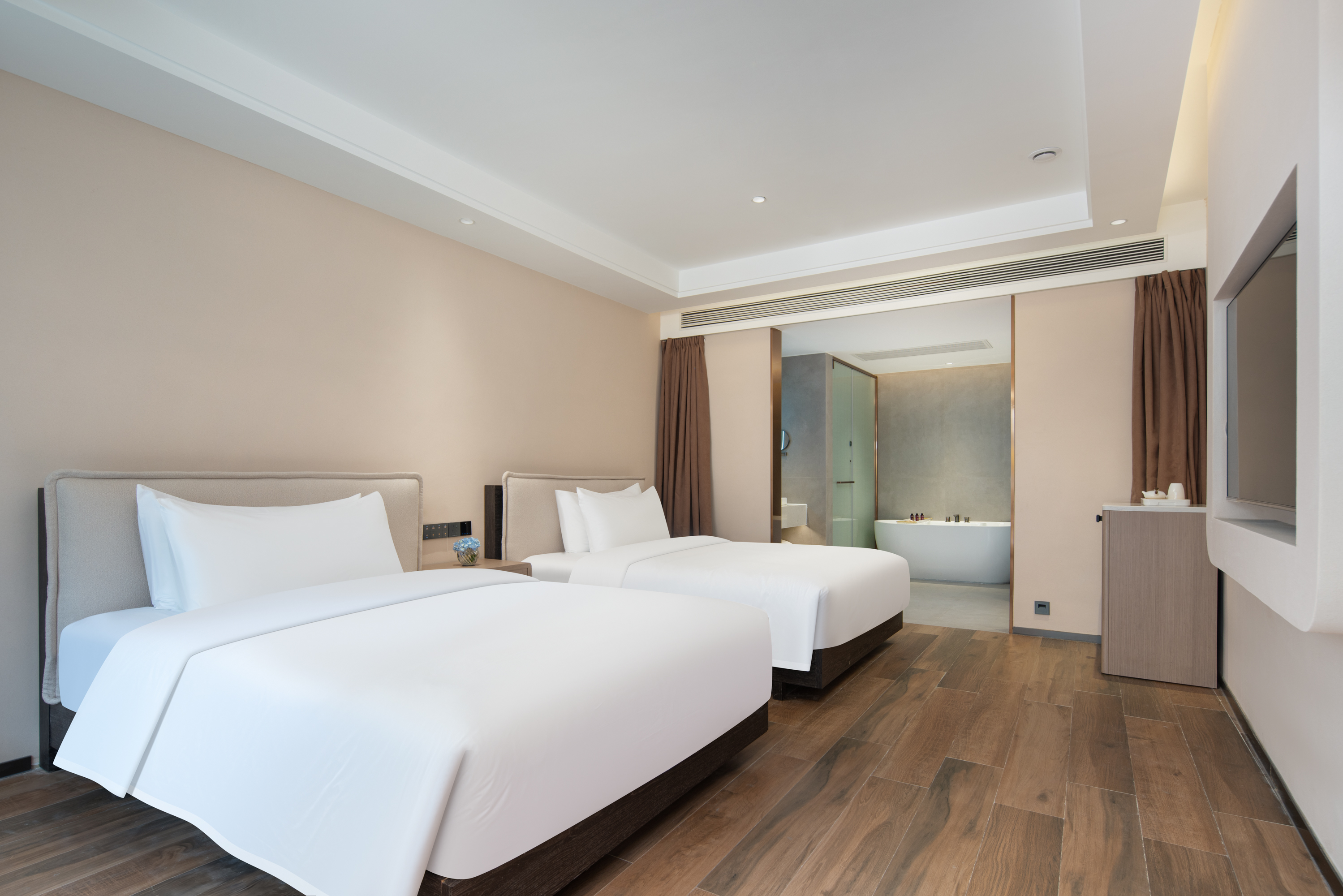 步入式庭院双床房 I 慕思床垫+智能马桶
