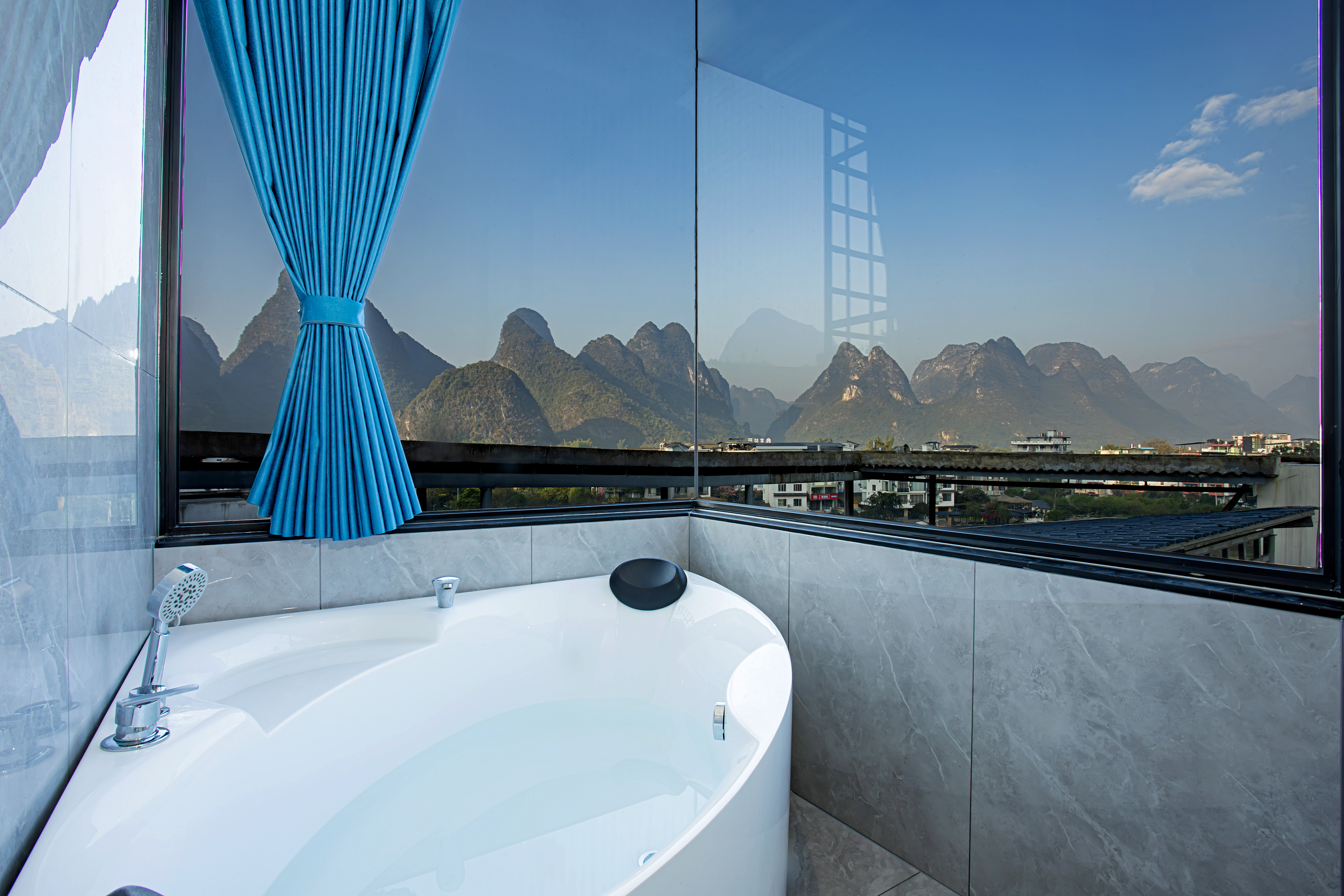 阳台大床房+智能家居+超大落地窗+超大浴缸