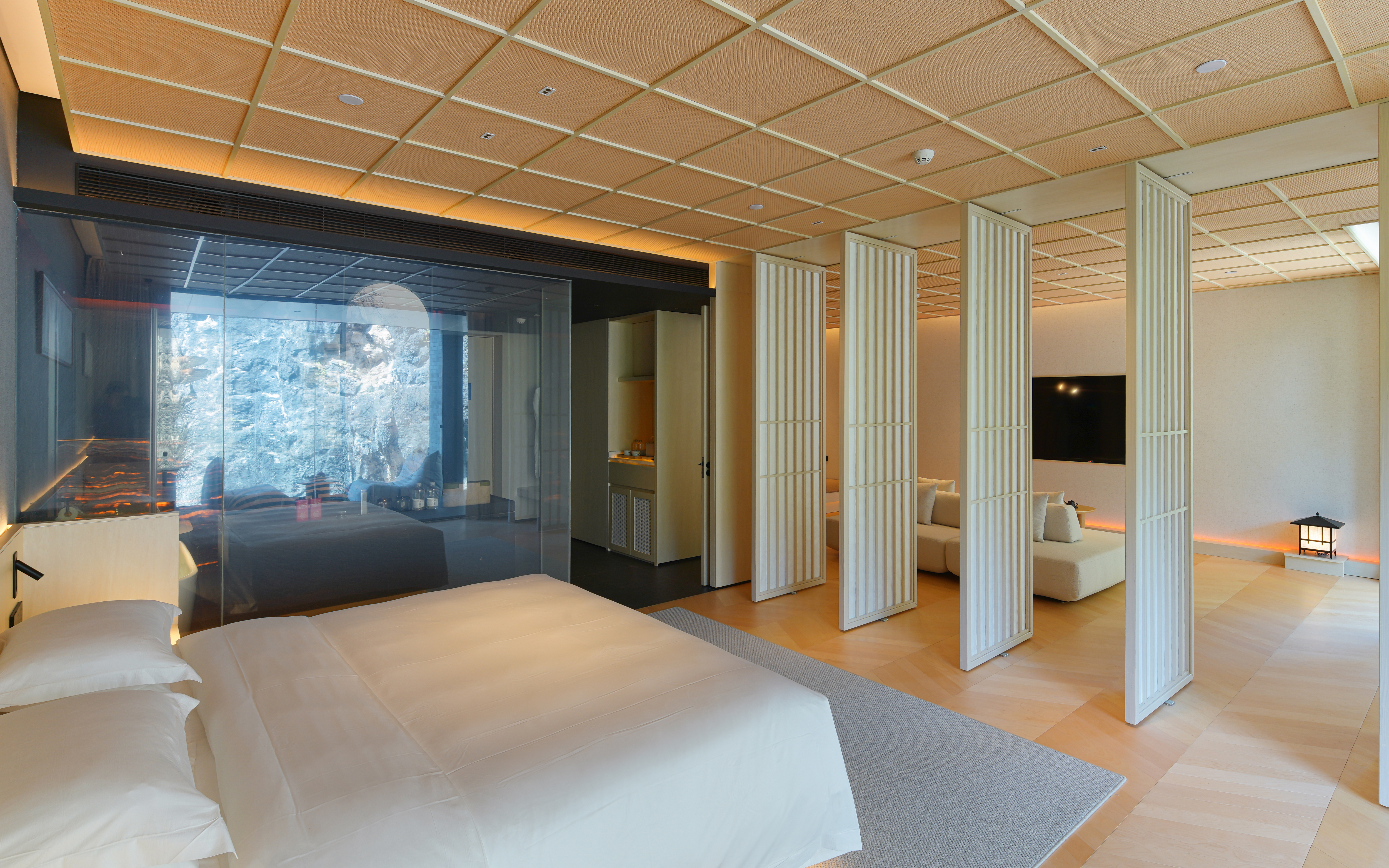 观山雨大床房(隔音巨幕落地窗,静拥千古山水舞台)