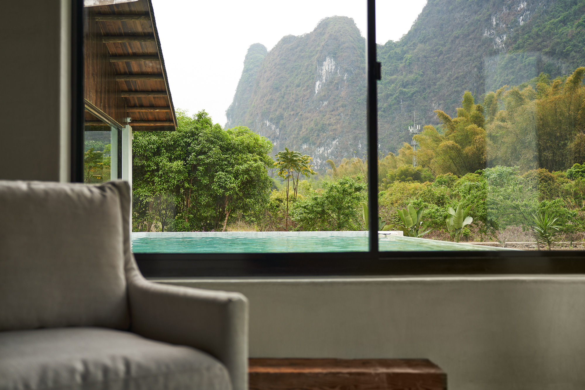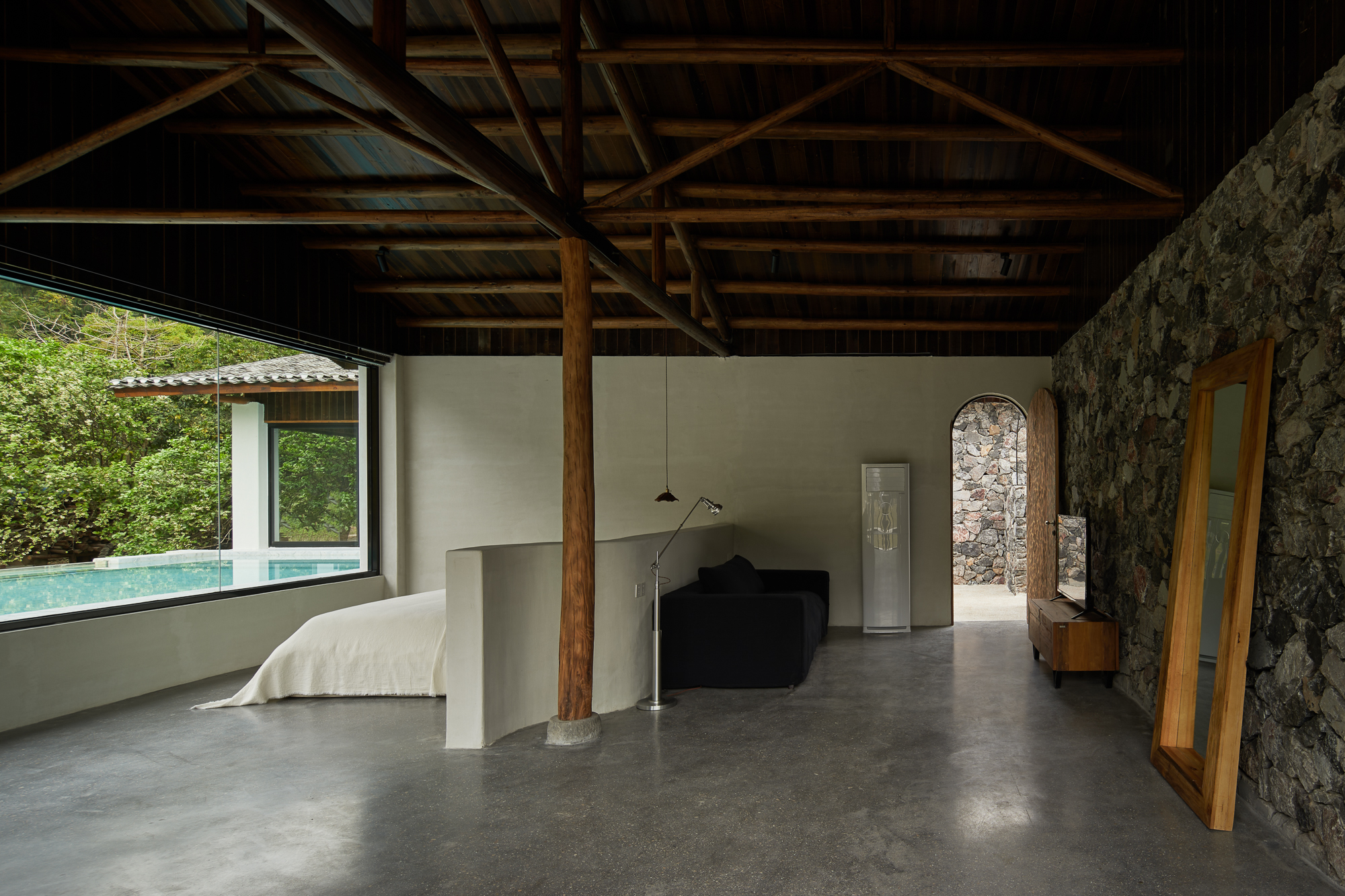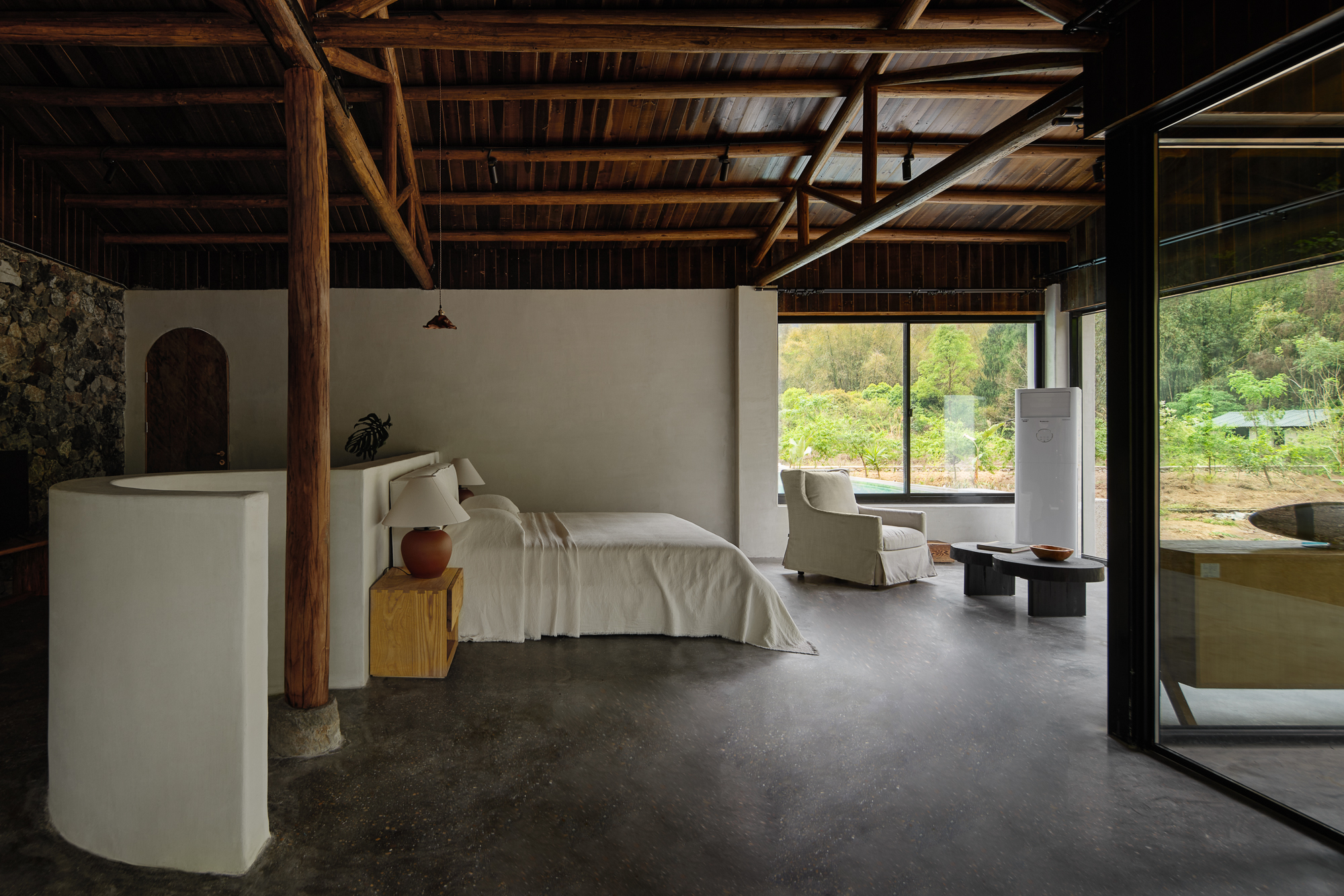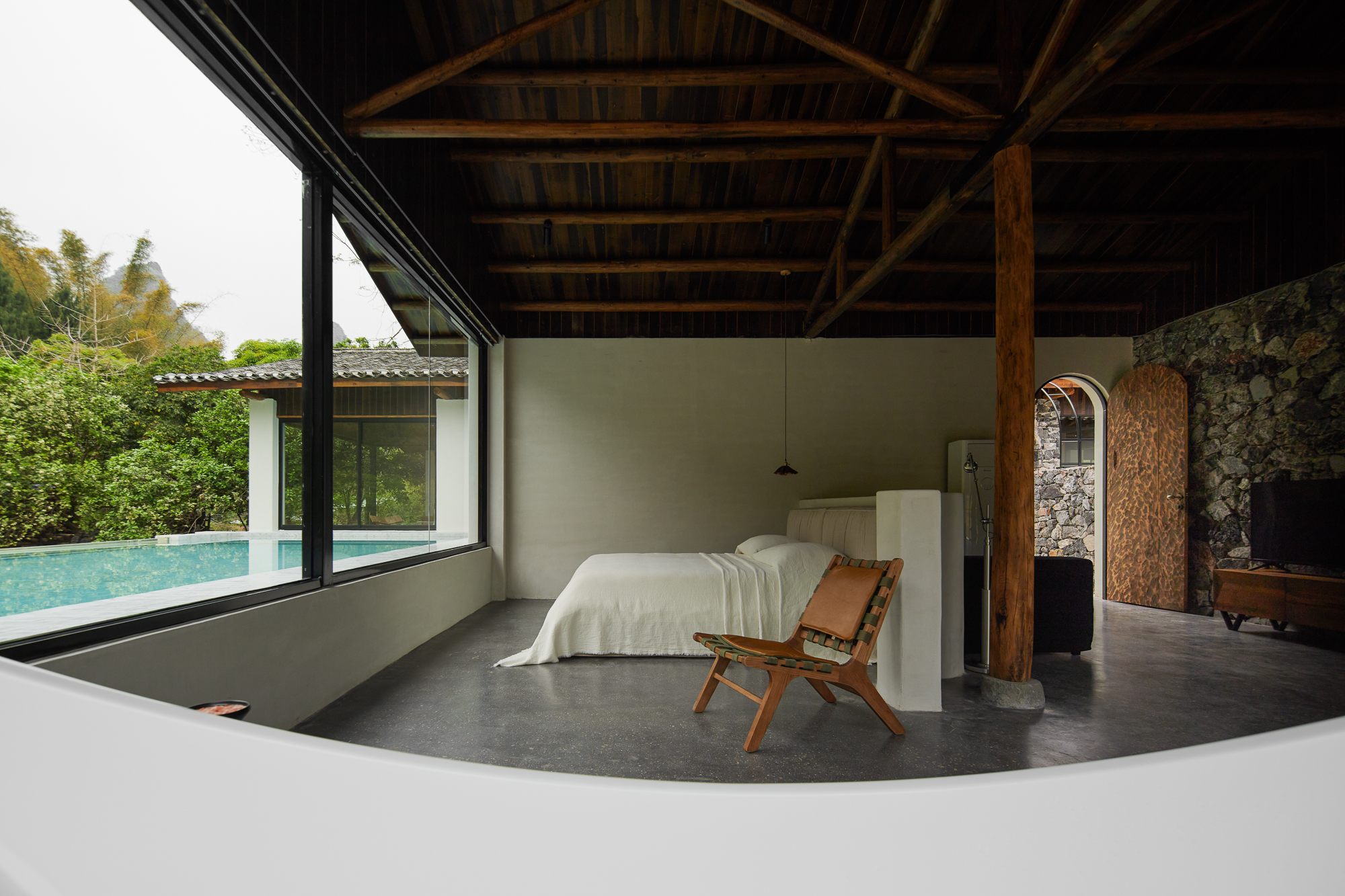 山岚丨泳池景观大床+悬浮浴缸+自然庭院