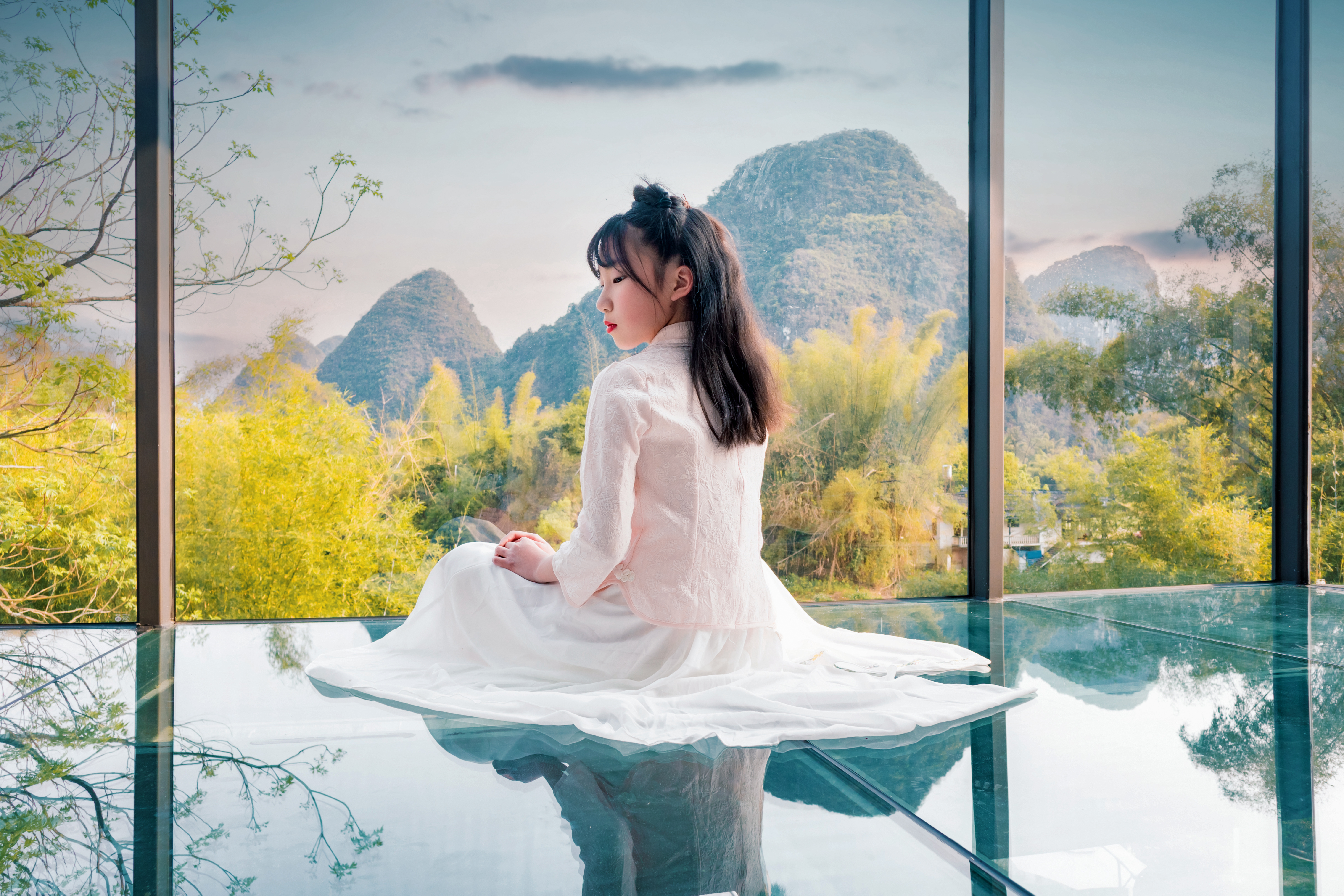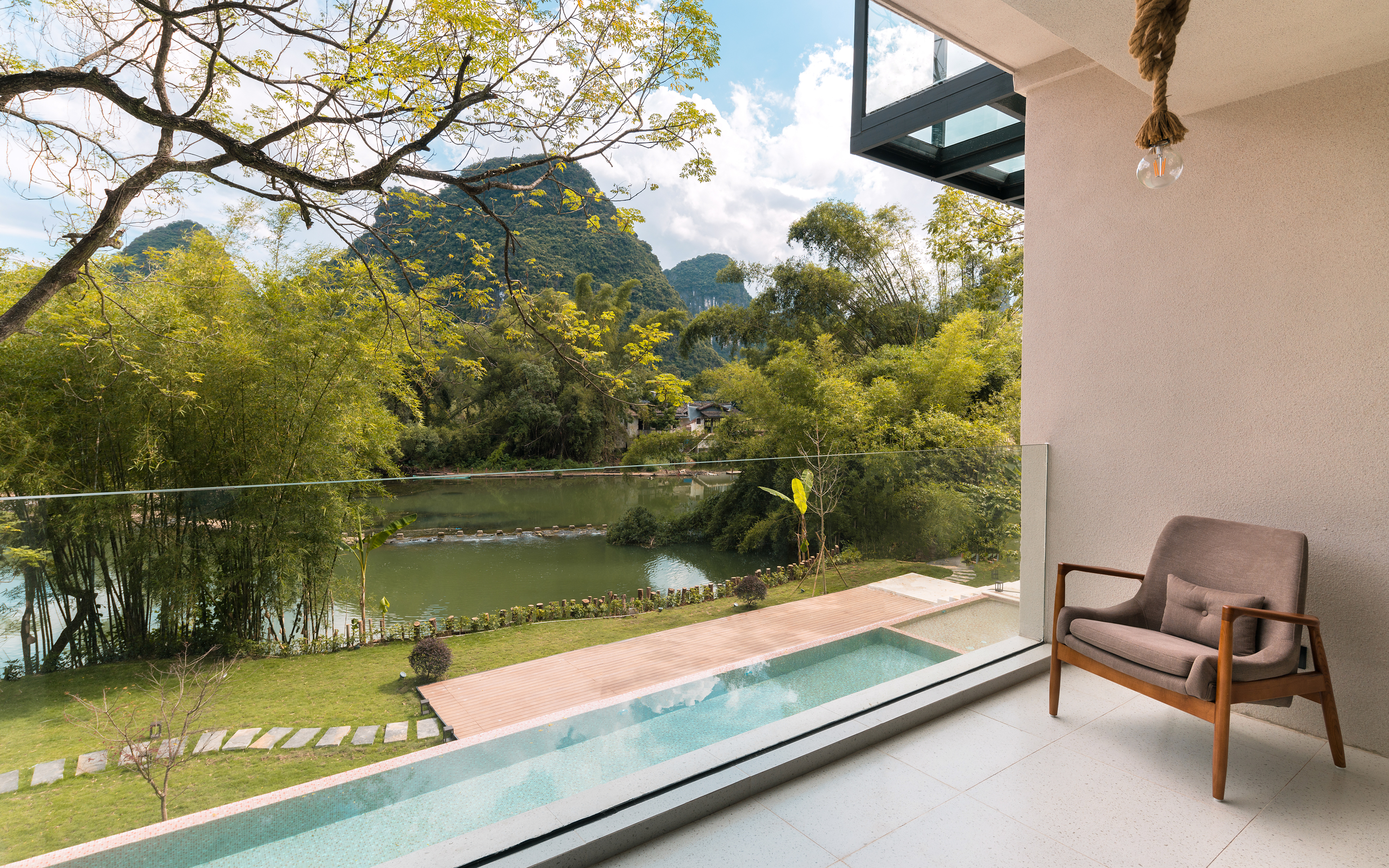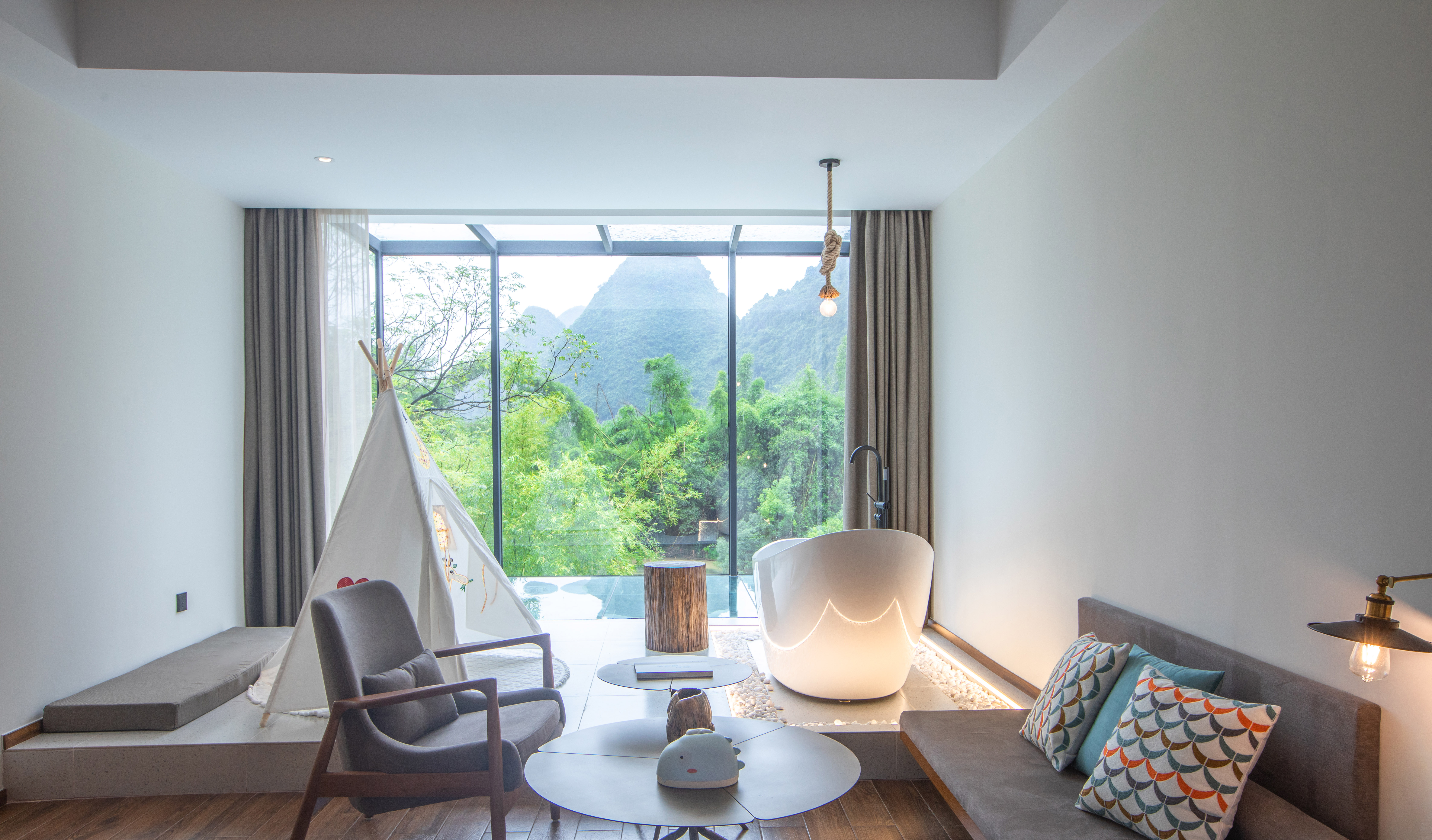 原野河景星空双床房+270°玻璃房+观景浴缸+泳池景