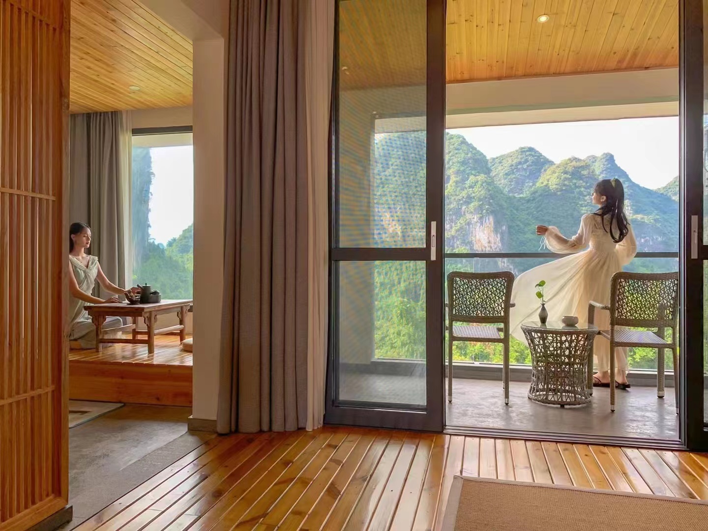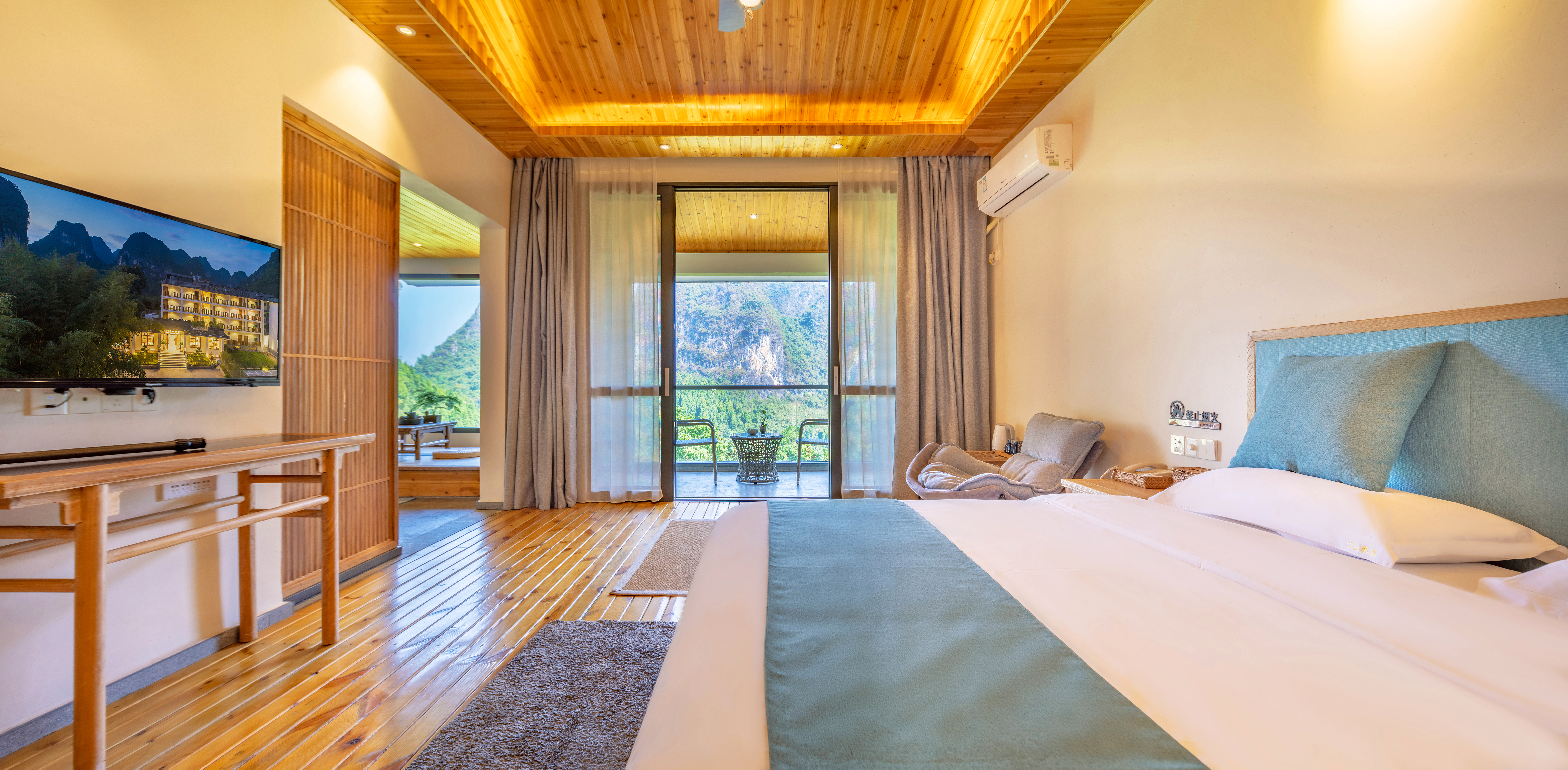 晓山素云山景大床套房(进口零重力乳胶大床房+榻榻米茶室+全景看喀斯特峯林)