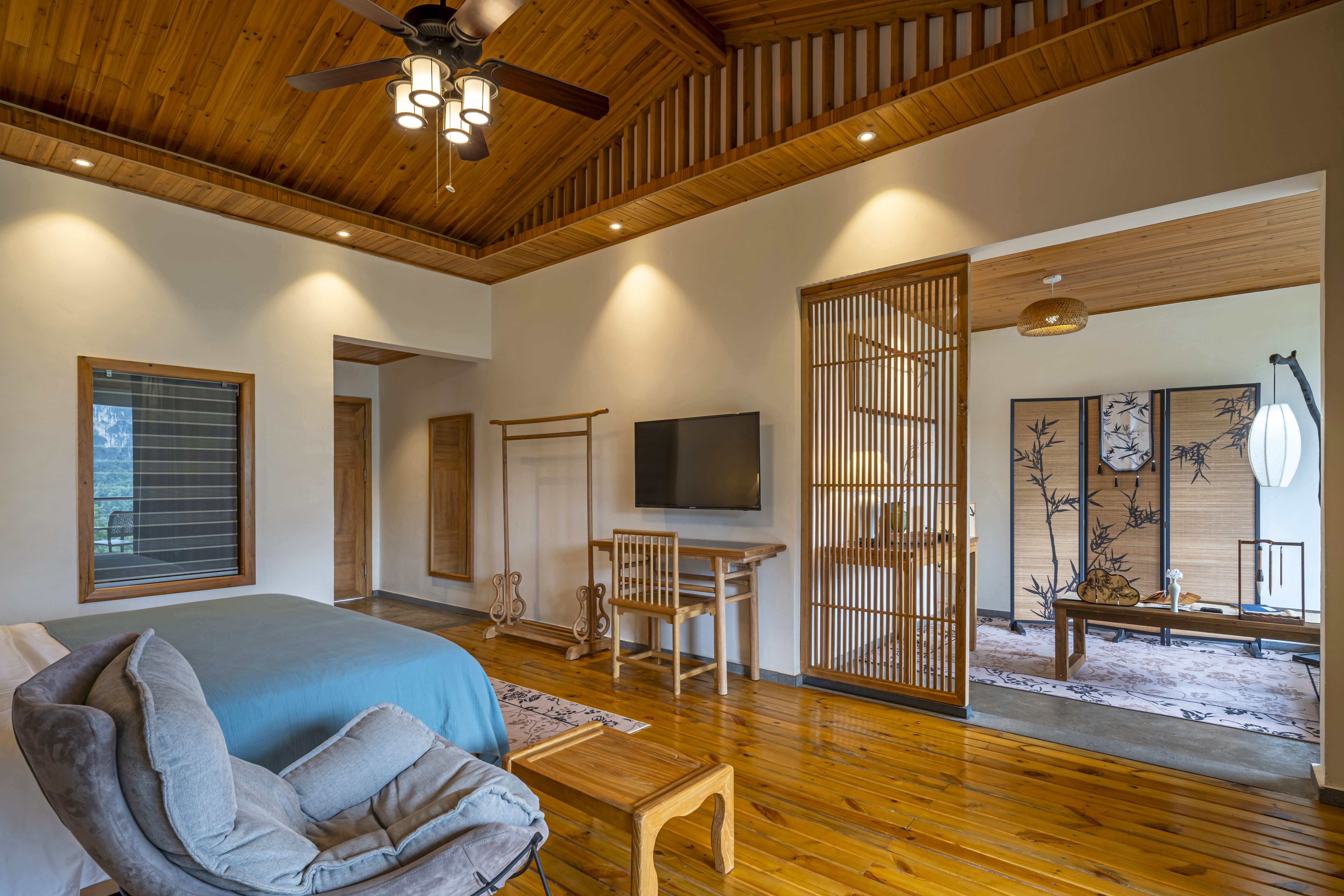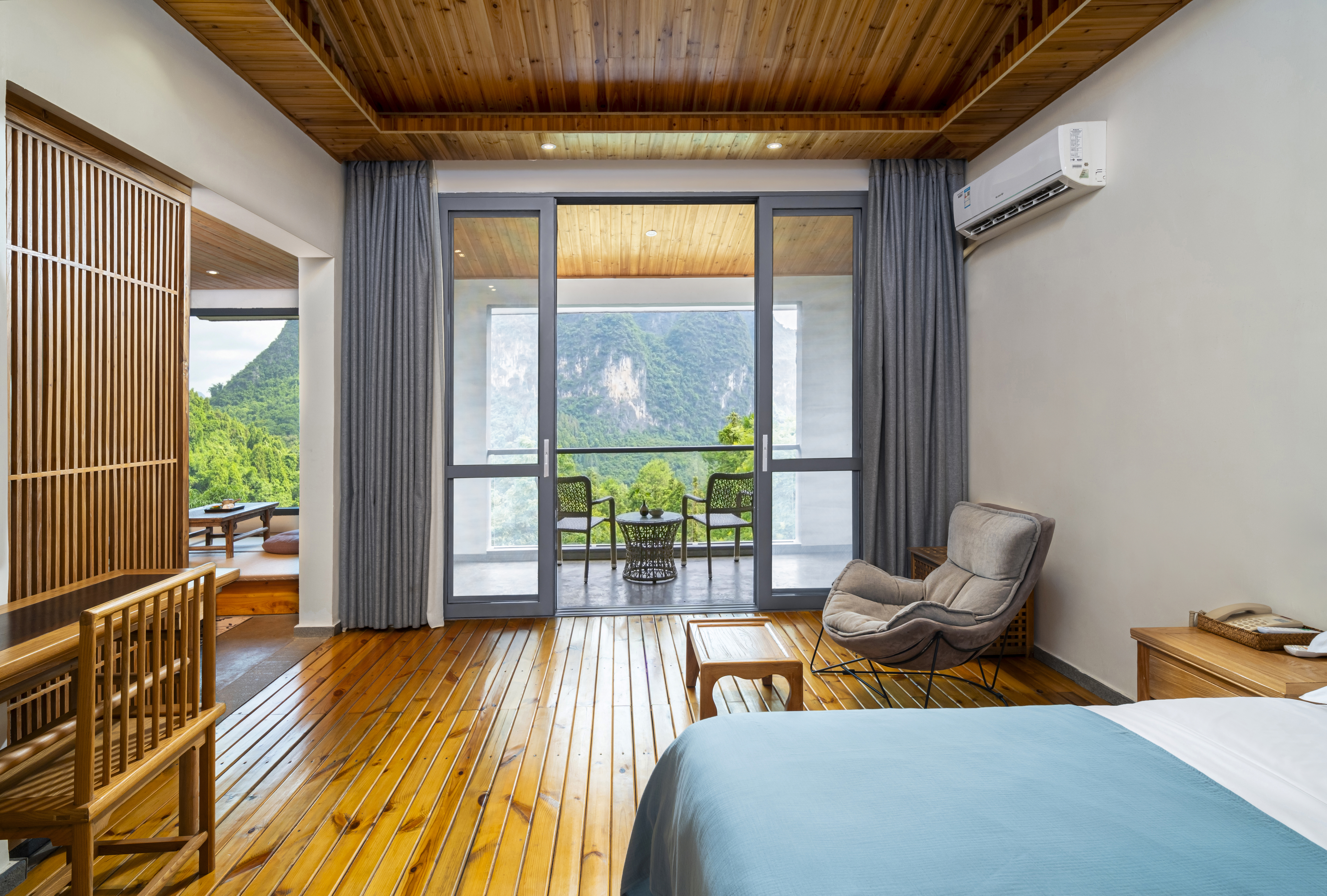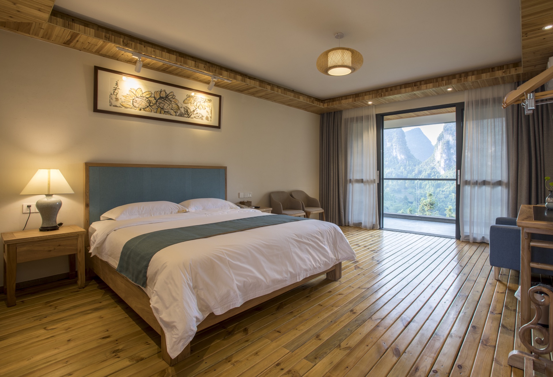 晓山素云山景大床套房(进口零重力乳胶大床房+榻榻米茶室+全景看喀斯特峯林)