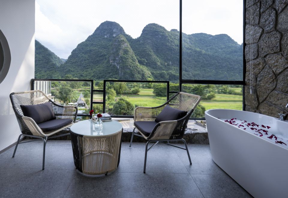 山水阳枱子母双床房『山河阳台+观景会客区+观景浴缸』