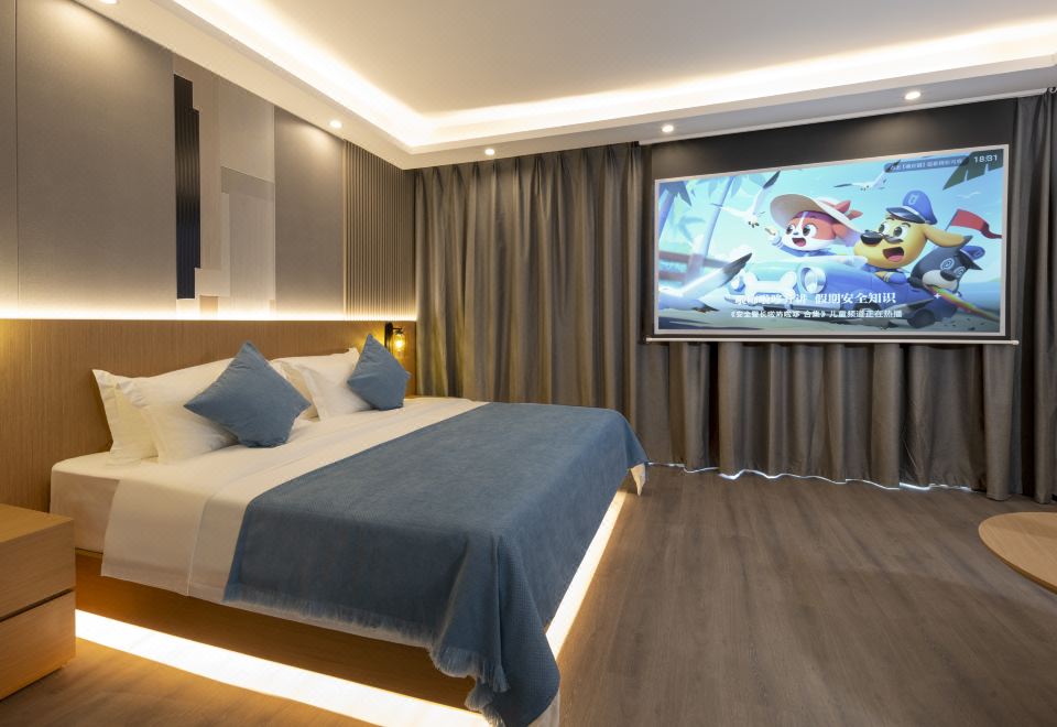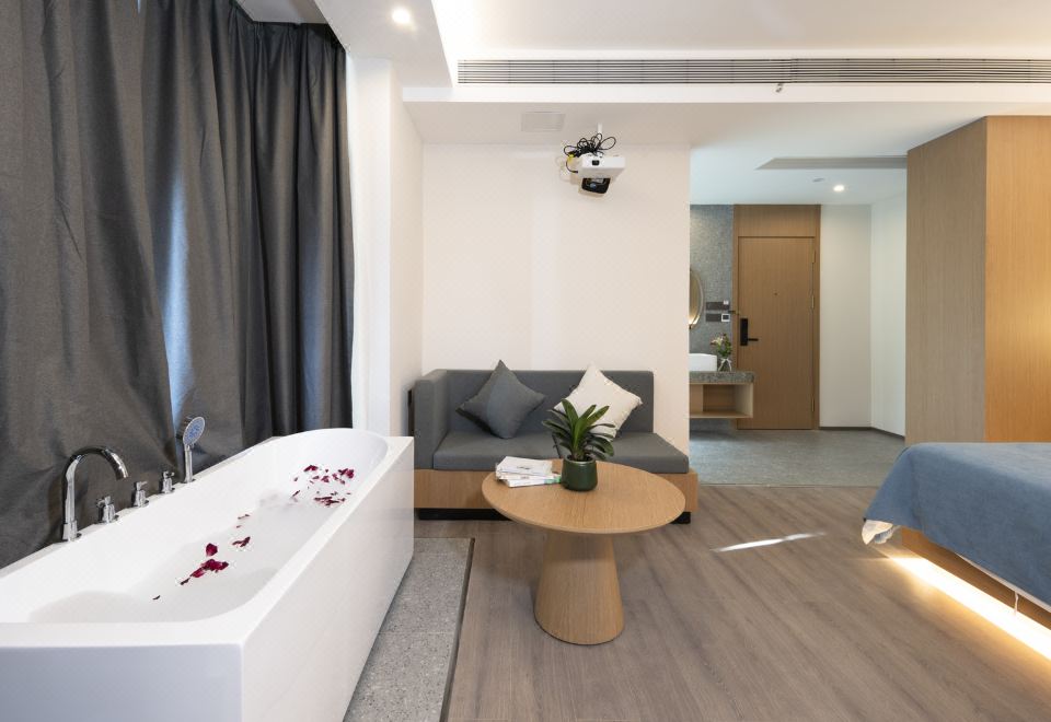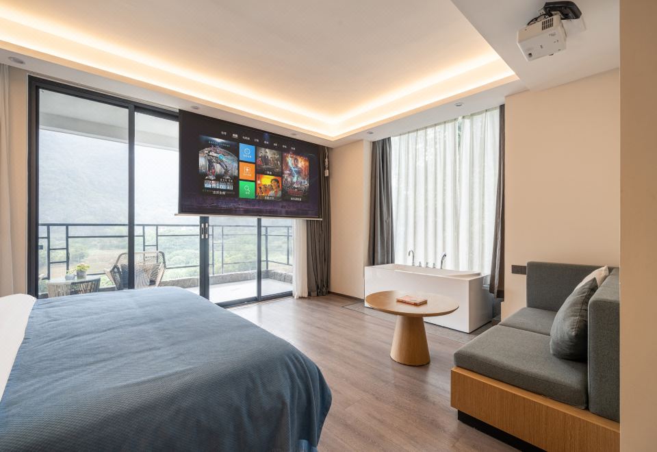 山水阳台投影大床房(河景大阳台+山景浴缸+小冰箱)