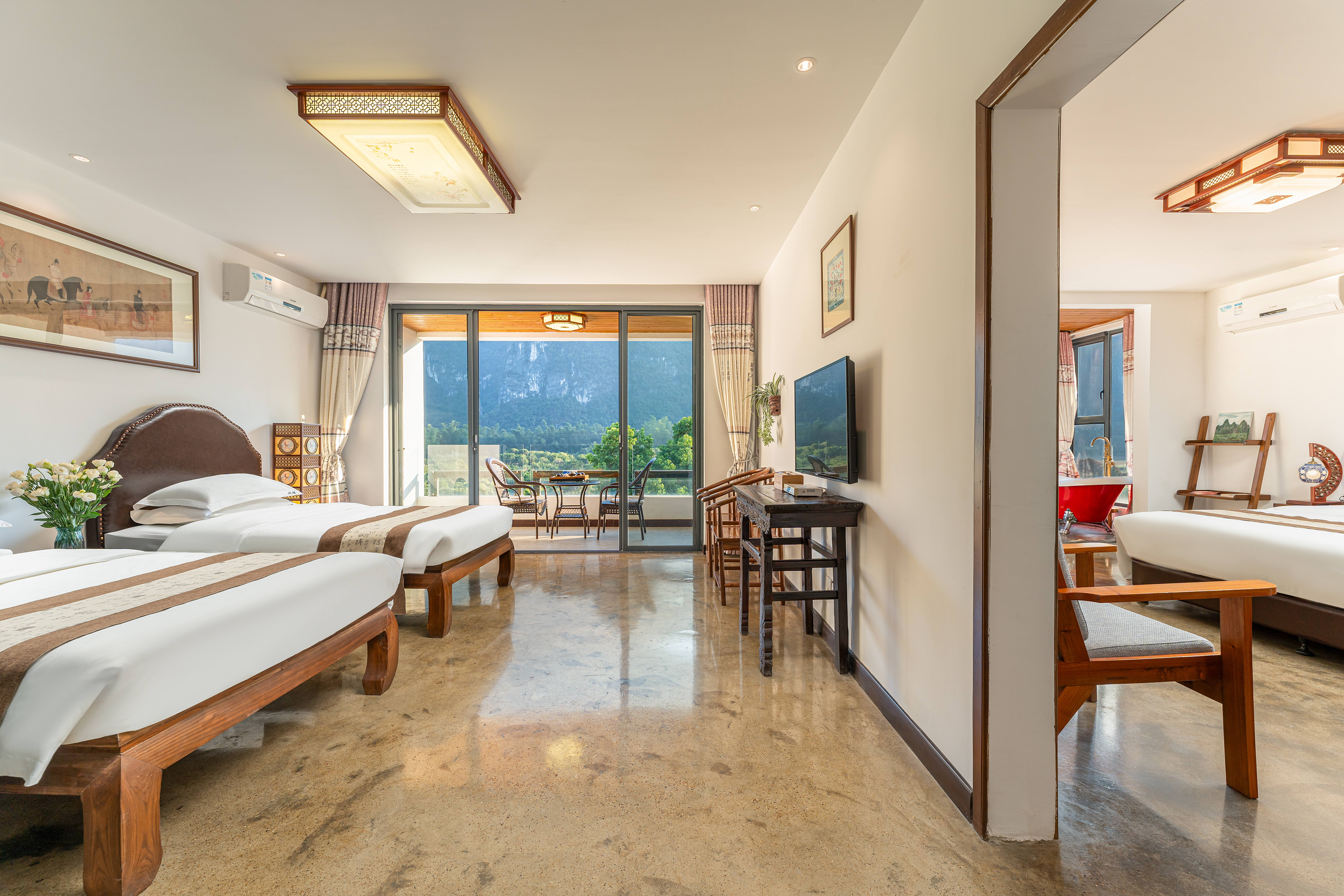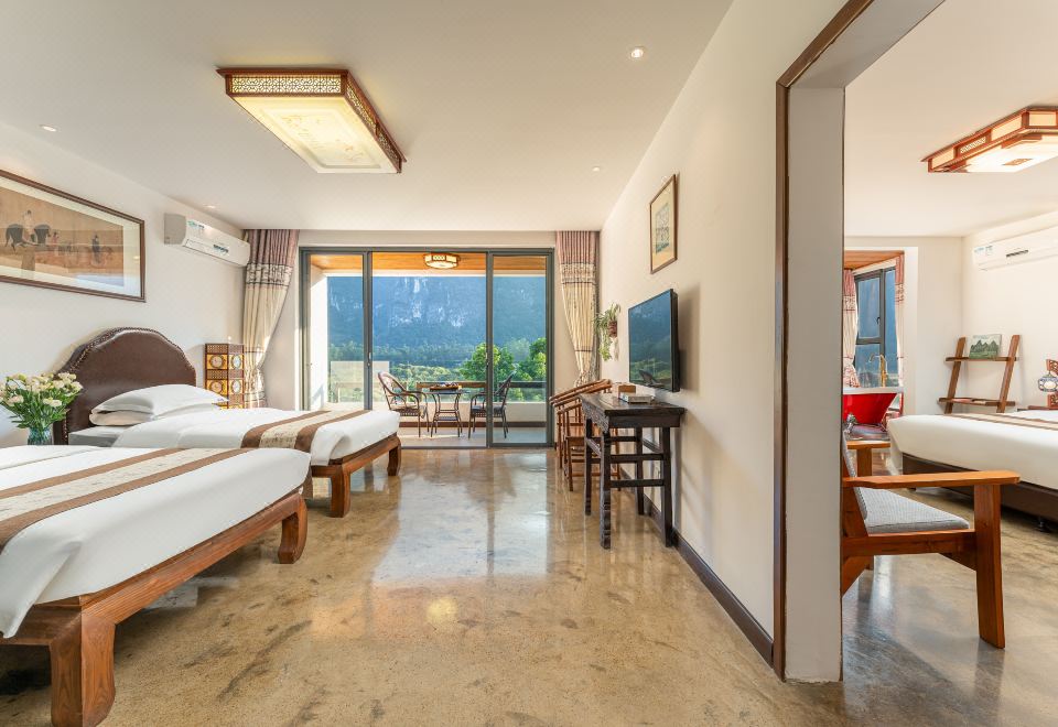 江山如画观景家庭双卧套房B(浴缸+冰箱+洗衣机+烘乾机)