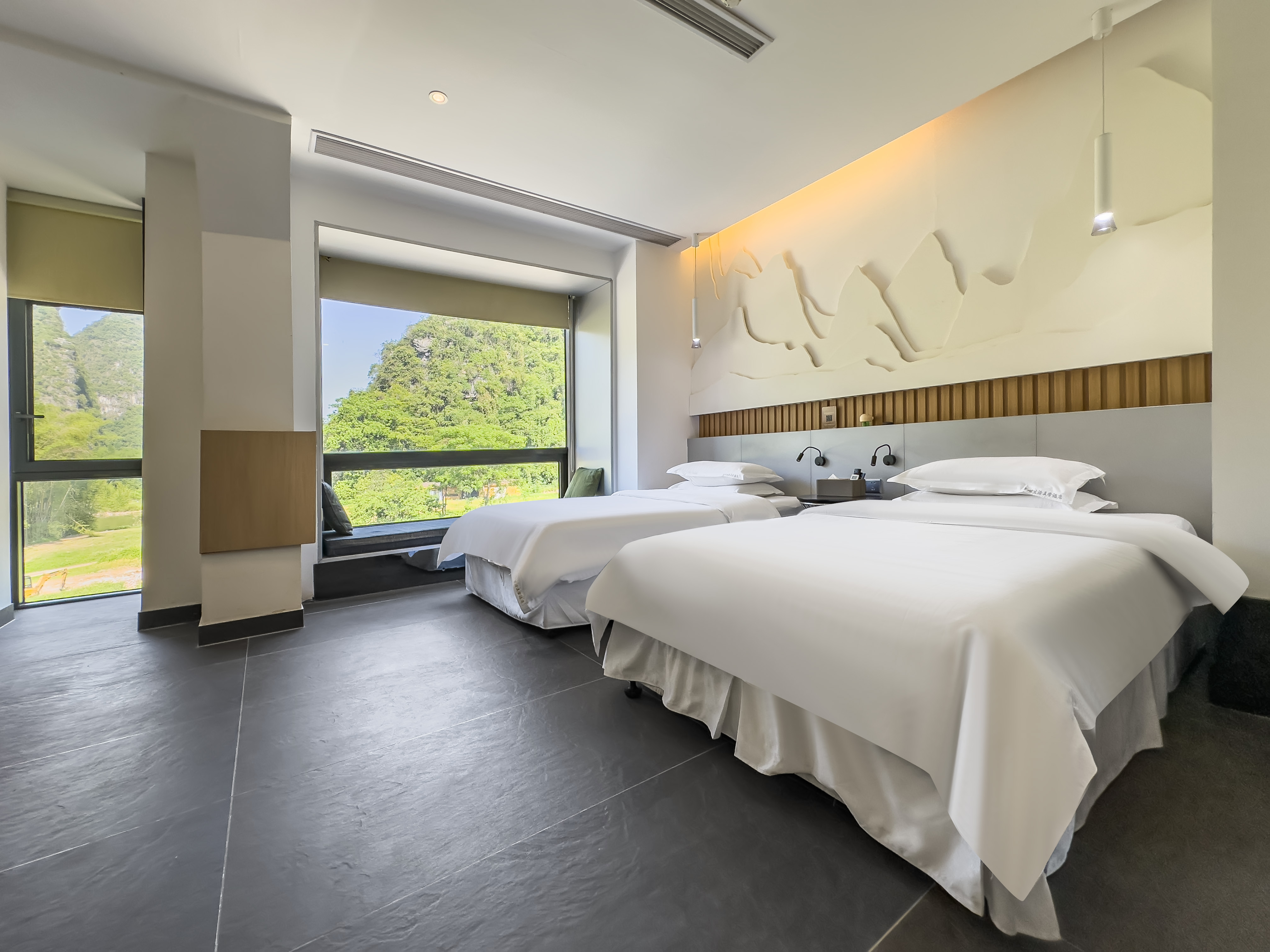 壹心河畔竹影飘窗台双床房
