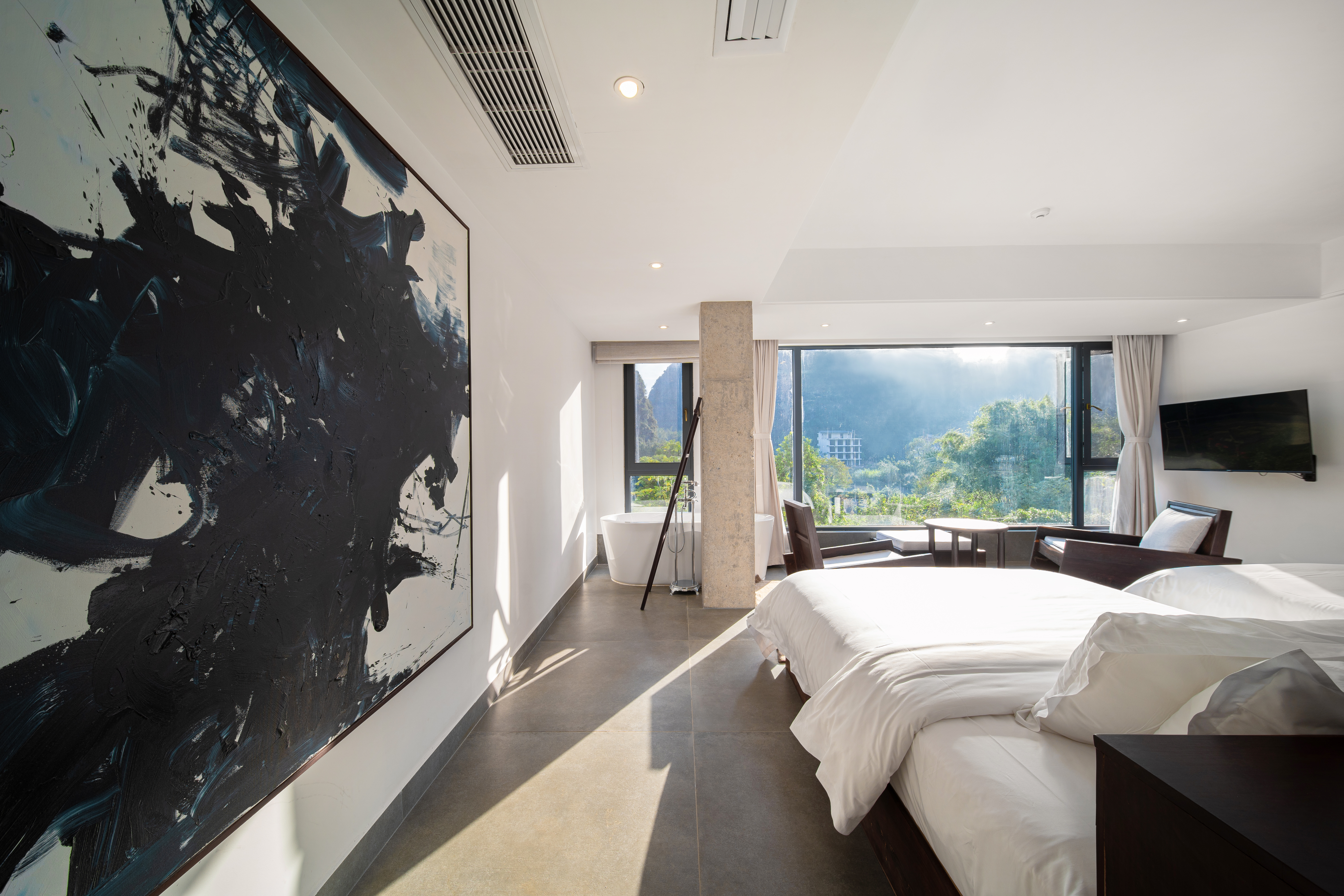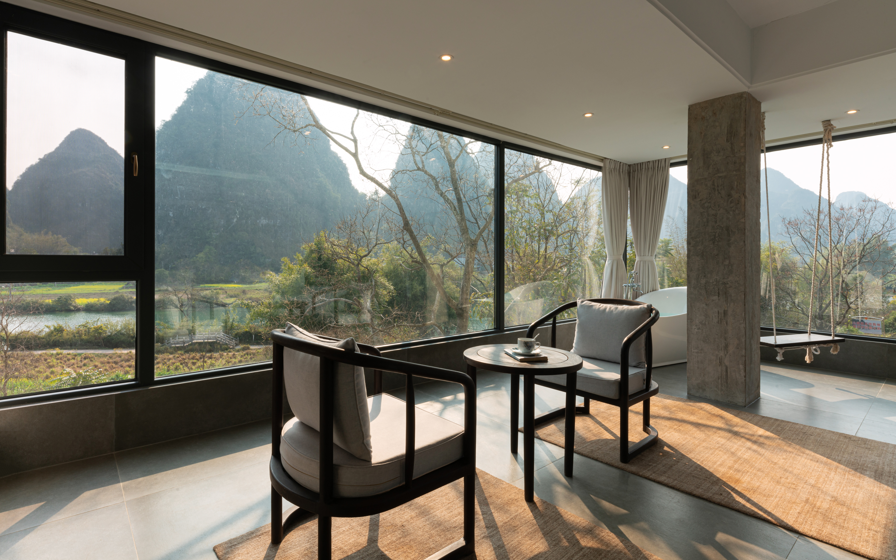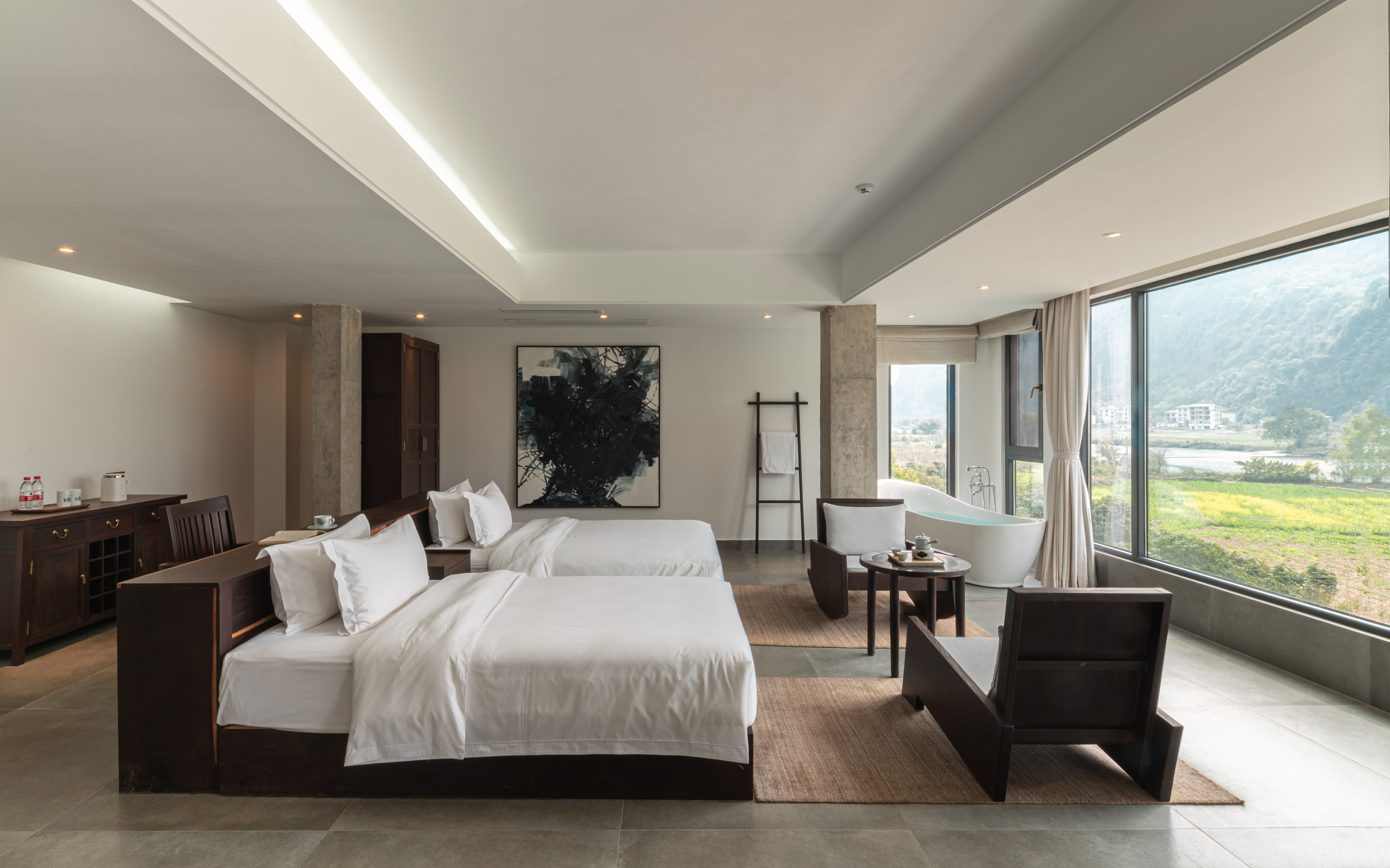 欢野·180度山河观景家庭浴缸双床房