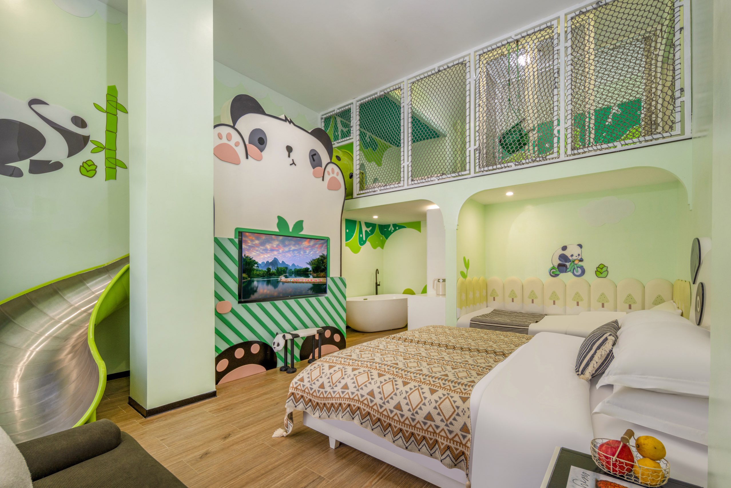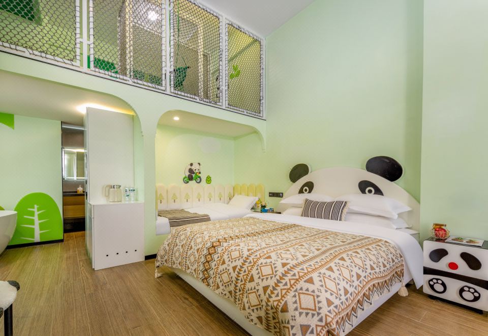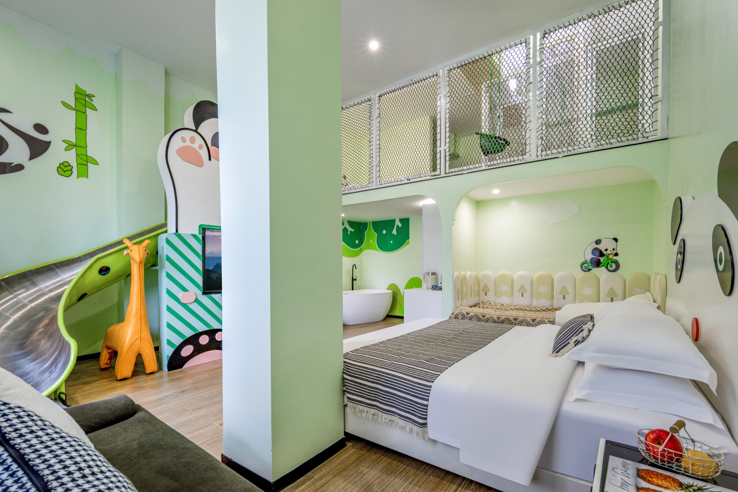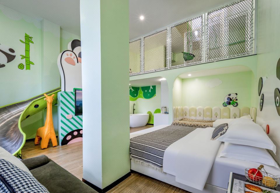 熊猫滑梯亲子家庭房-独立洗衣机-空气净化器
