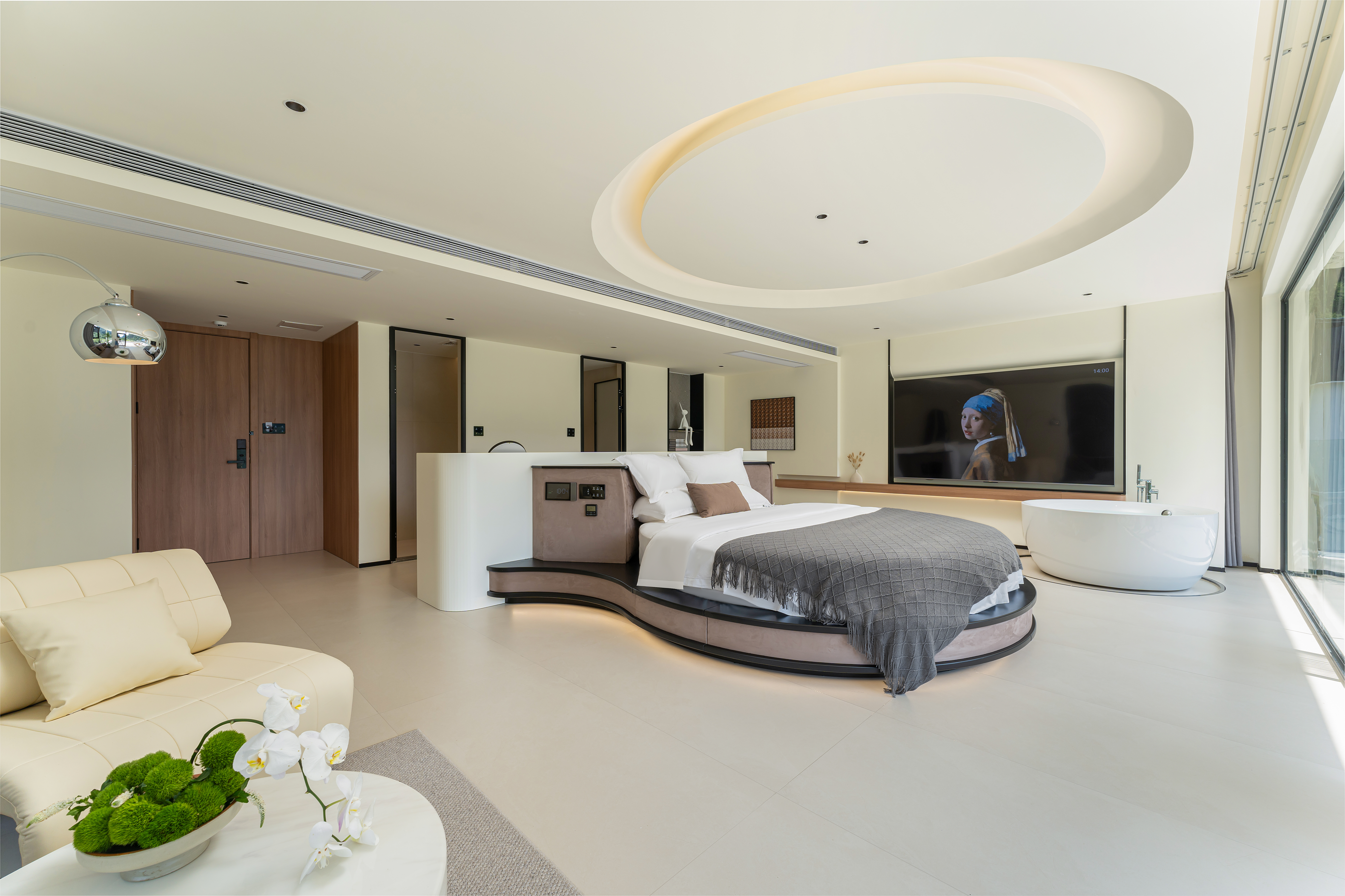 天空之镜·圆床房A栋『270°观景大阳台+100寸电视』