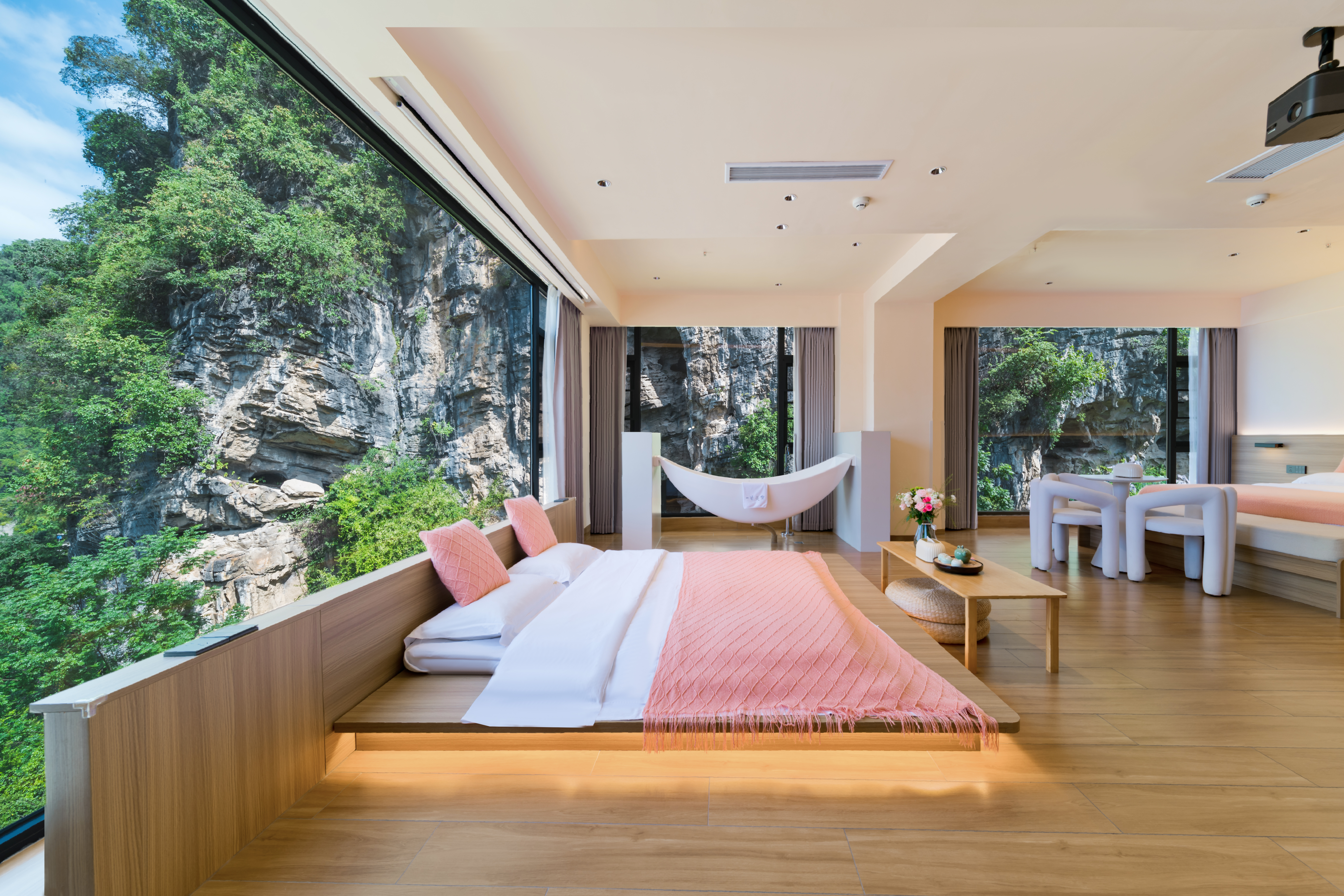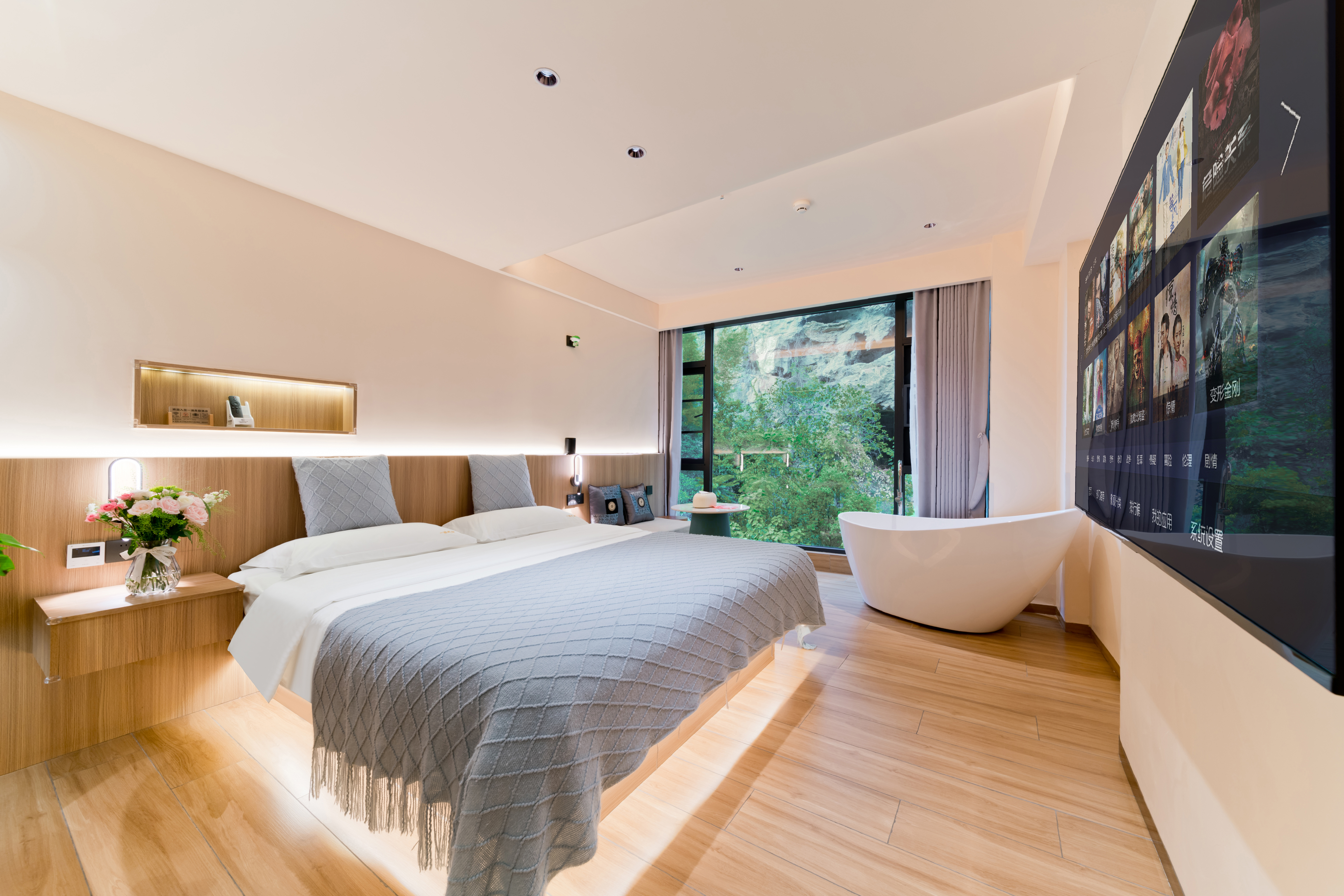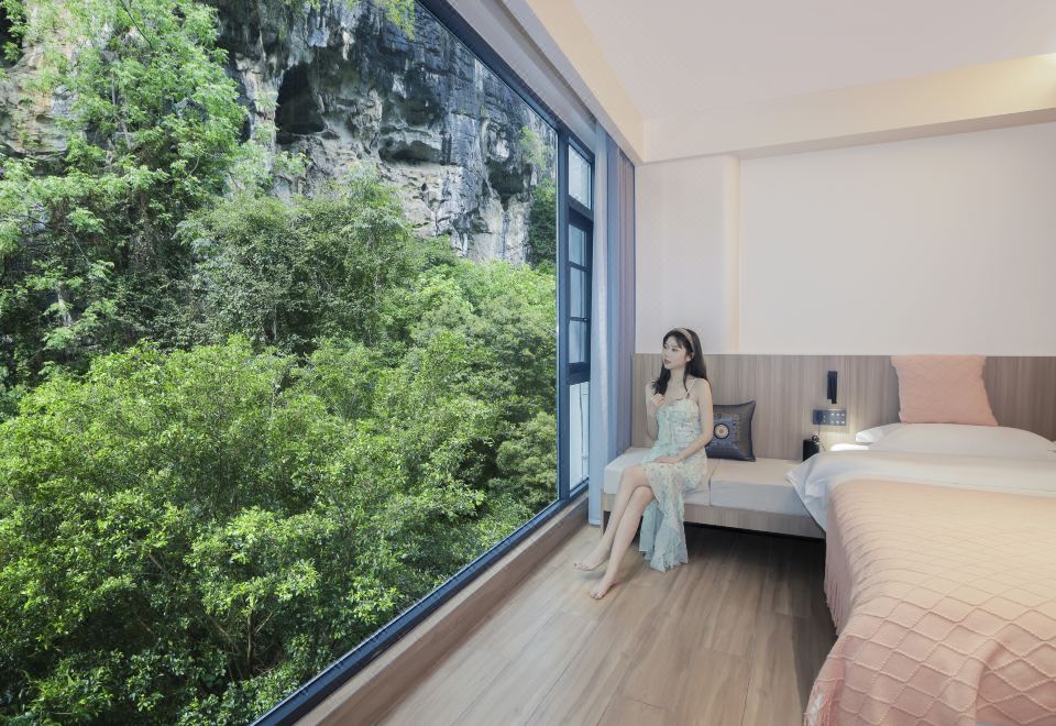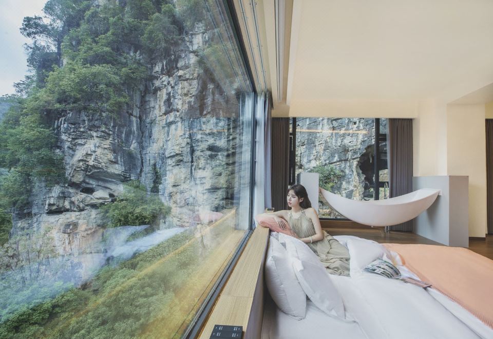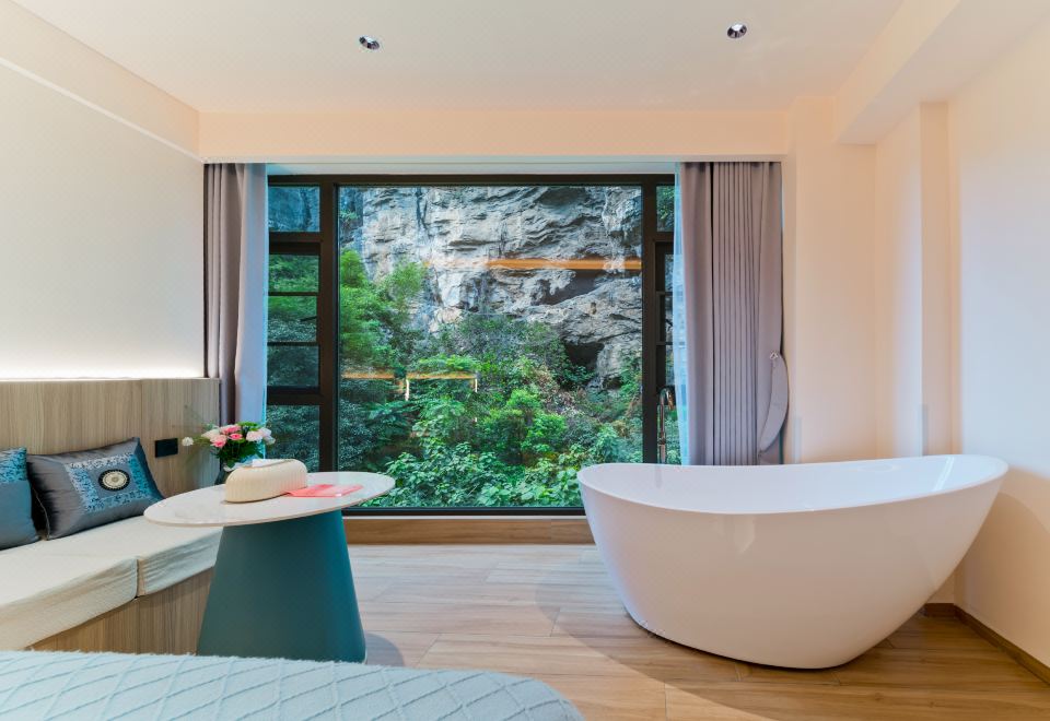 邀月景观大床房(180°伴山居+智能家居客控+智能加热马桶+观喀斯特溶洞景观房)