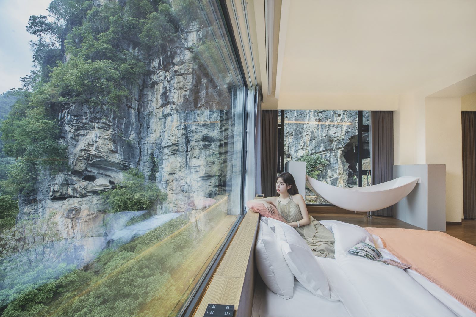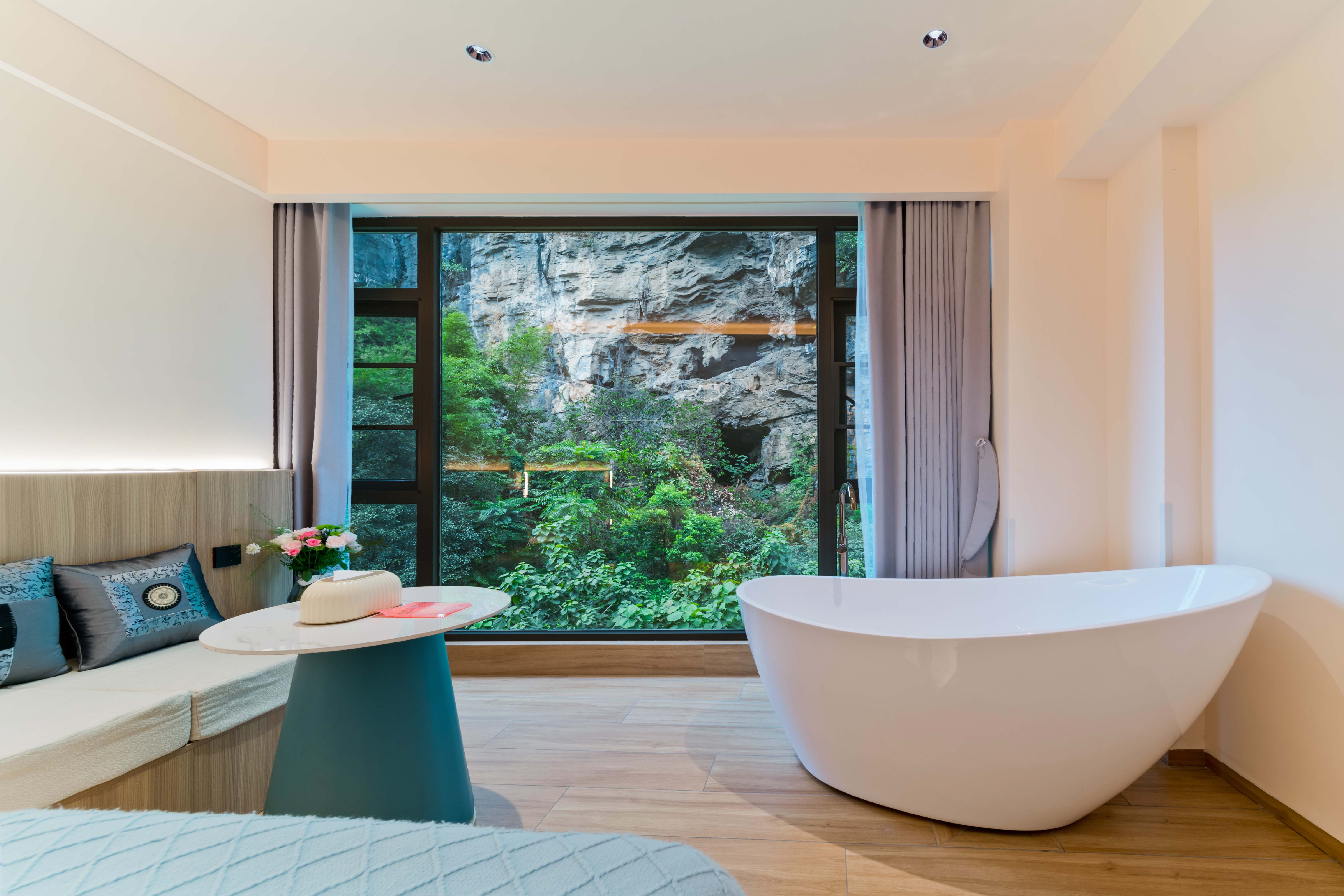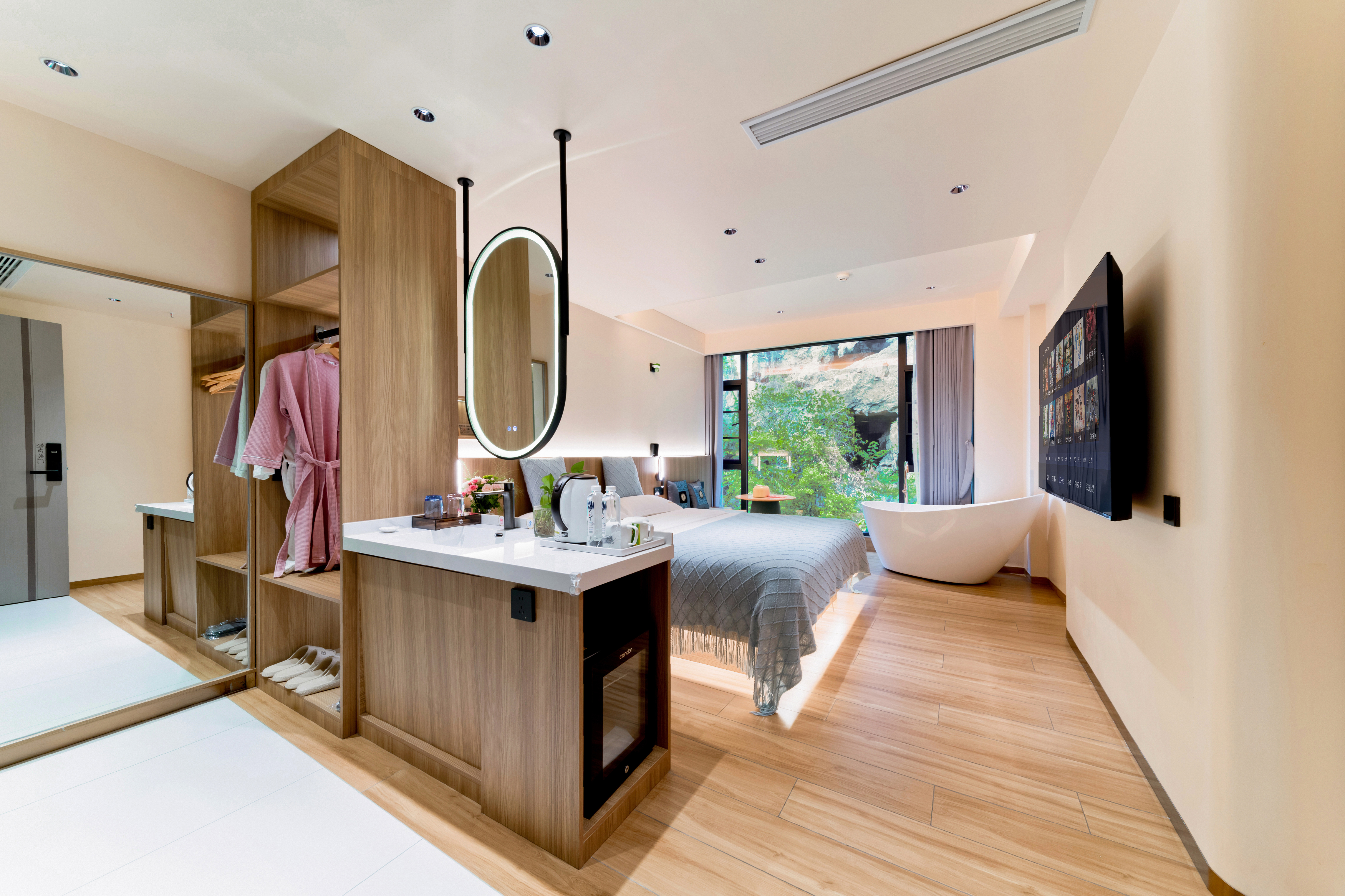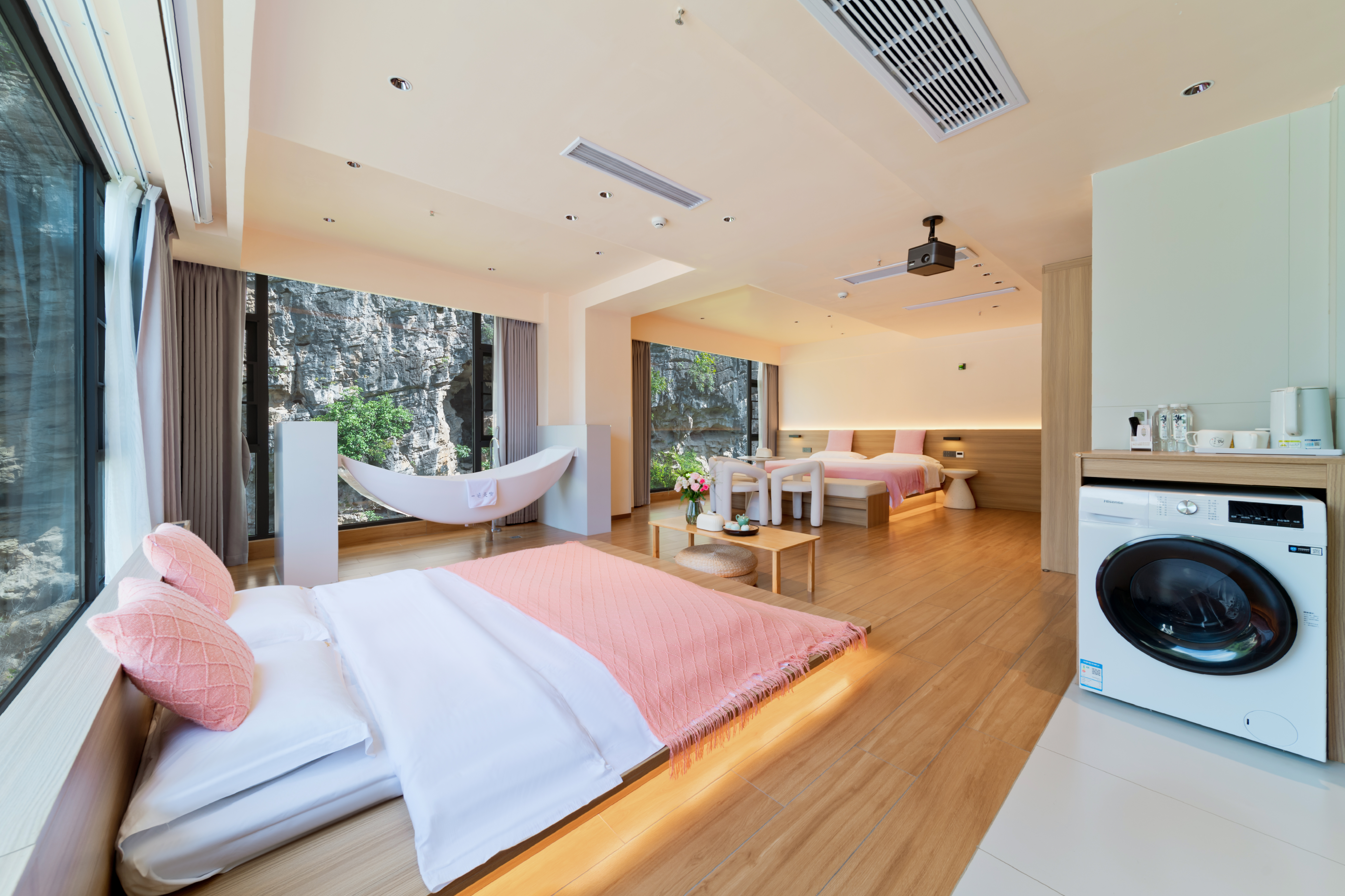 邀月景观大床房(180°伴山居+智能家居客控+智能加热马桶+观喀斯特溶洞景观房)