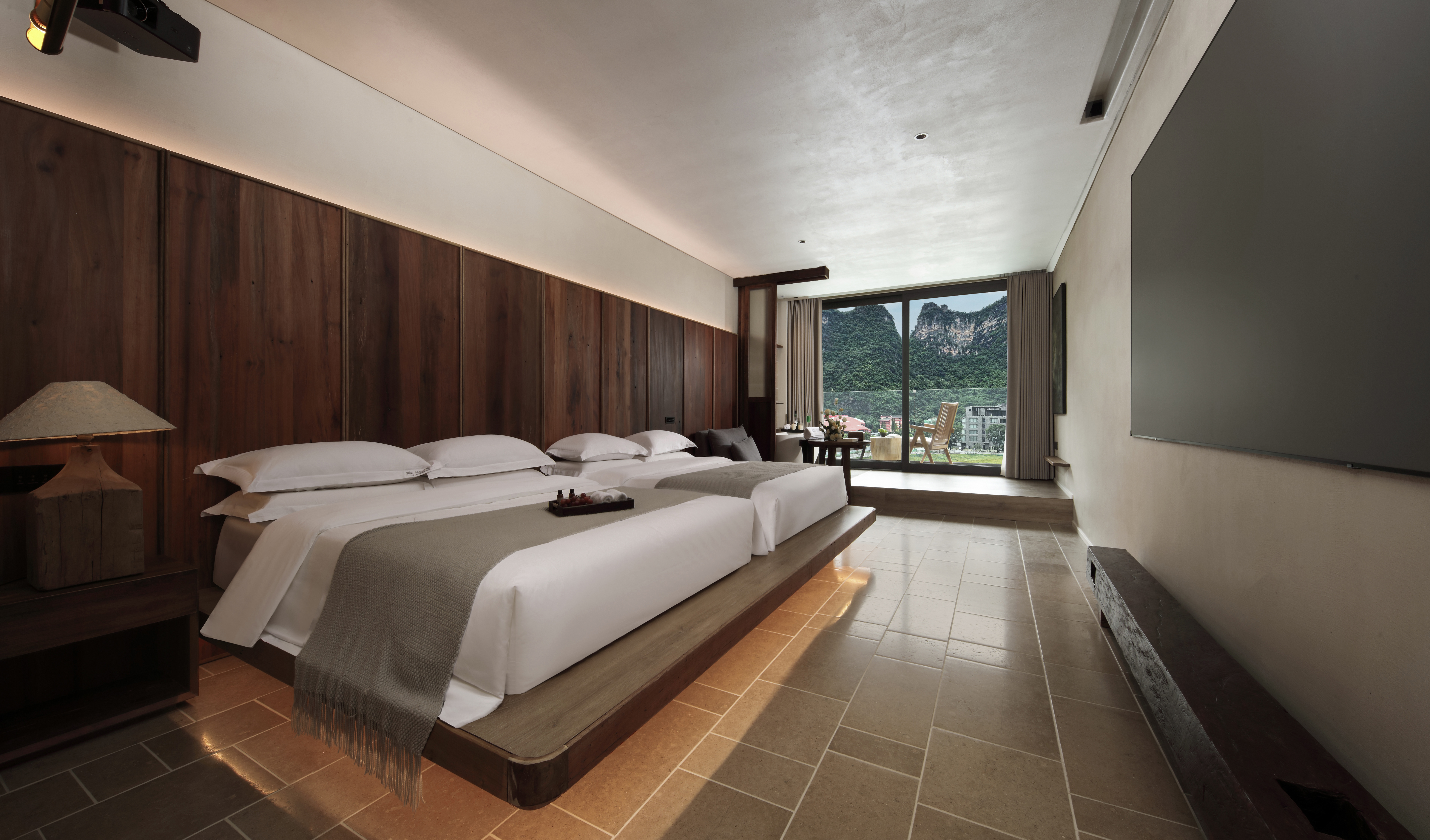 沐烟山景阳台大床房『100寸高清投屏+180°景观』