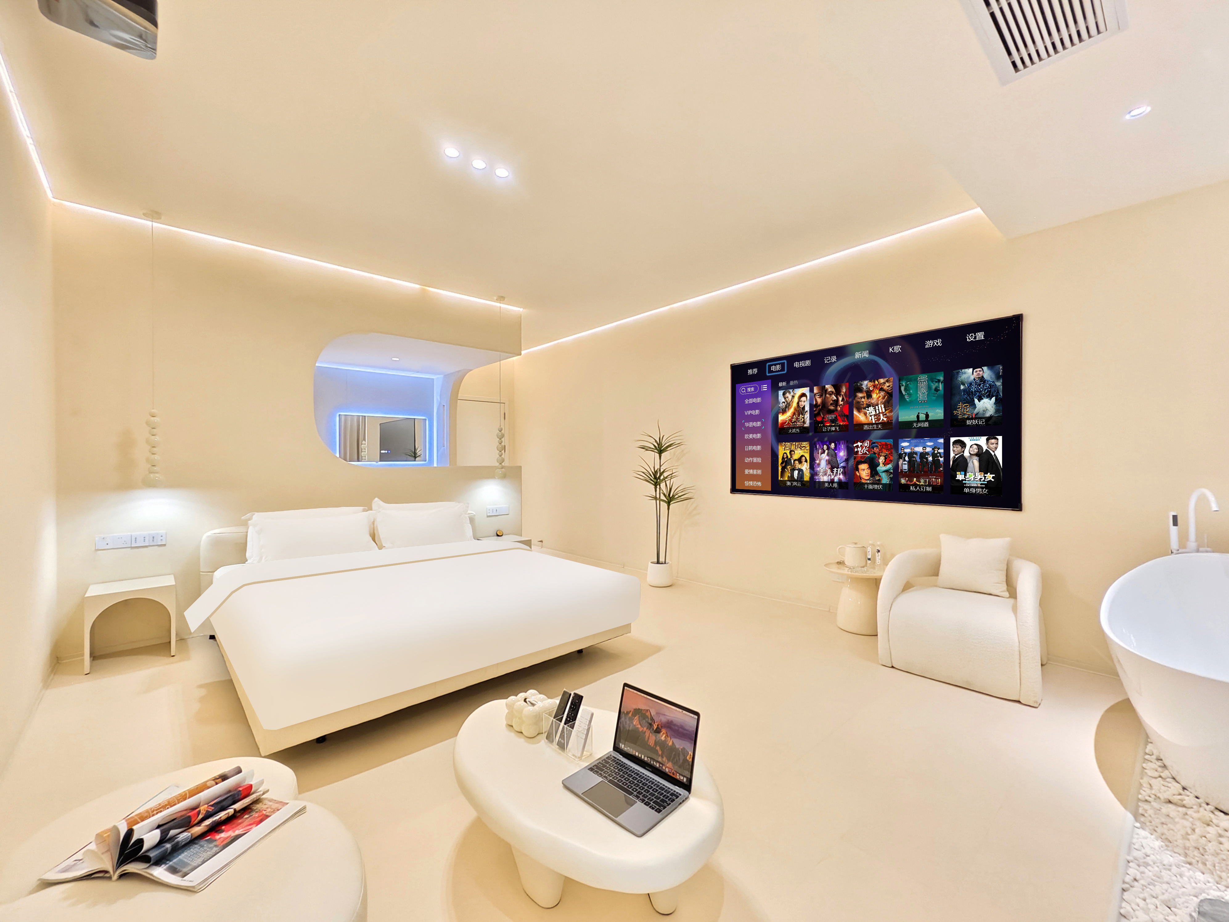 晨沐初晓大床房—浴缸+投影+冰箱+智能马桶+空气净化器