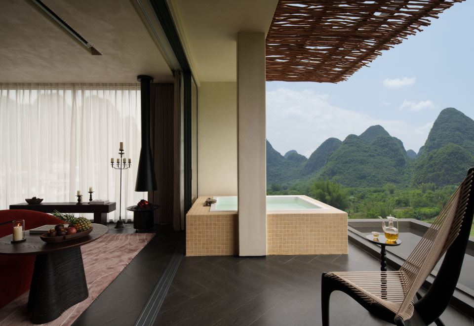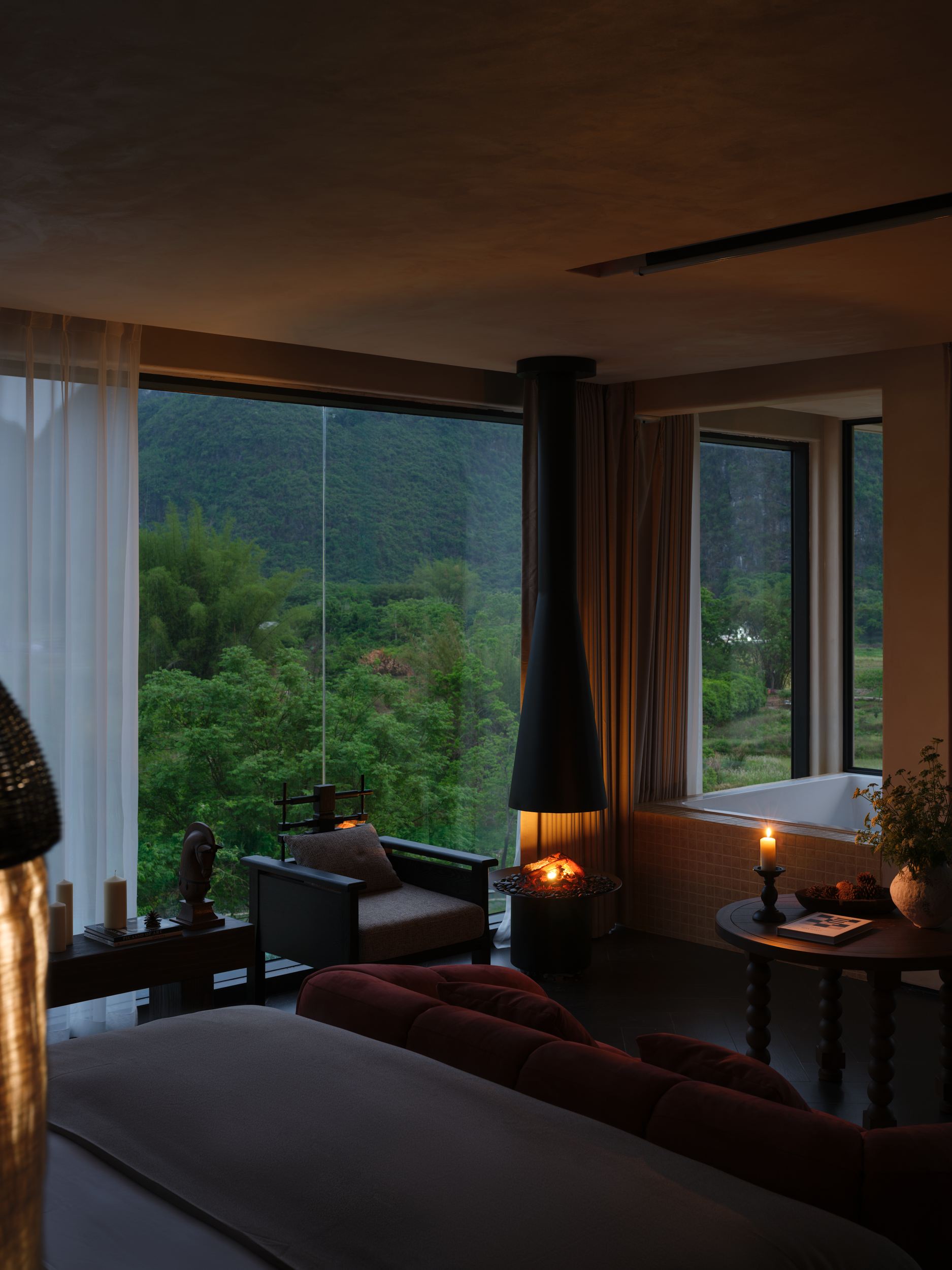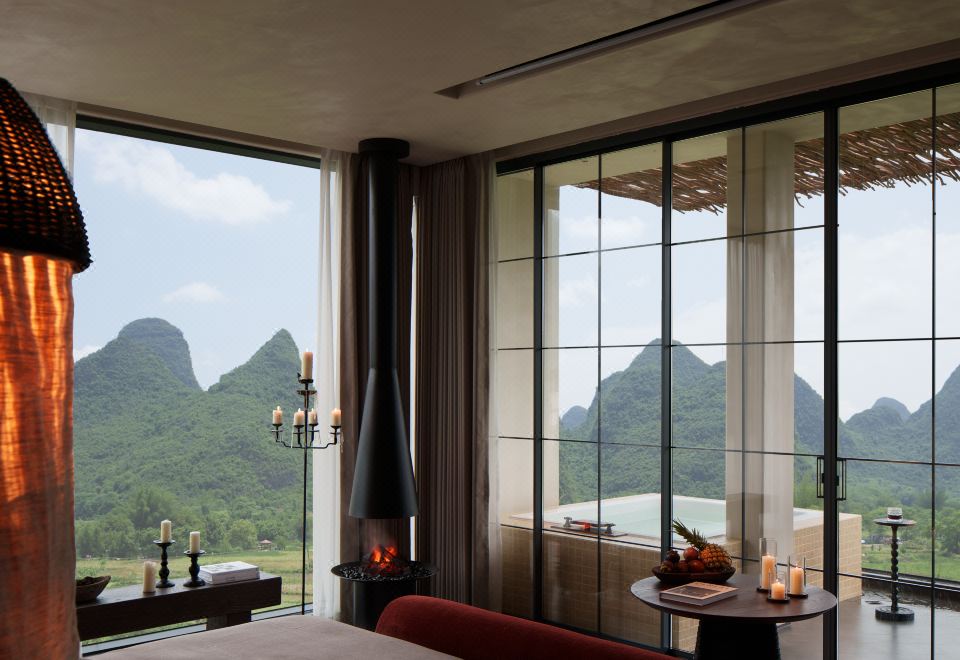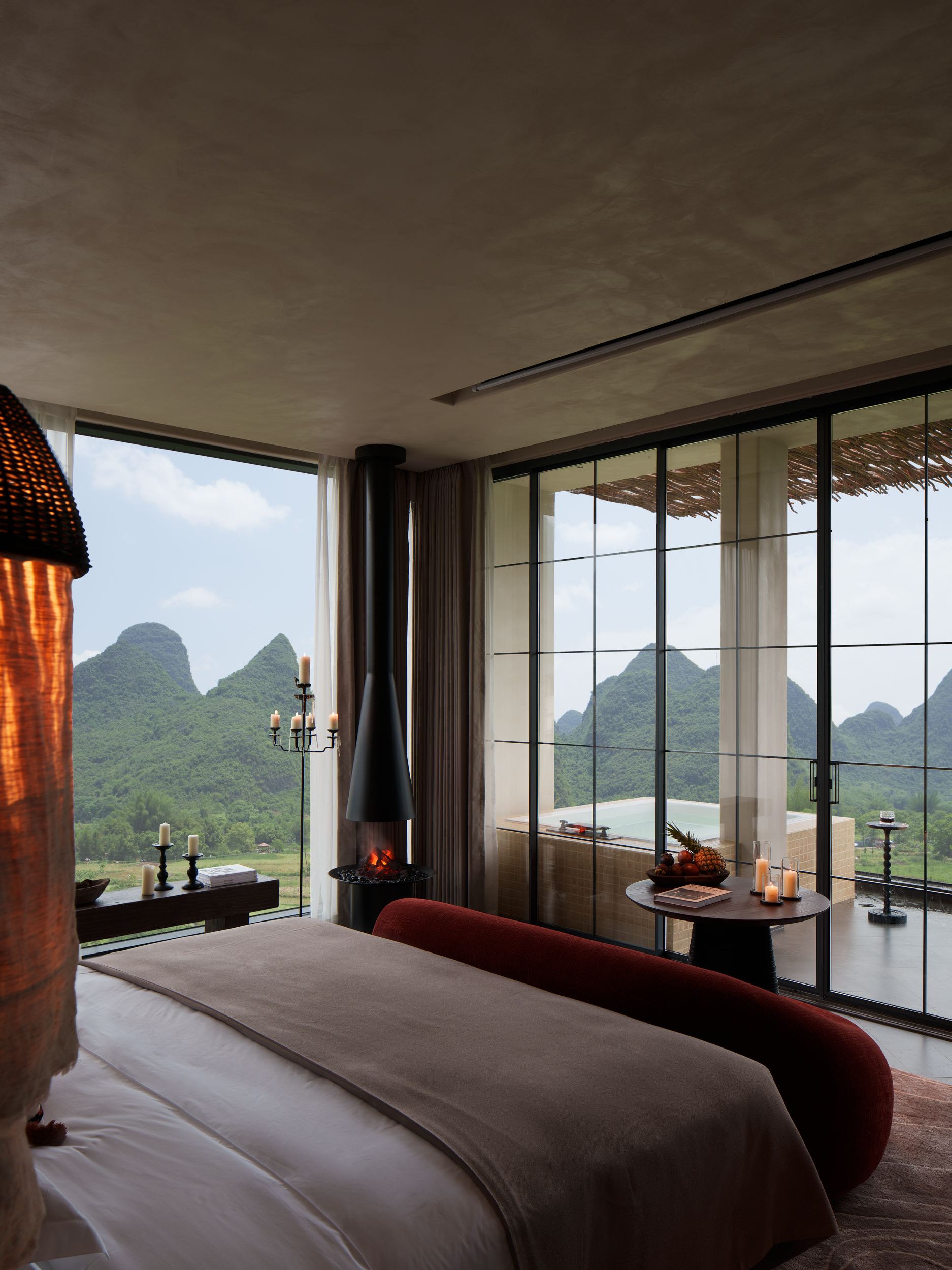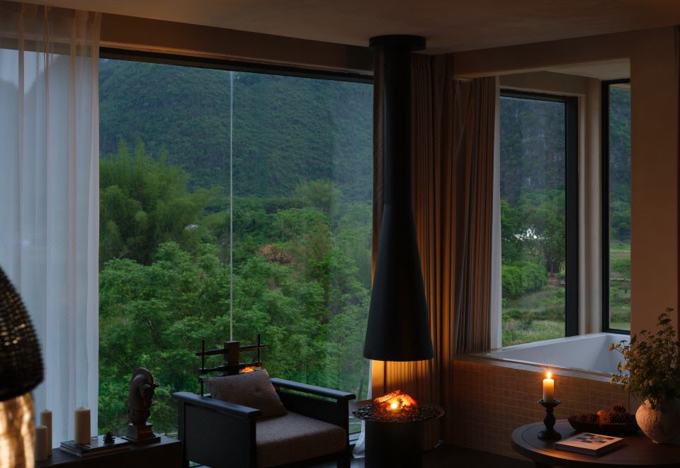落日大床房|超大露台+云端私汤+Hygge壁炉+戴森+欧舒丹