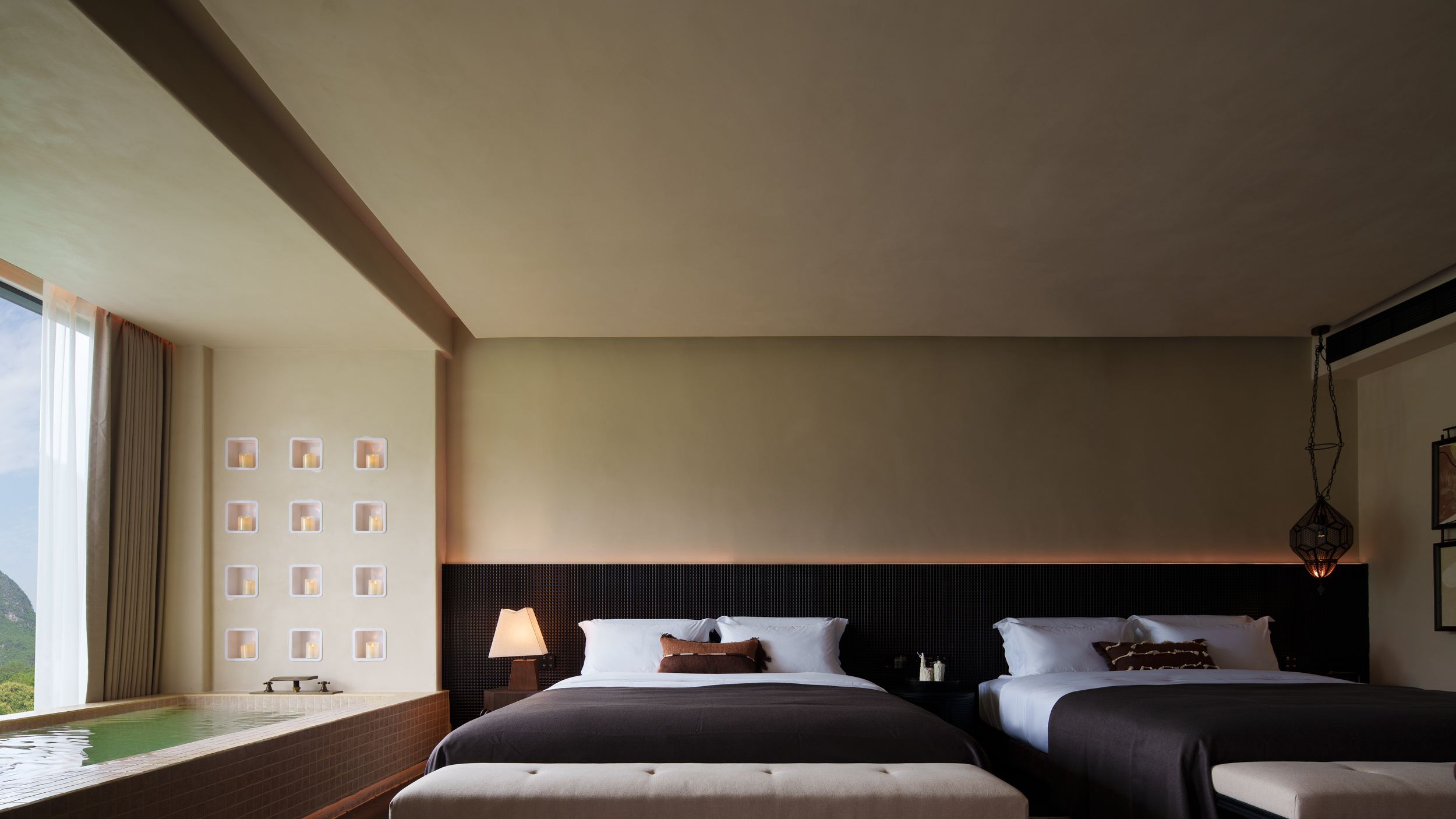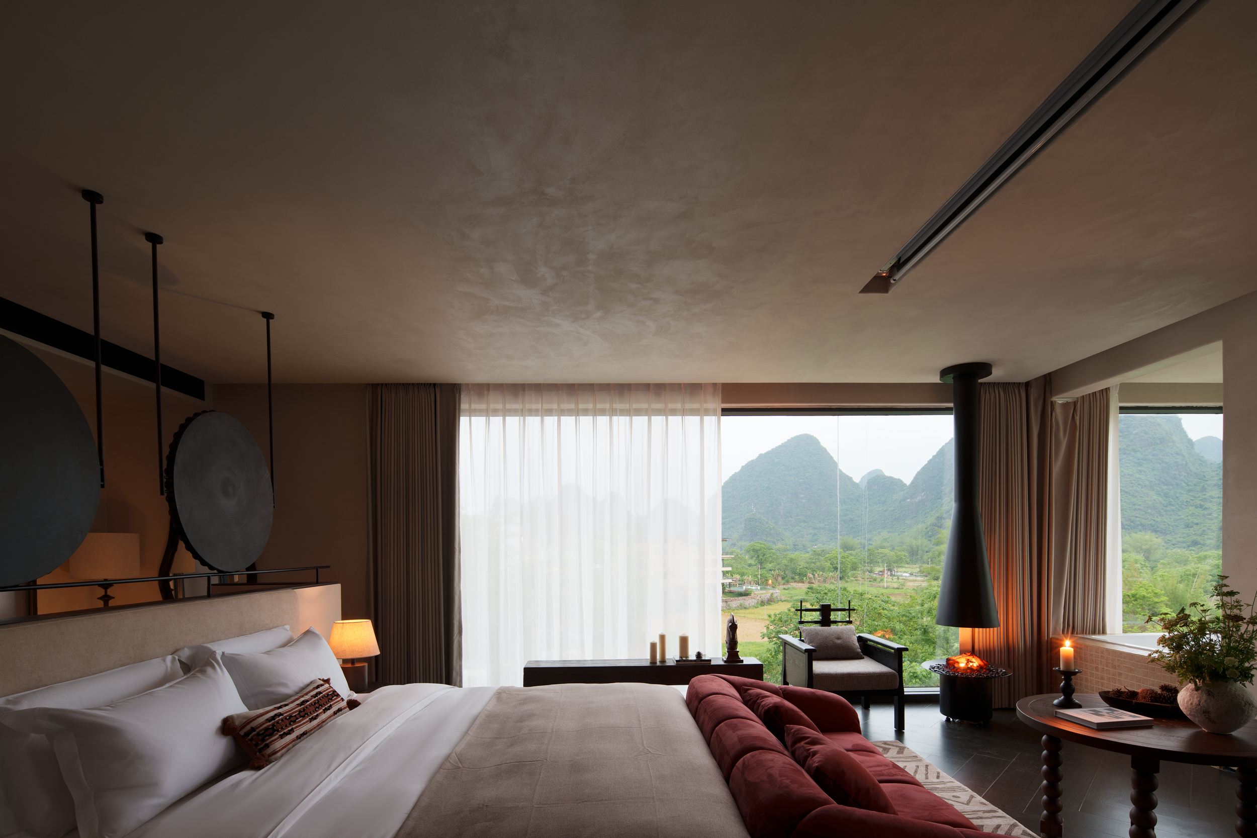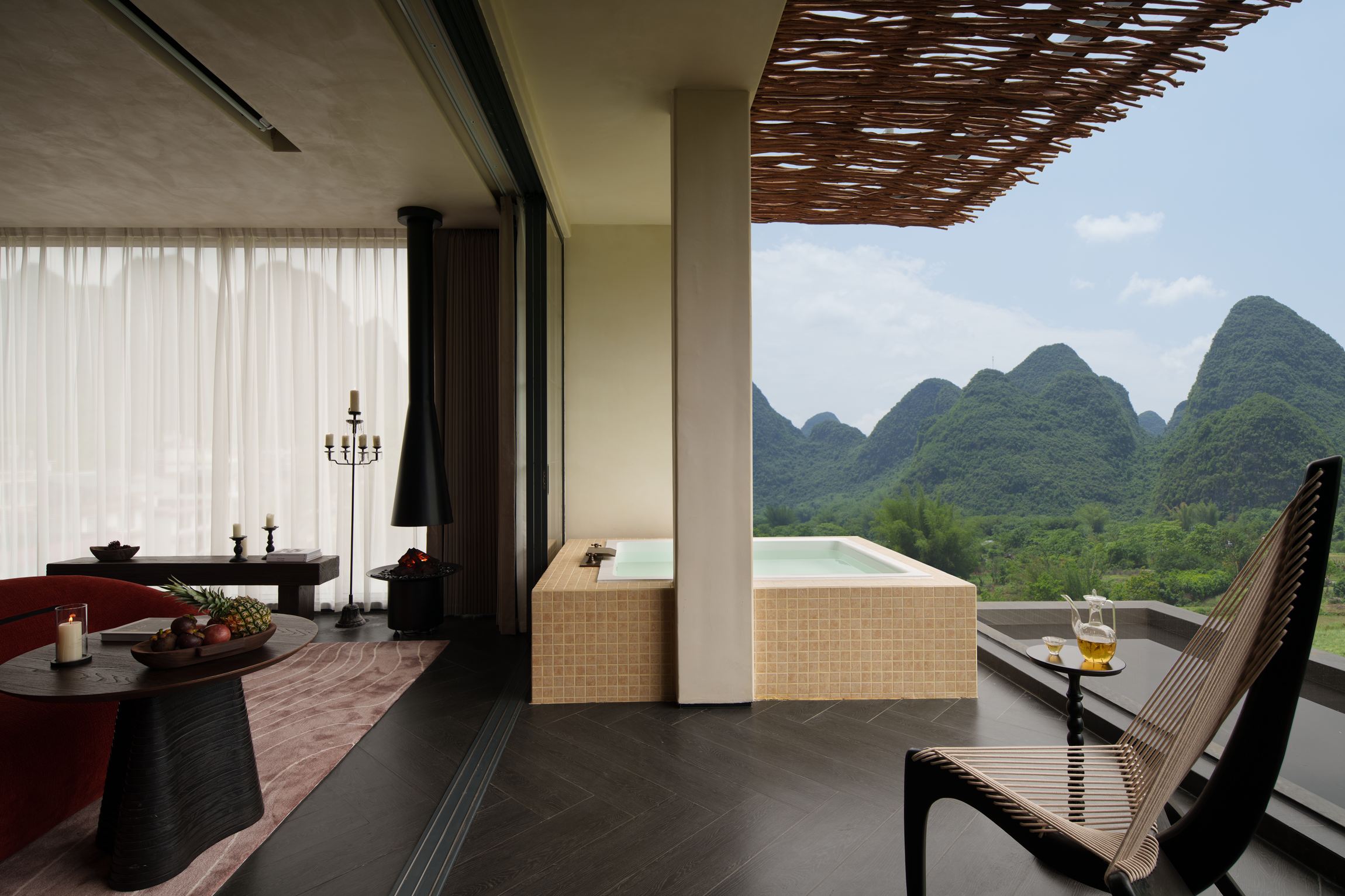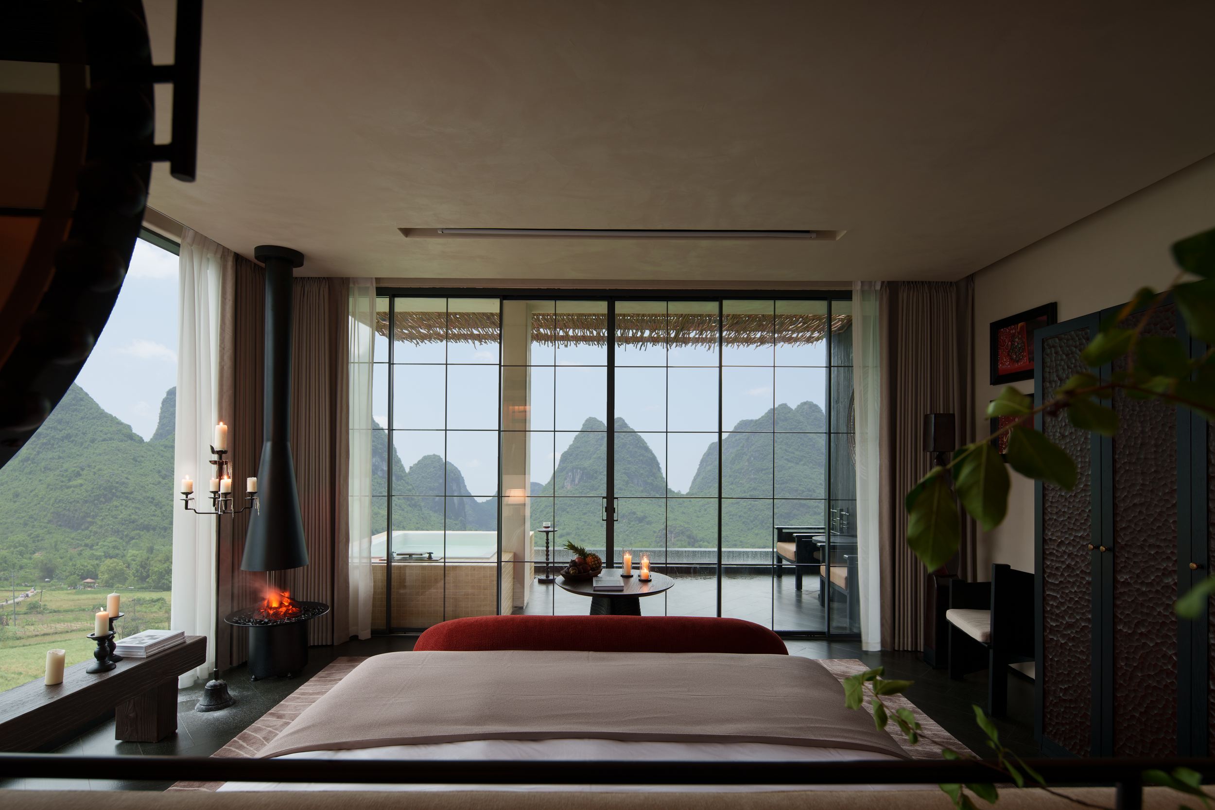 落日大床房|超大露台+云端私汤+Hygge壁炉+戴森+欧舒丹