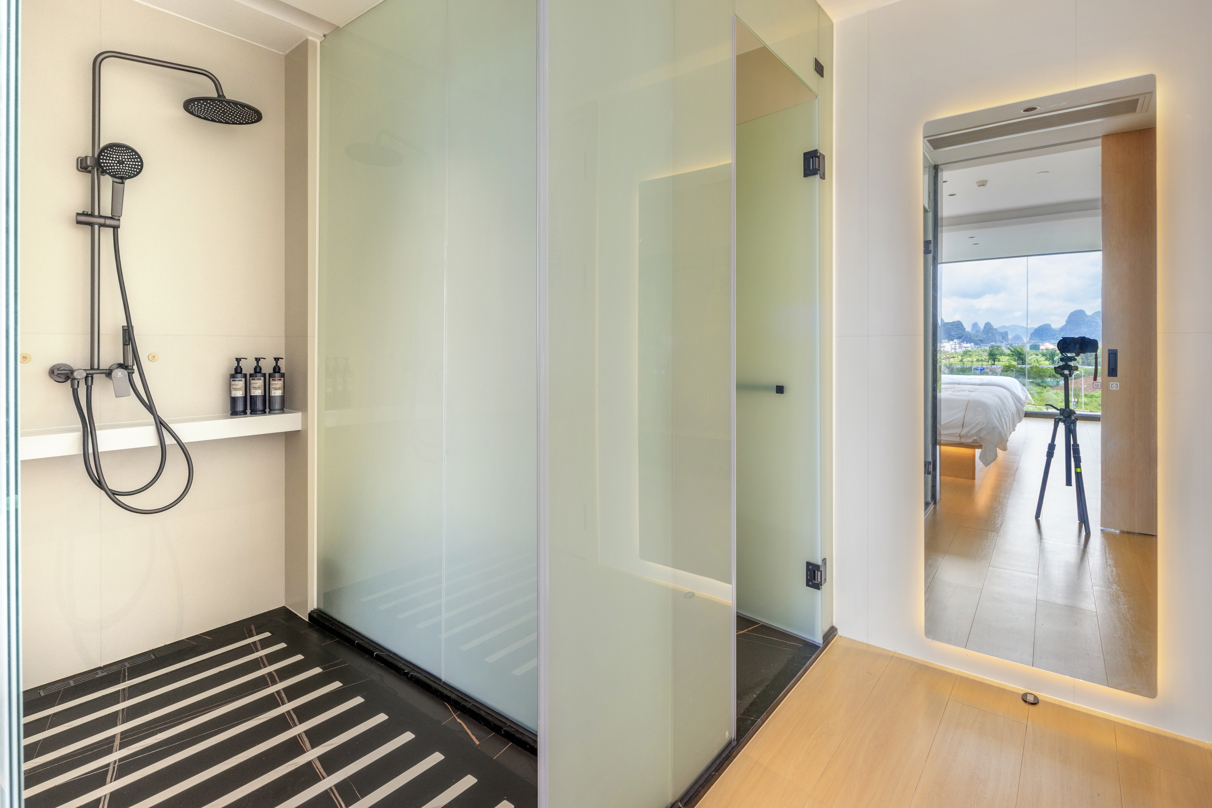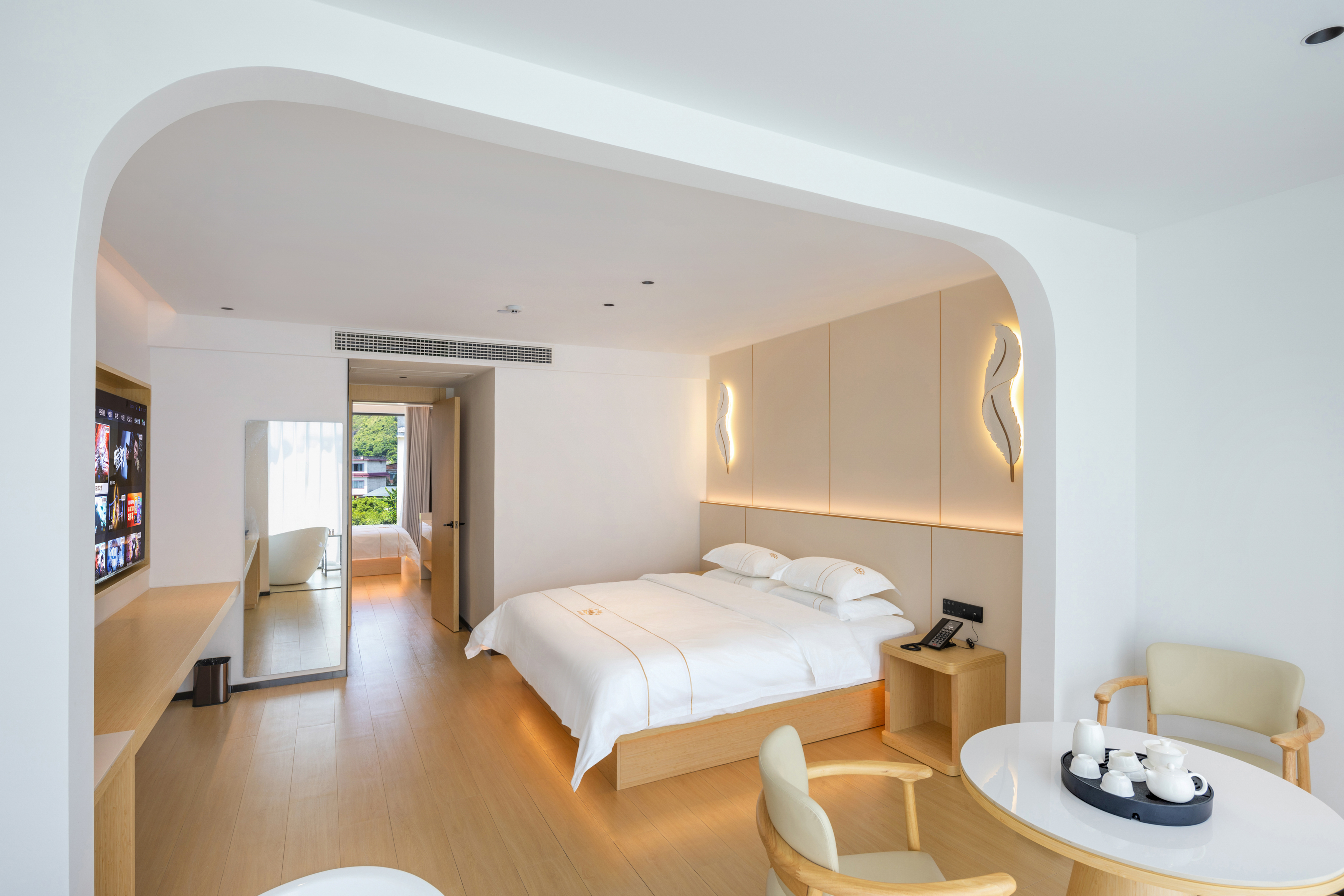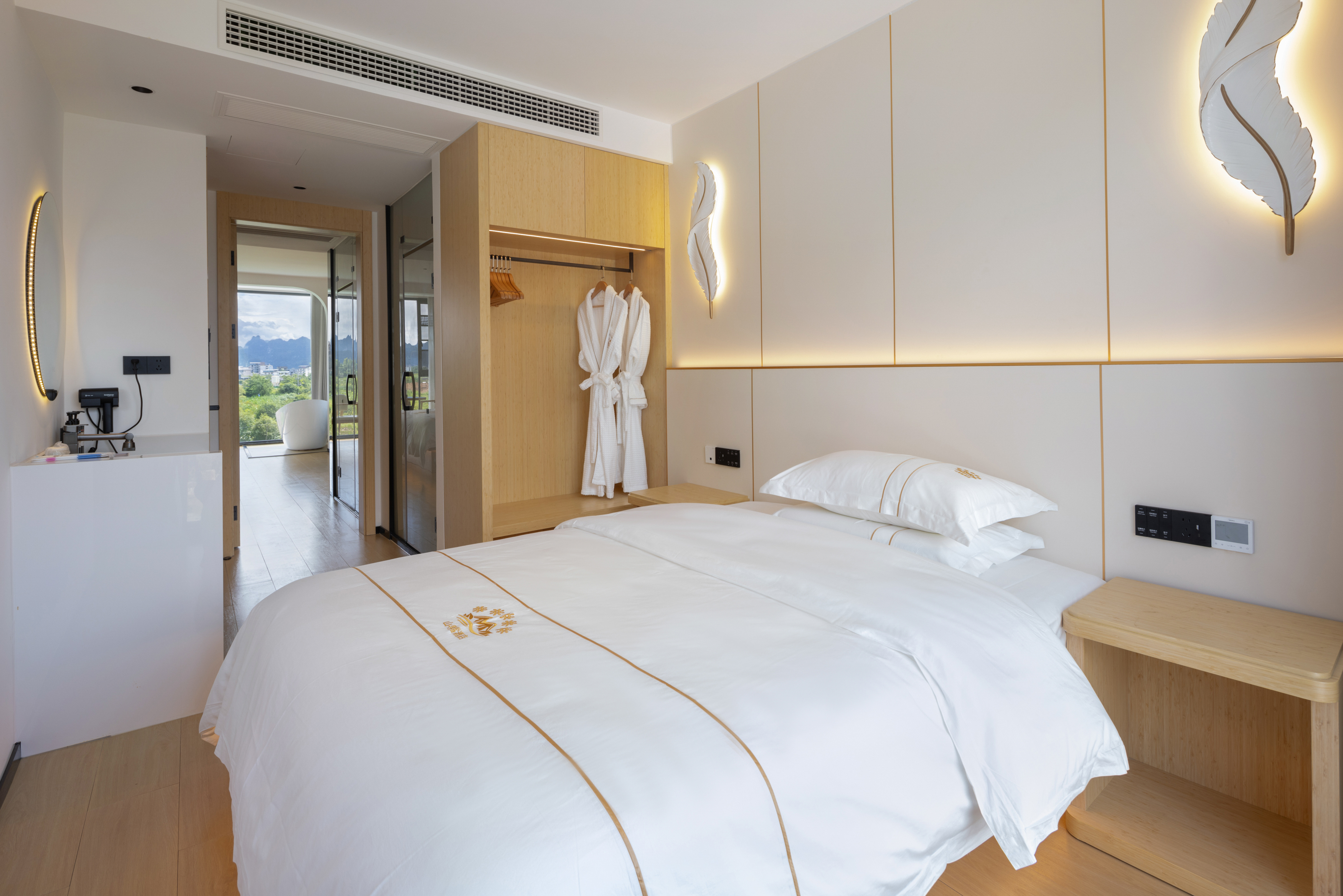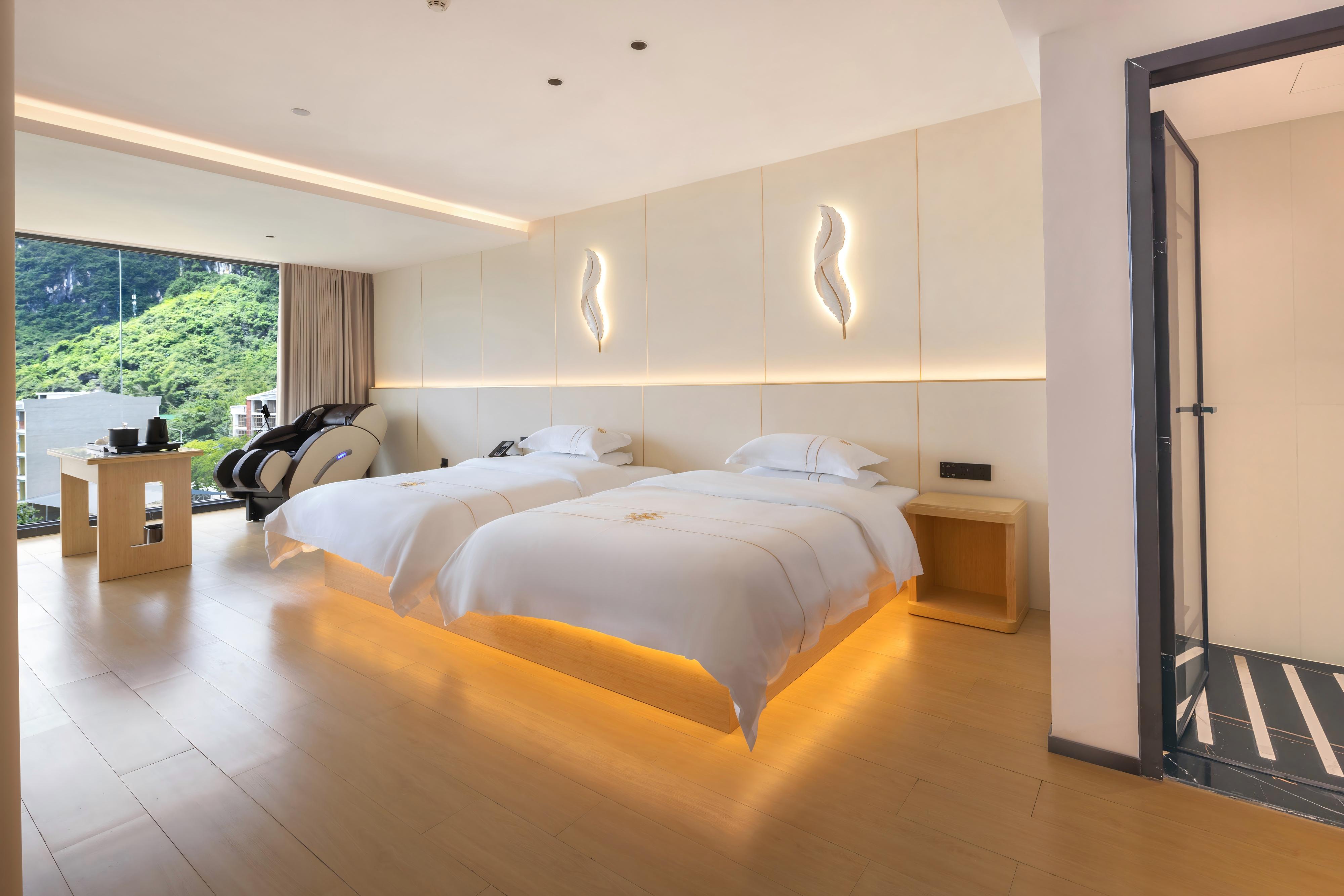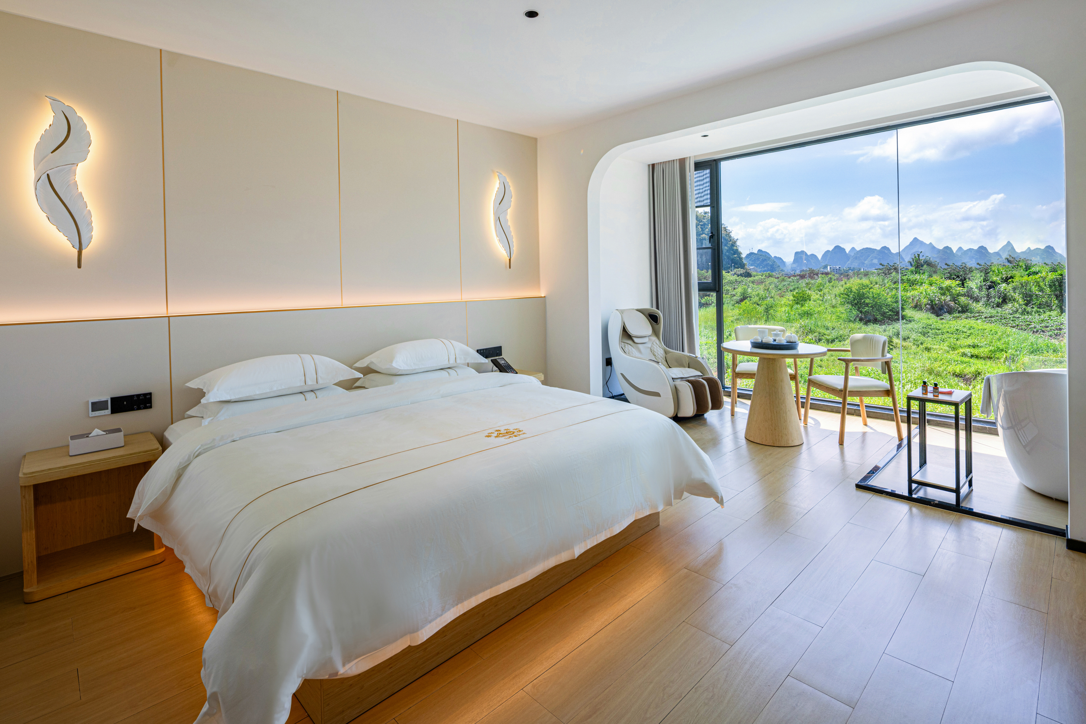 天空之湖拍山水倒影阳台双大床按摩椅浴缸套房