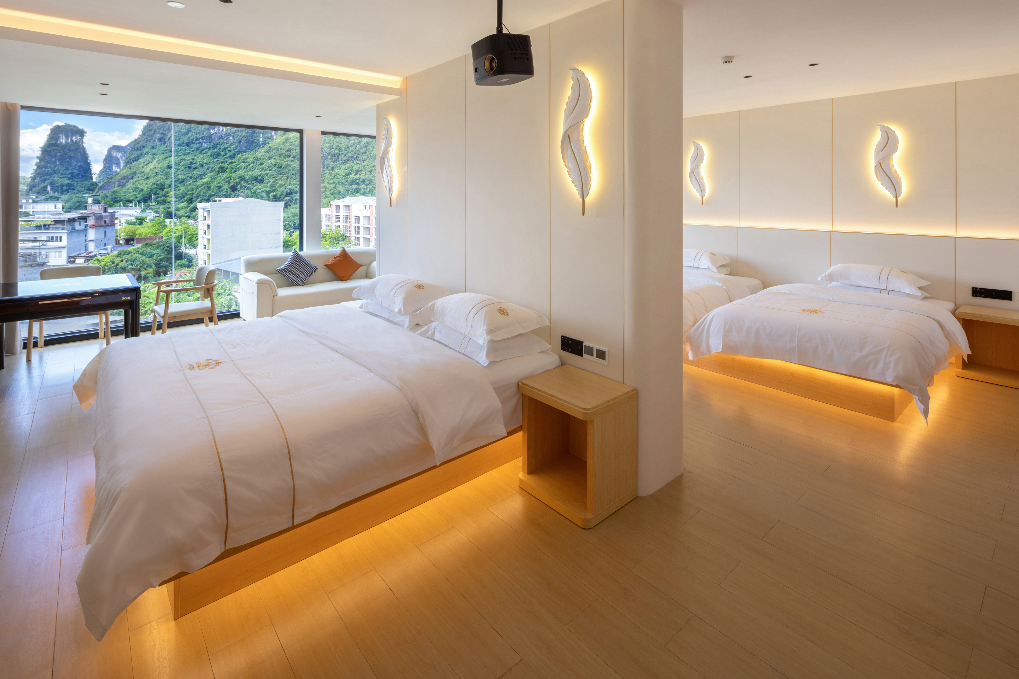 天空之湖拍山水倒影三床麻将套房