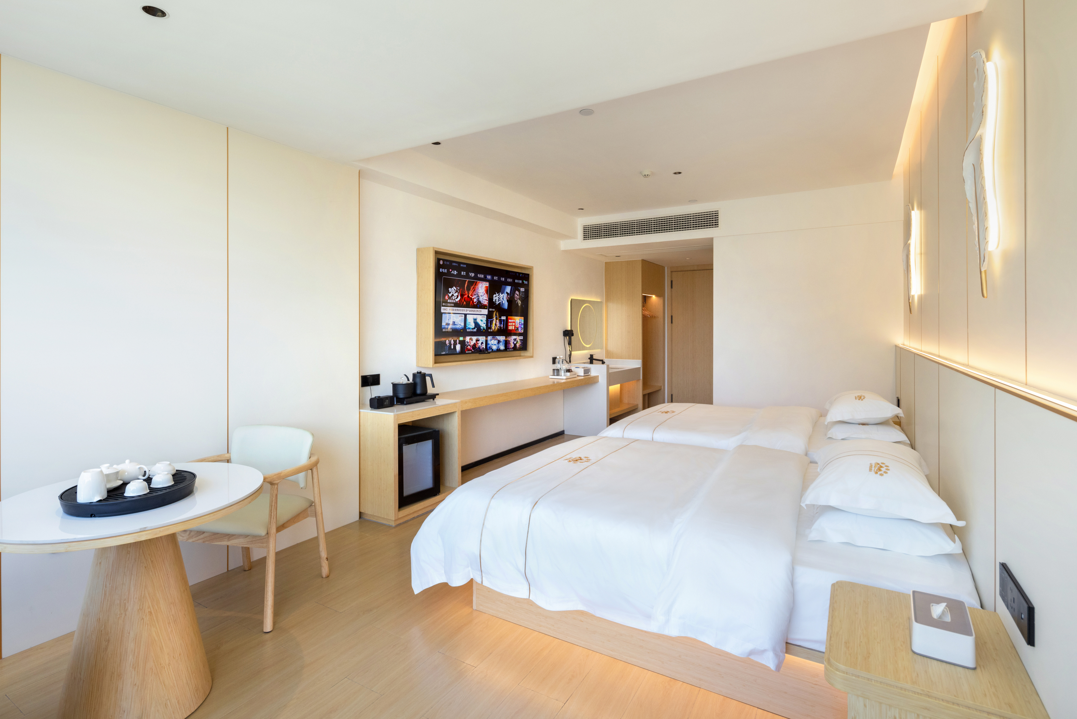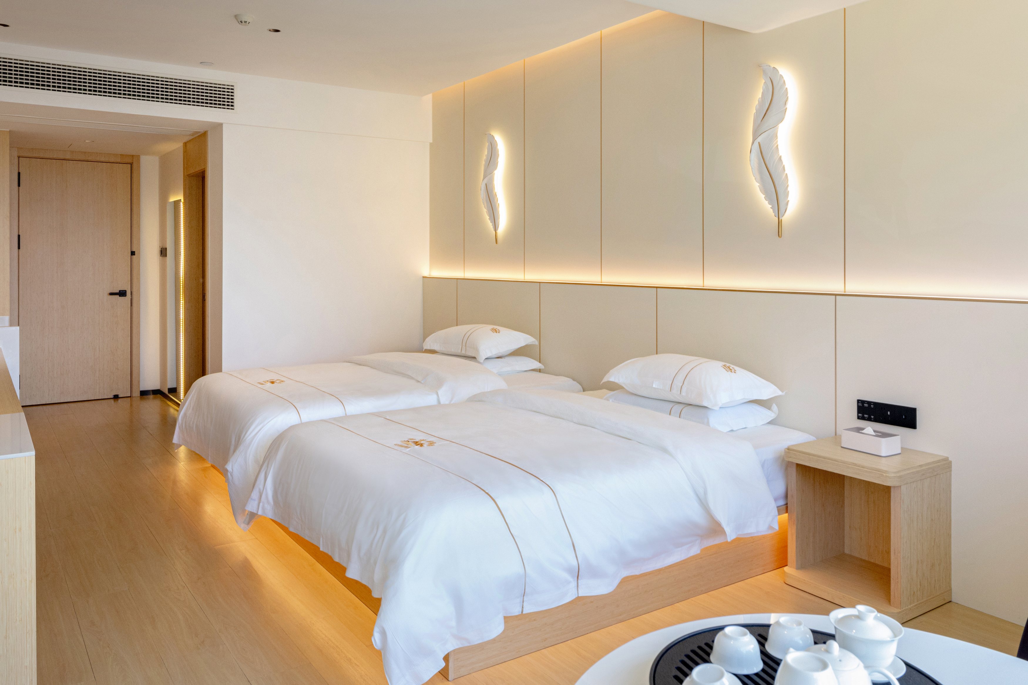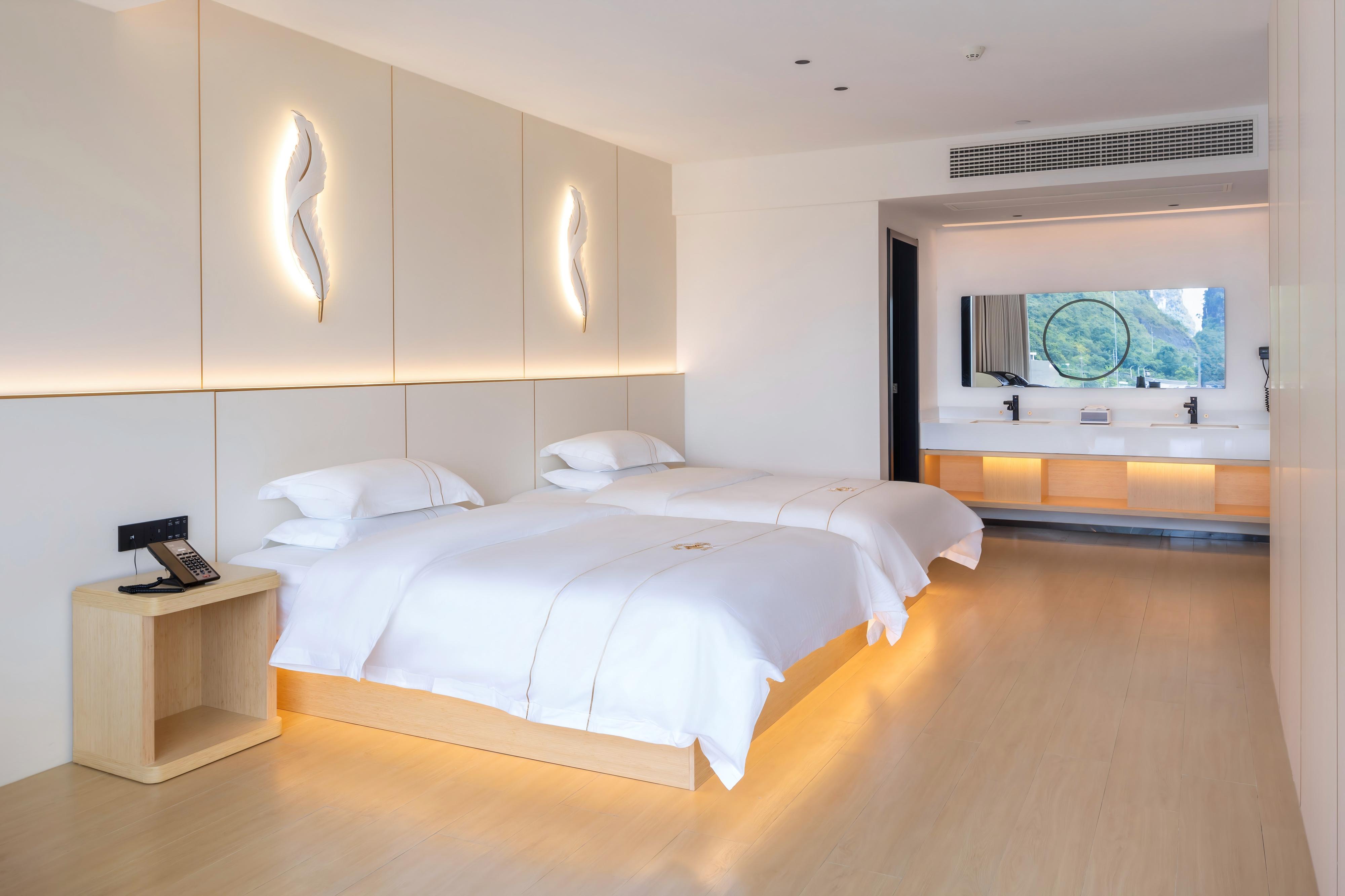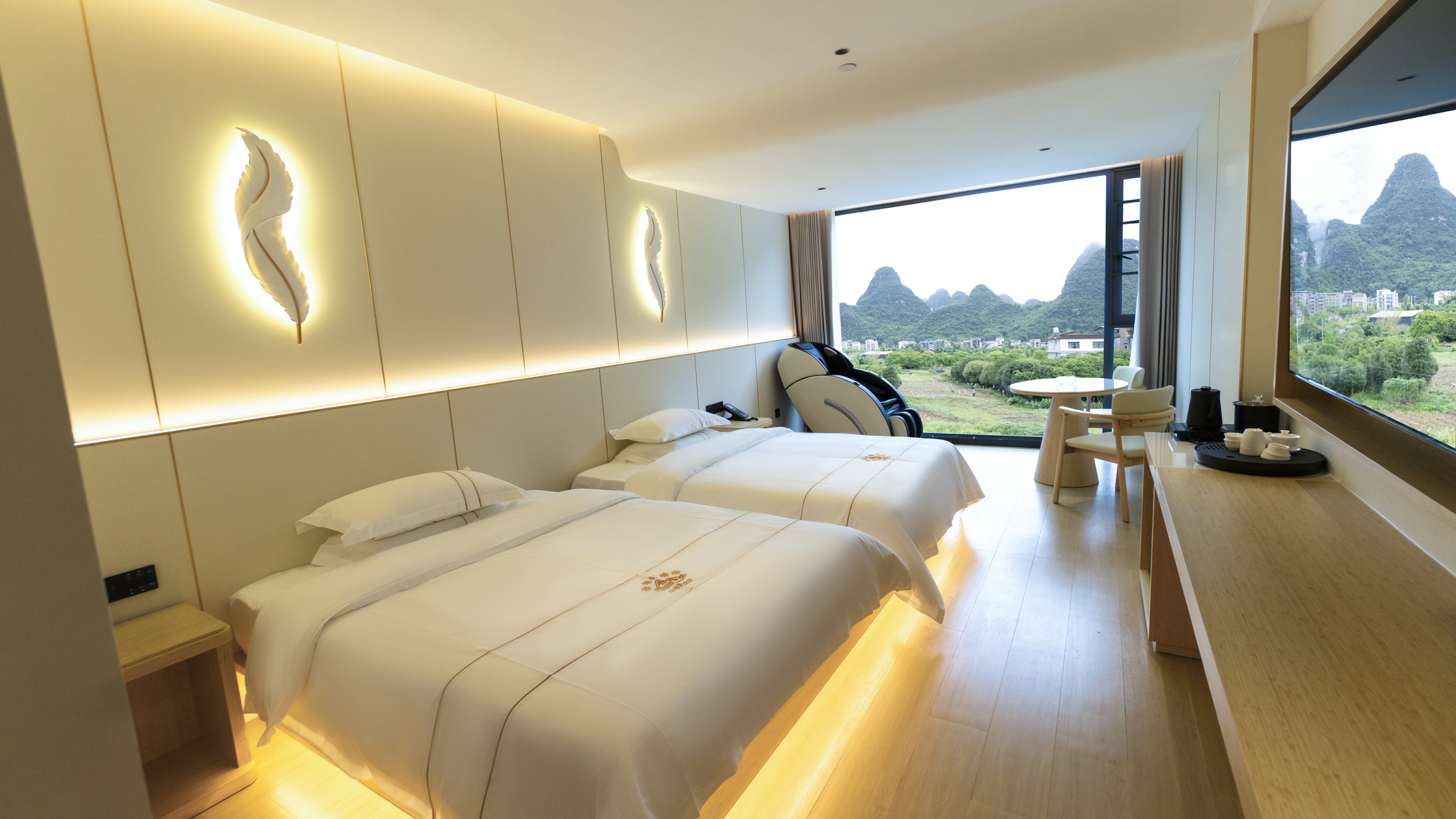 天空之湖拍山水倒影按摩椅影院双床房