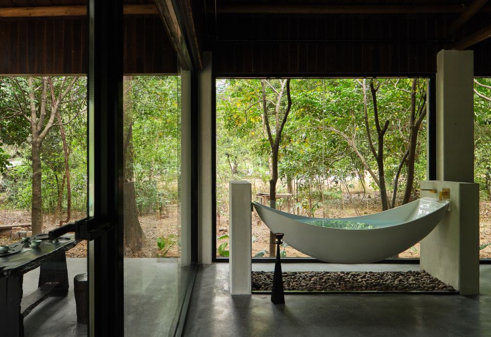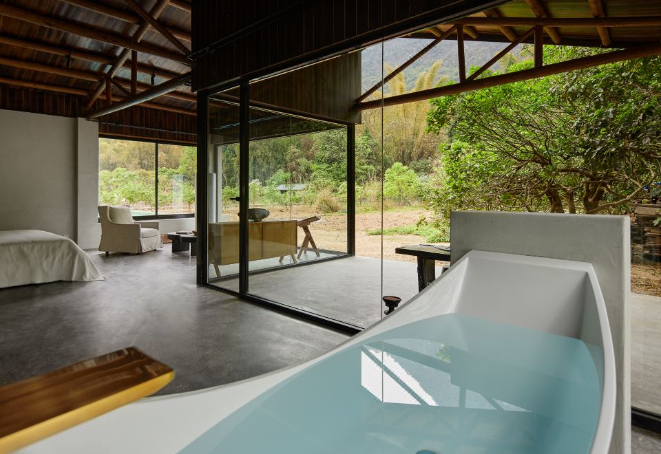 山岚丨泳池景观大床+悬浮浴缸+自然庭院