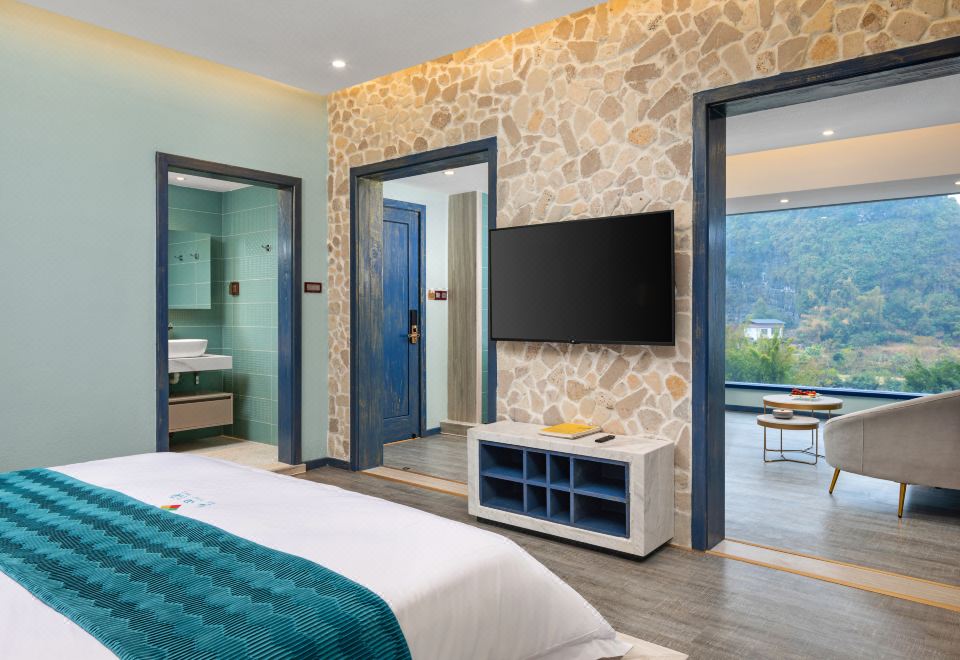镜中月·山随筏走一室一厅露台大床房+躺观遇龙河山水