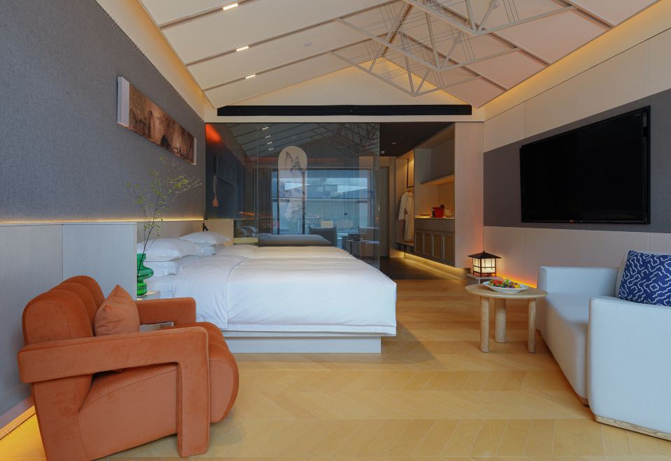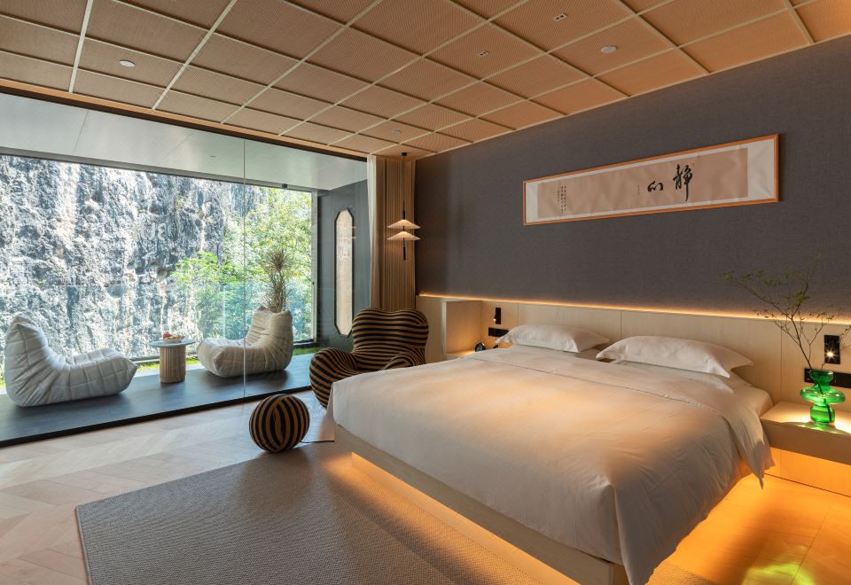 观山雨大床房(隔音巨幕落地窗,静拥千古山水舞台)