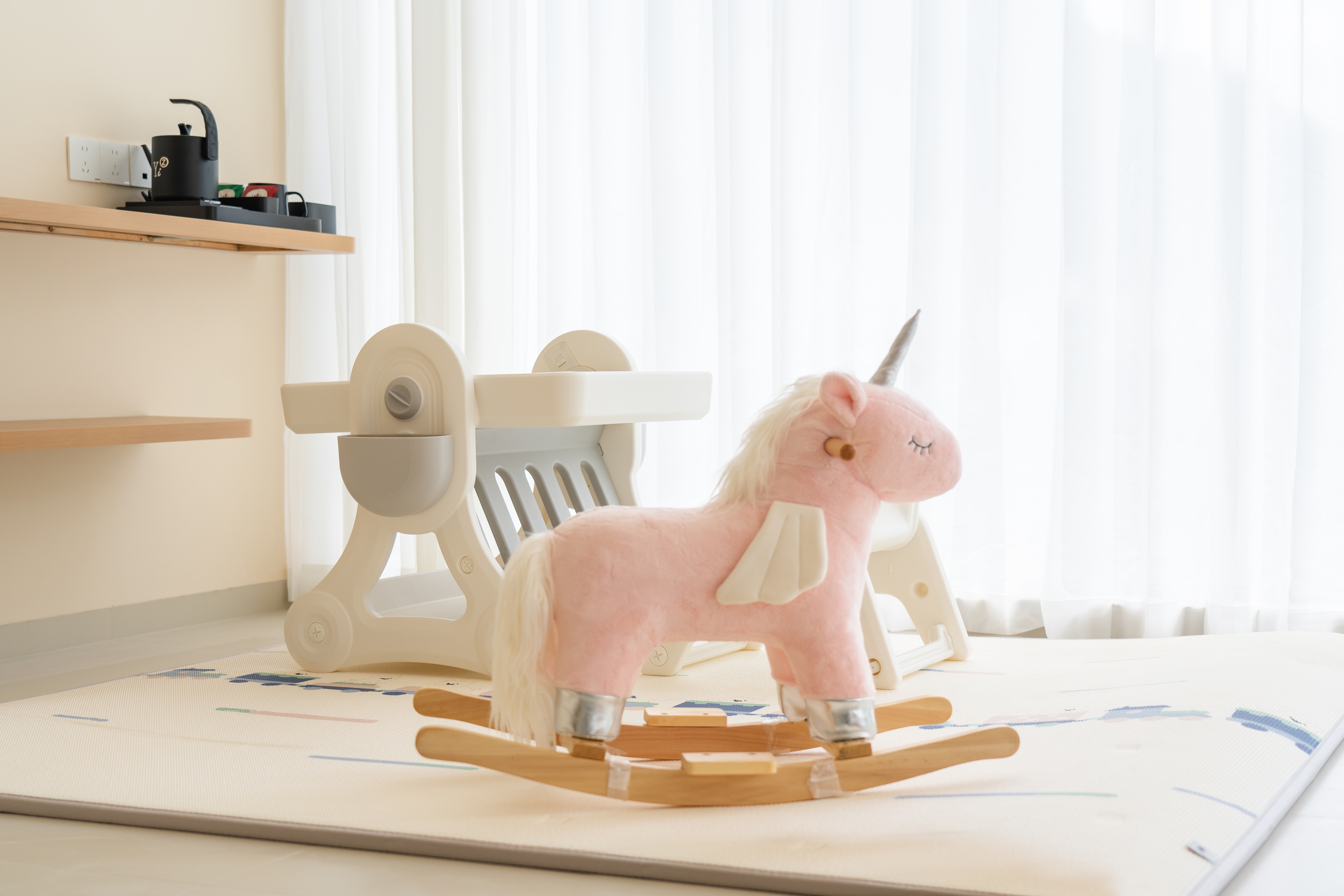 寻悠·温馨亲子主题房(180°落地窗+休闲吊椅+小童木马)