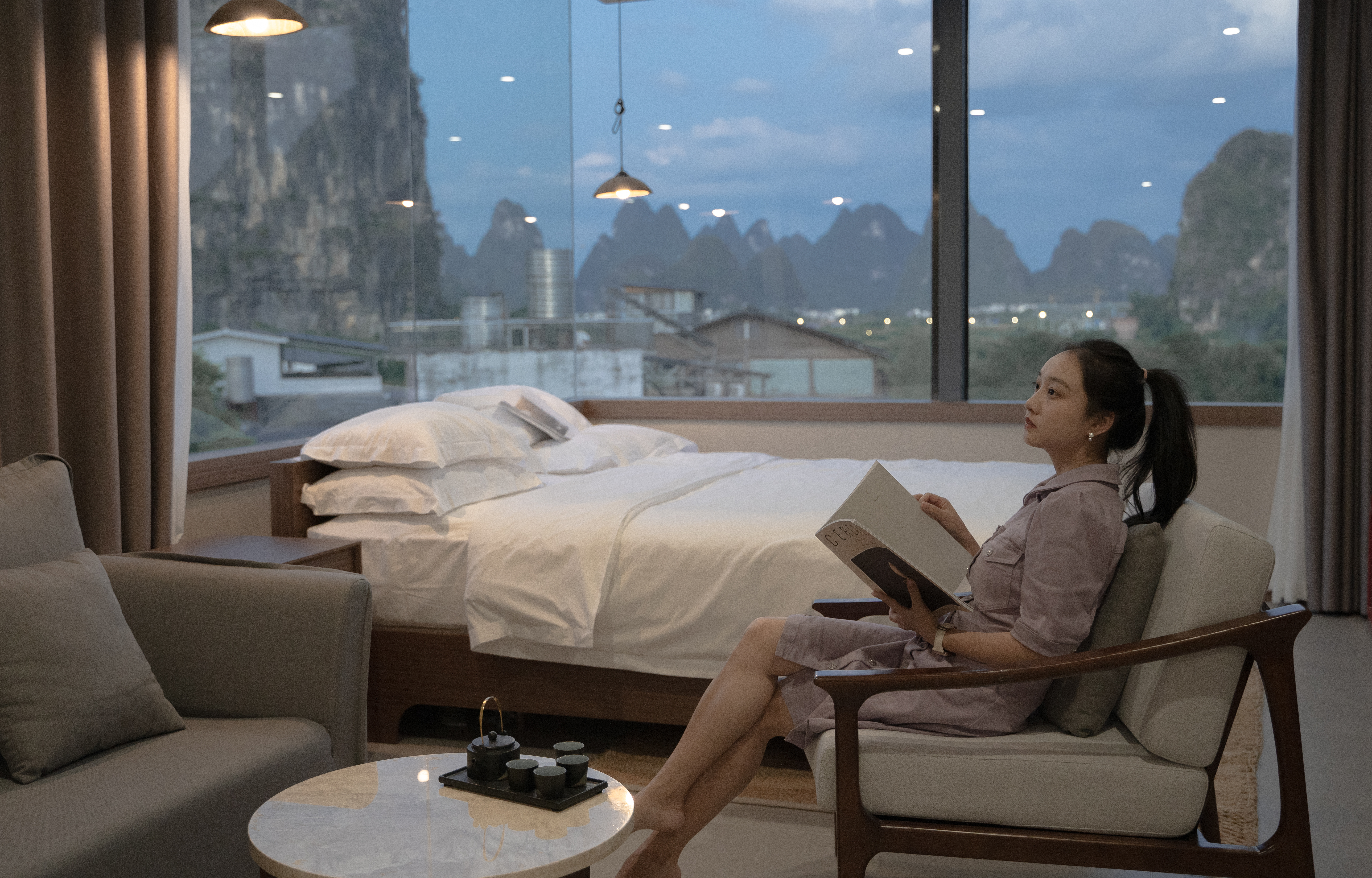 觅境河景影音大床房(3号楼·宽幕河景+投影+观景浴缸)