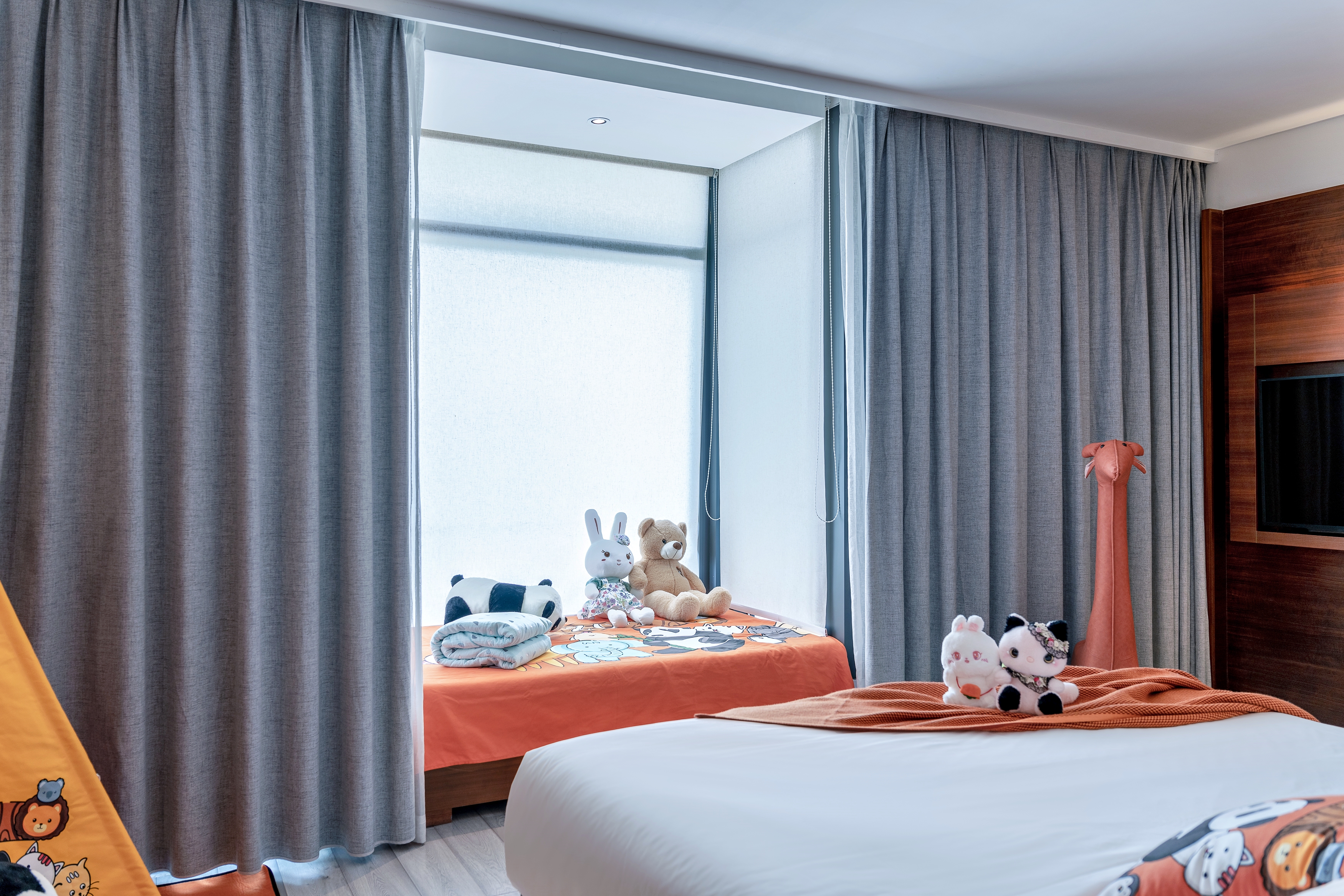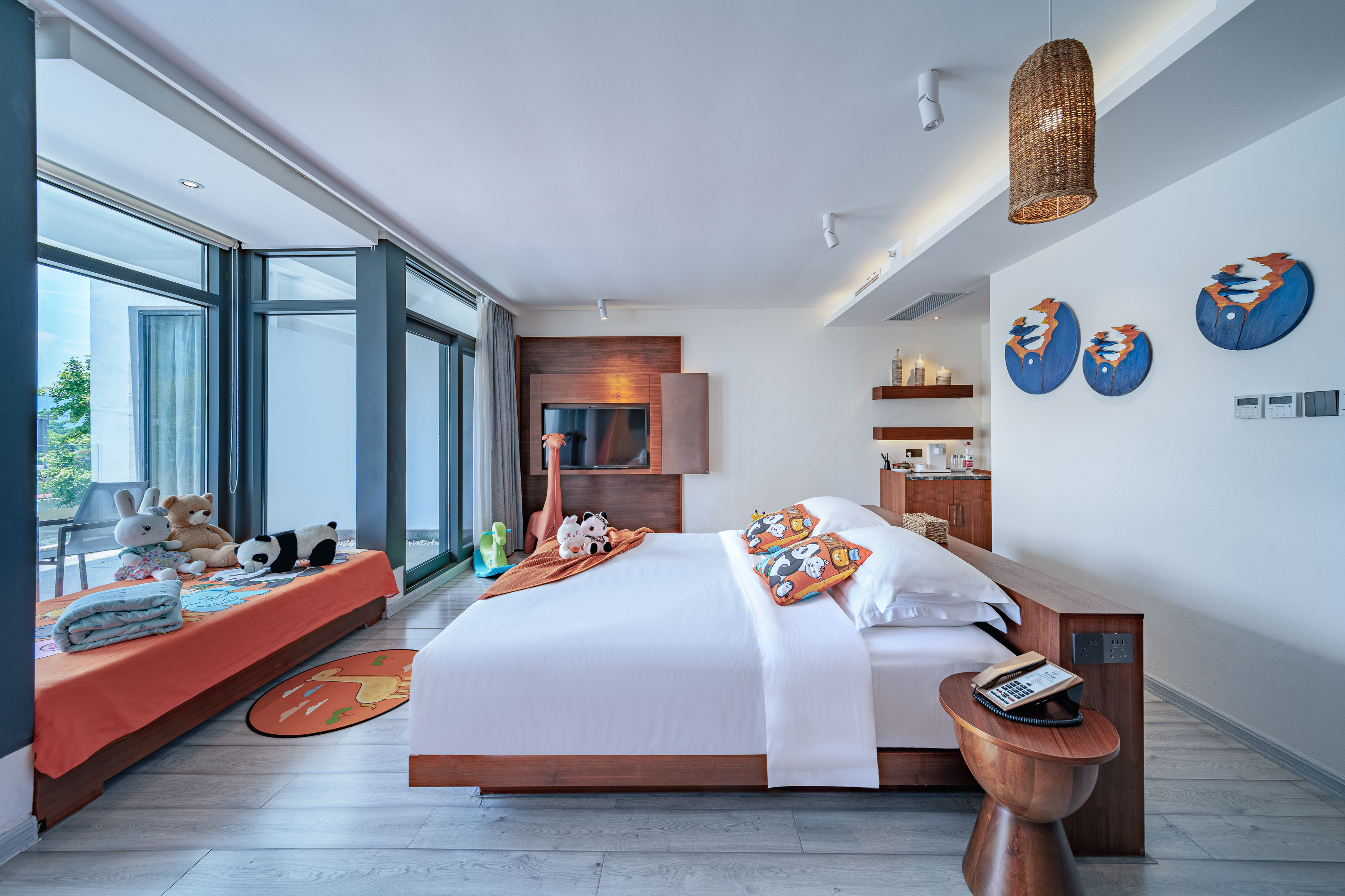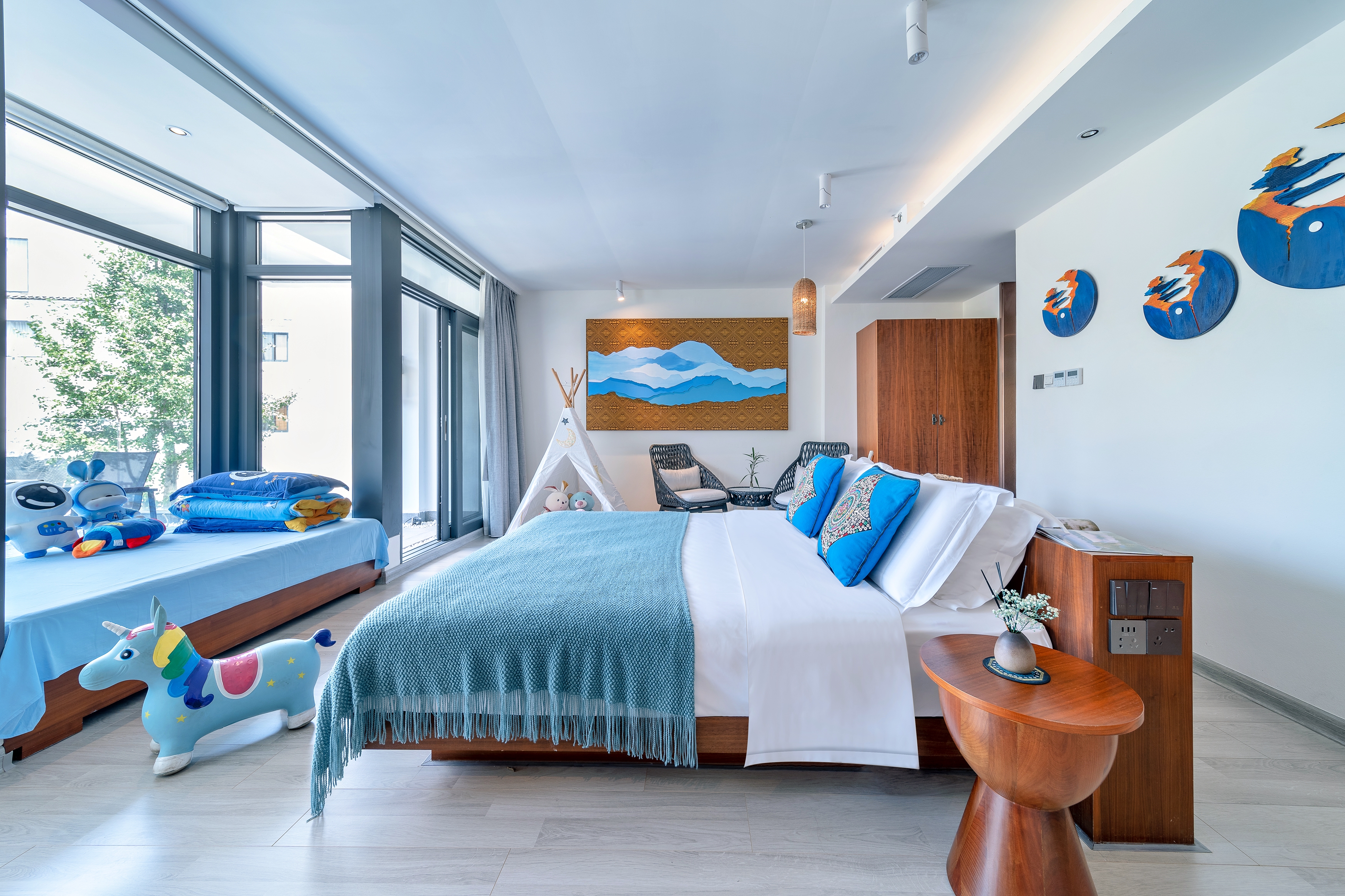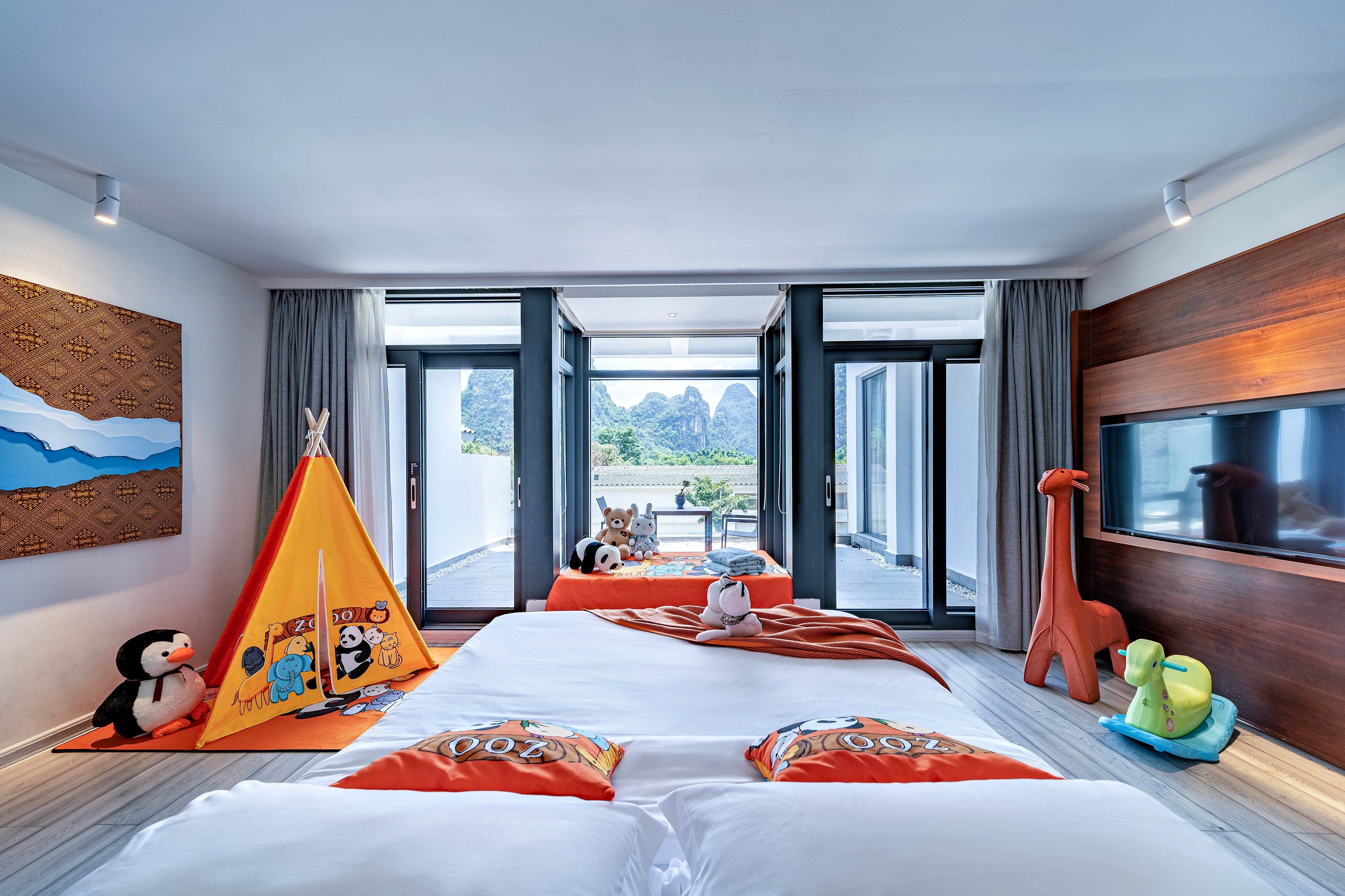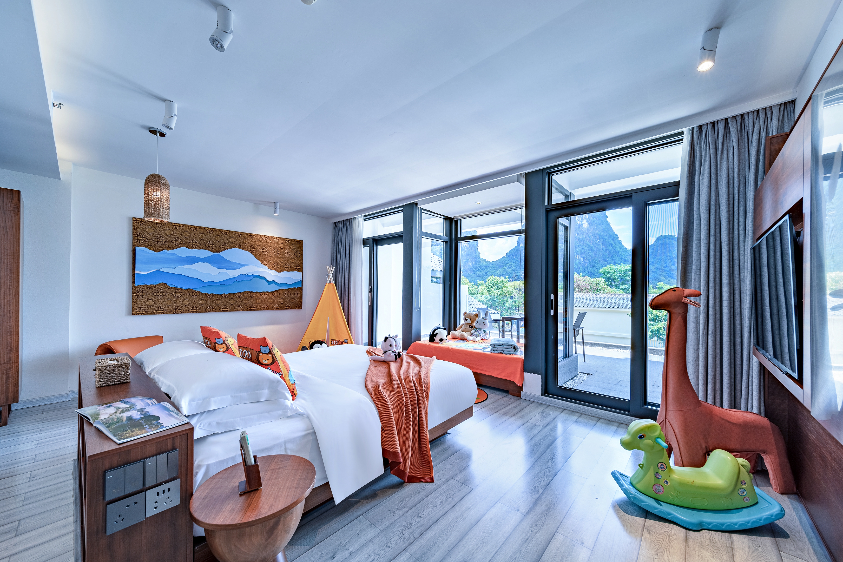 特色家庭亲子房 (榻榻米小童床+露台躺着看田园)
