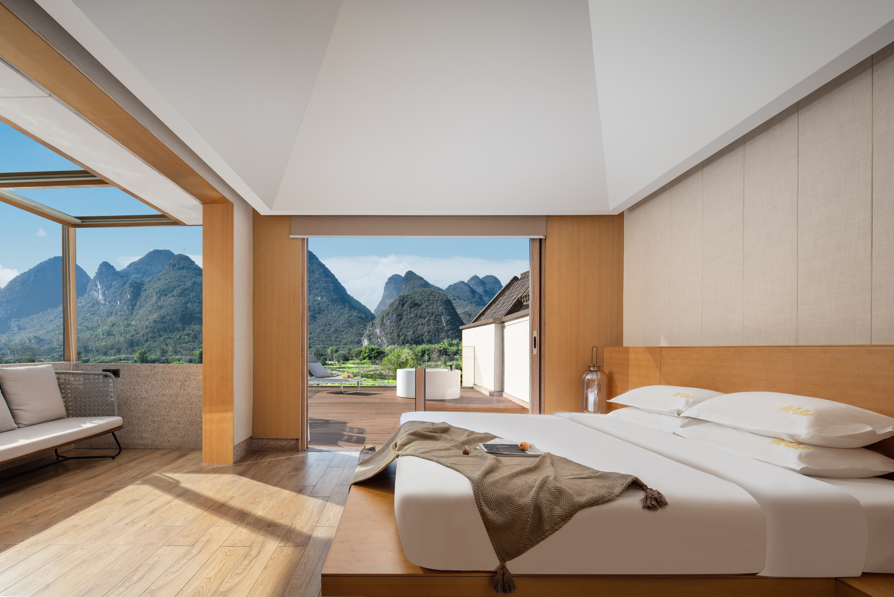 270度奢享阳台·全景大床套房(奢享超大空间+饱览日落山水田园风光)