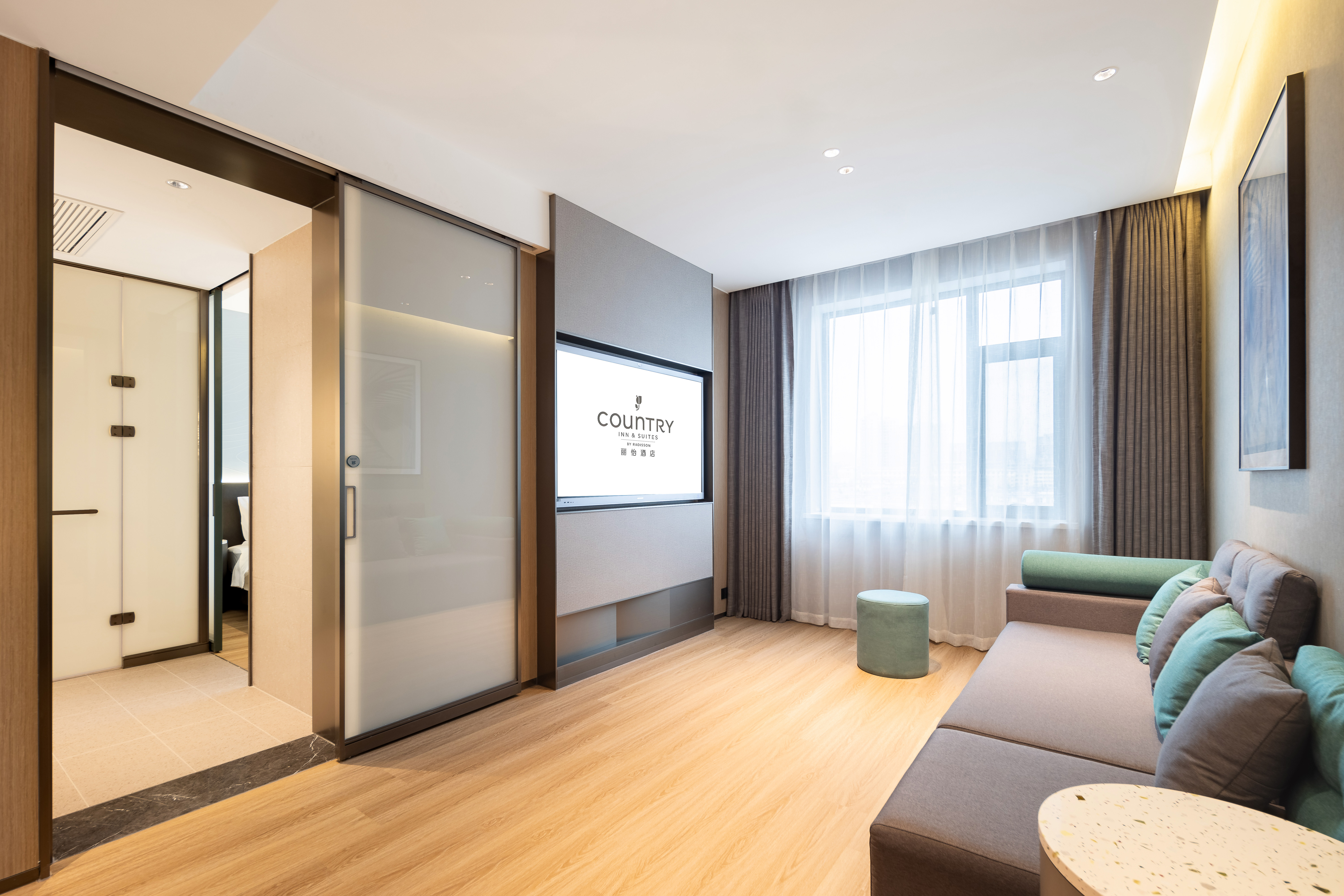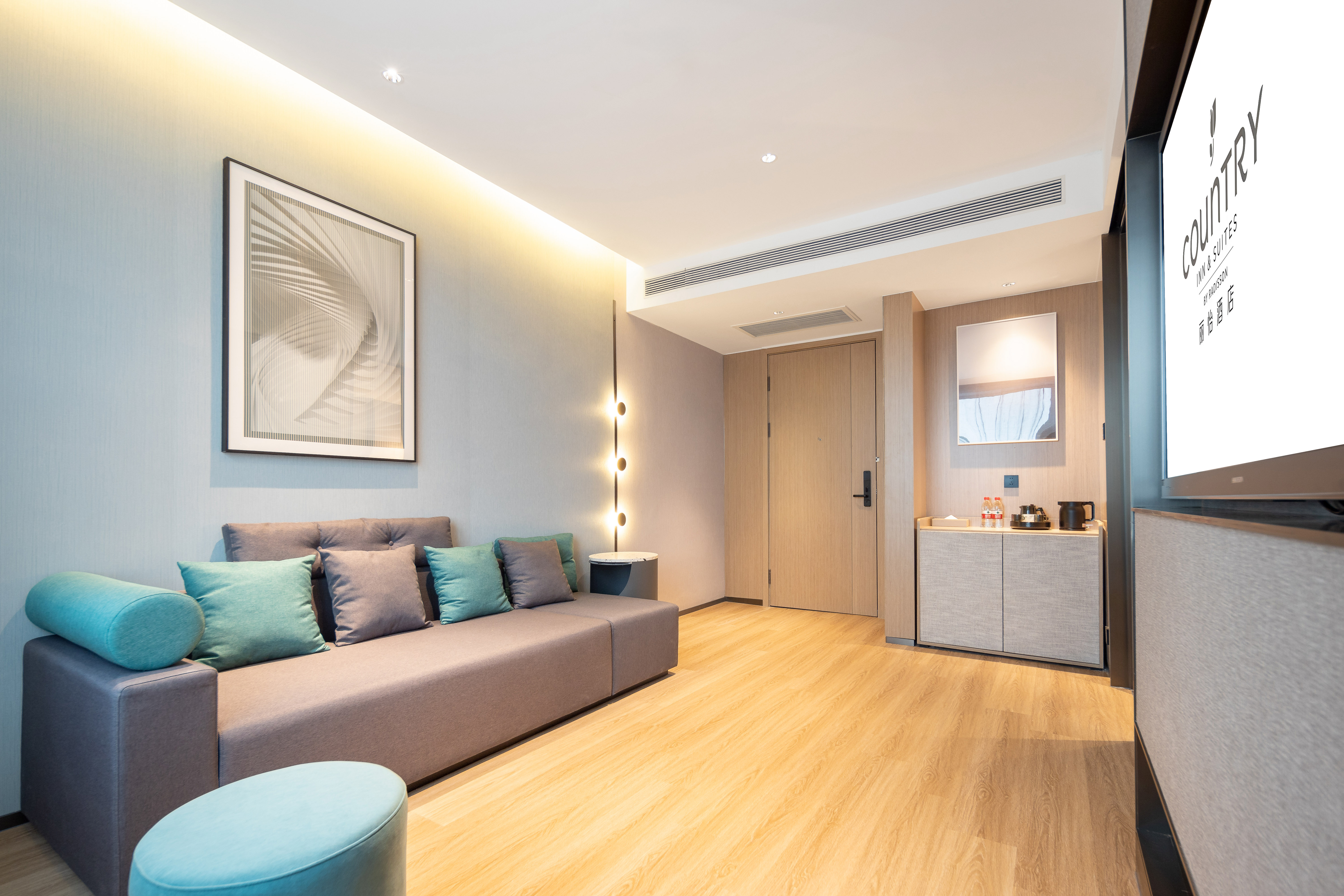 Meetings&Space Suite With Touch Screen Tv, Derucci Mattress, And Adjustable Meeting Table