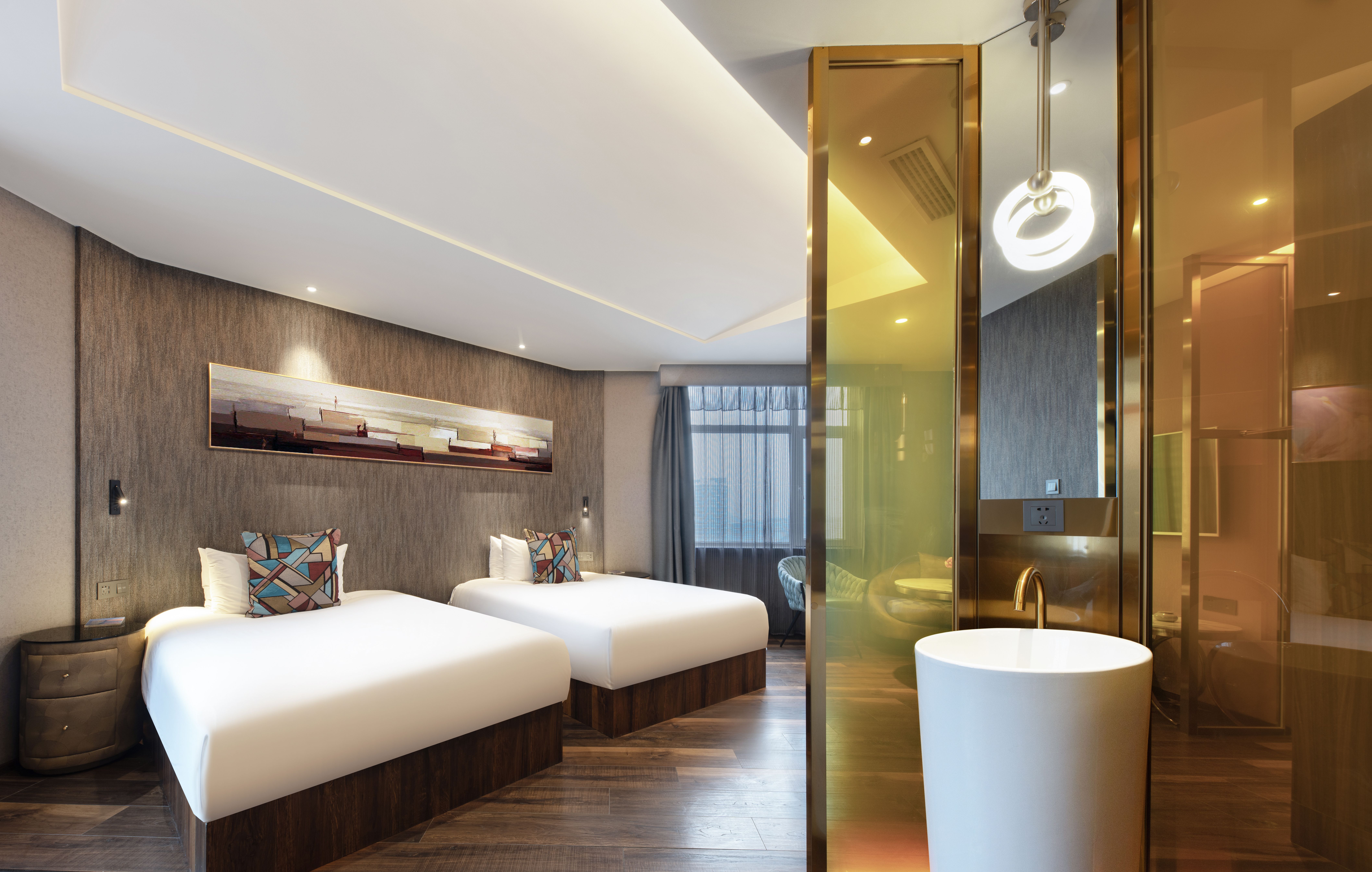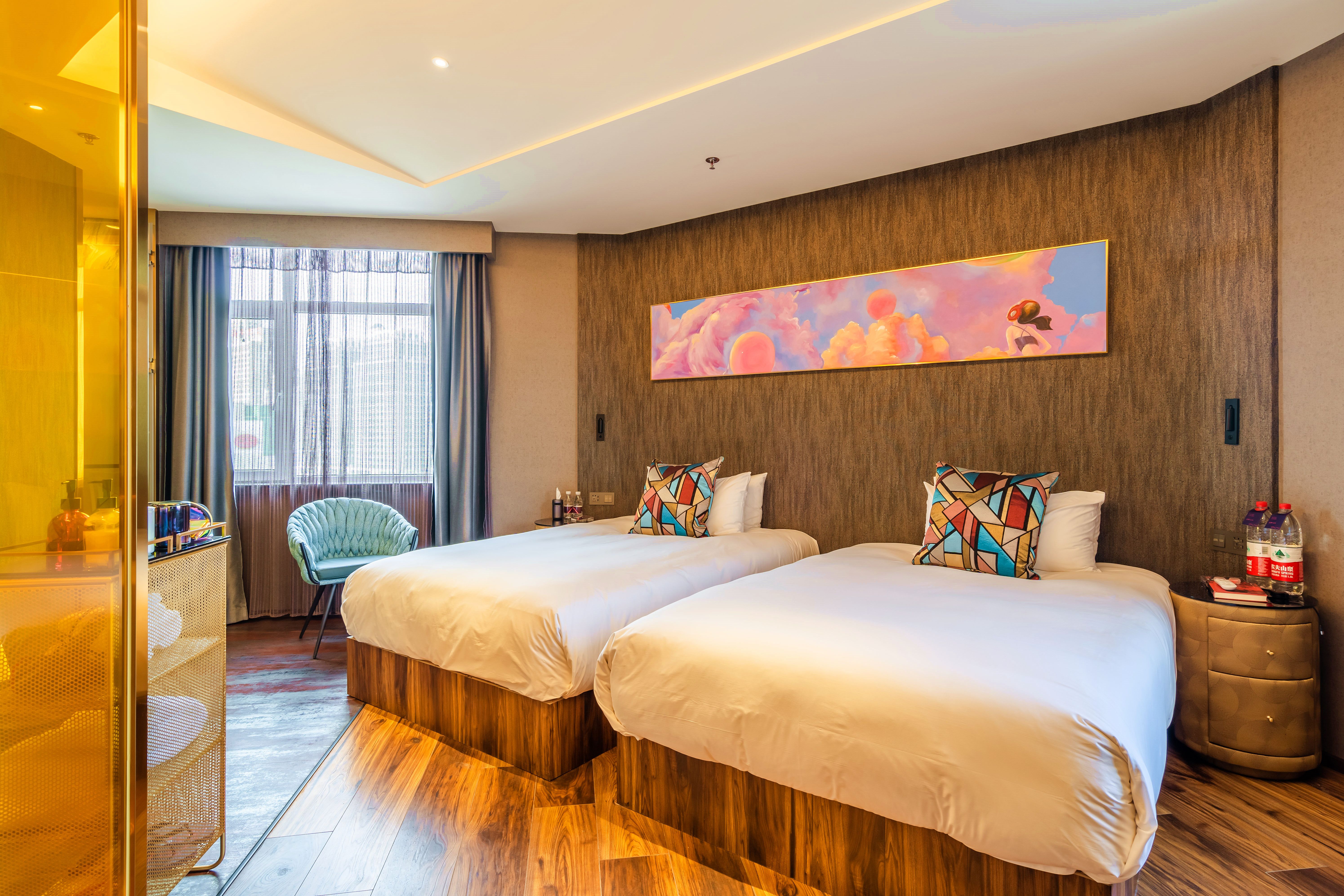 Cozy Twin Room With Dual Windows, Leisure Couch, And Separate Shower
