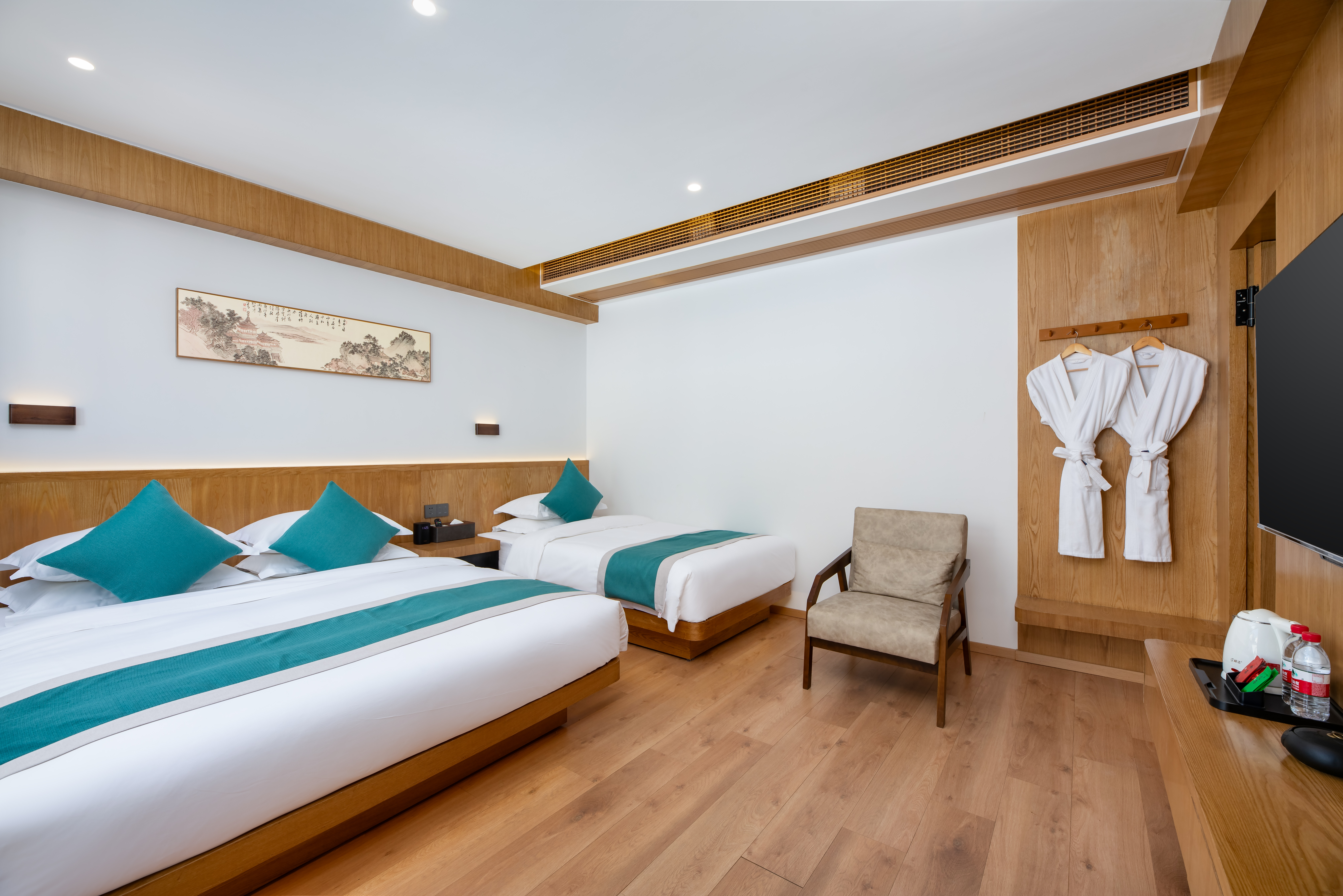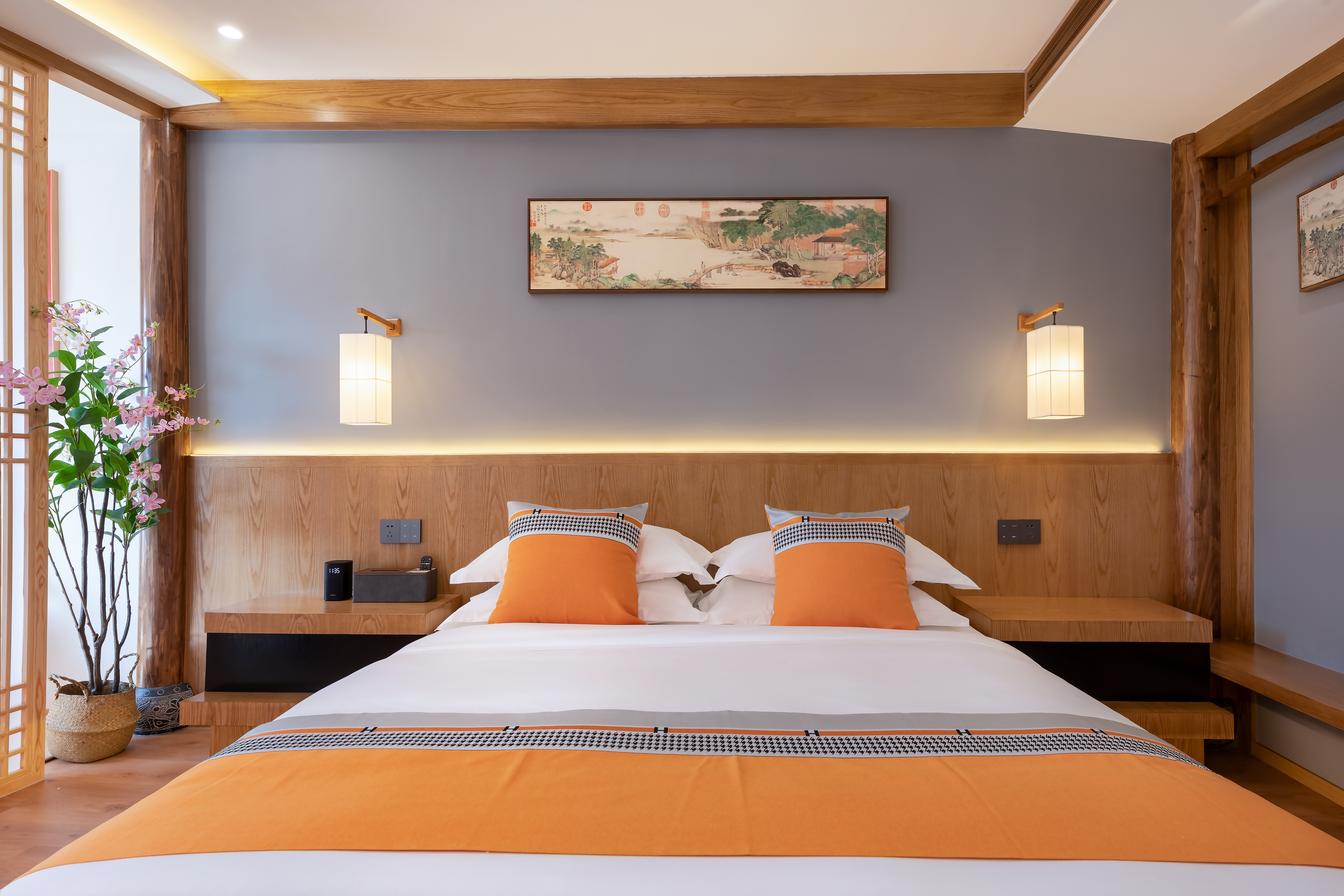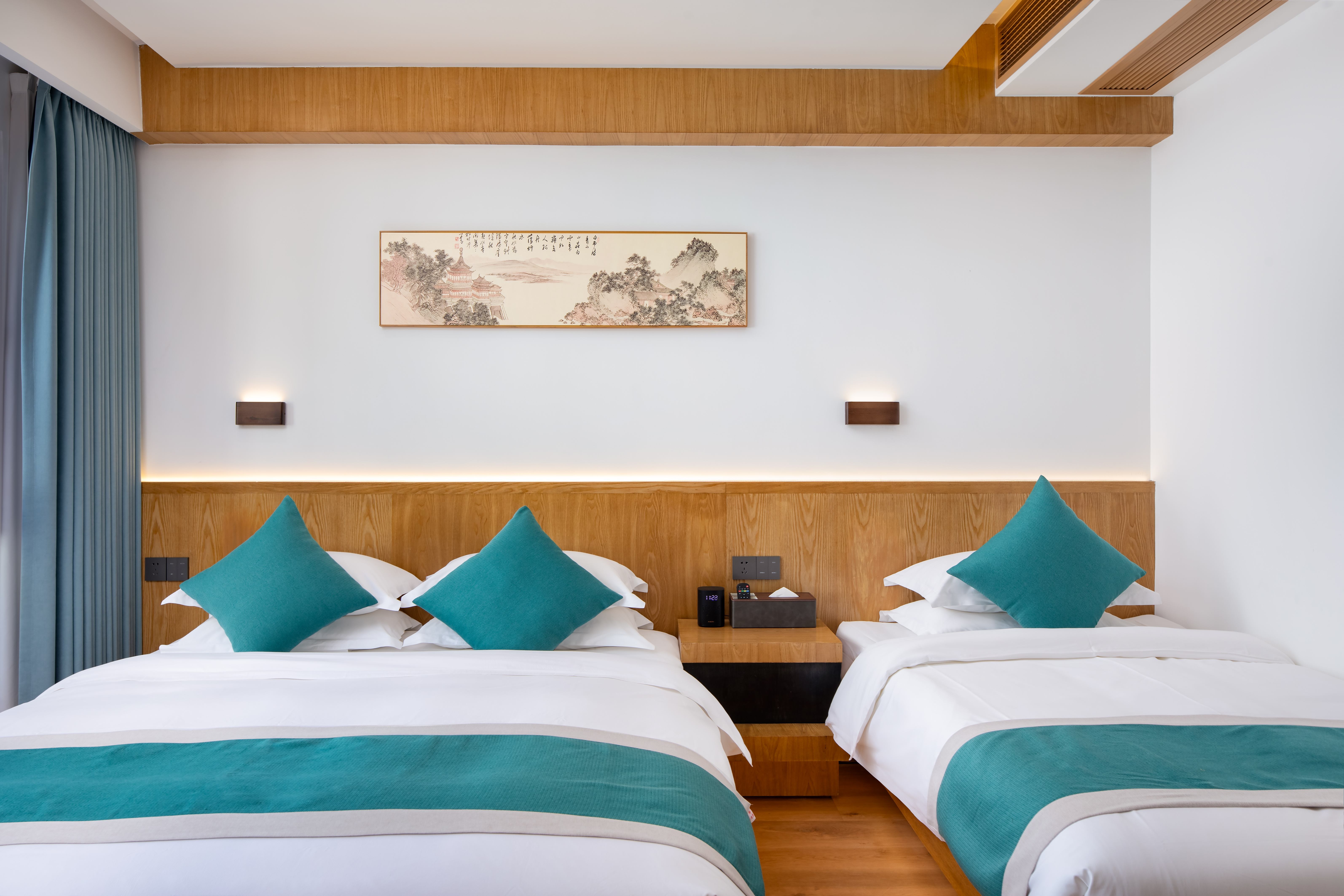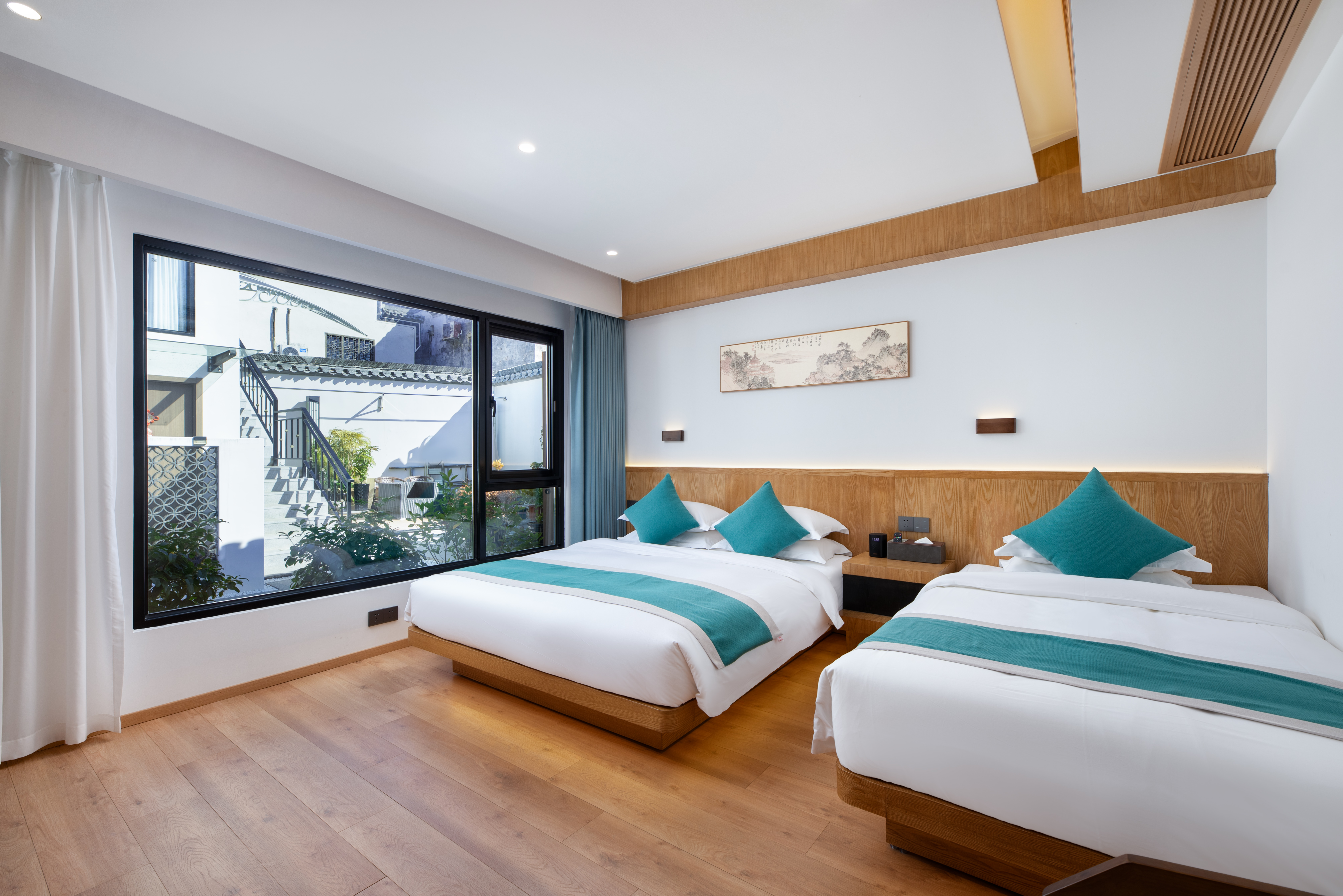 枕山(地暖)·亭院景观·带浴缸·智能声控复式家庭双床房