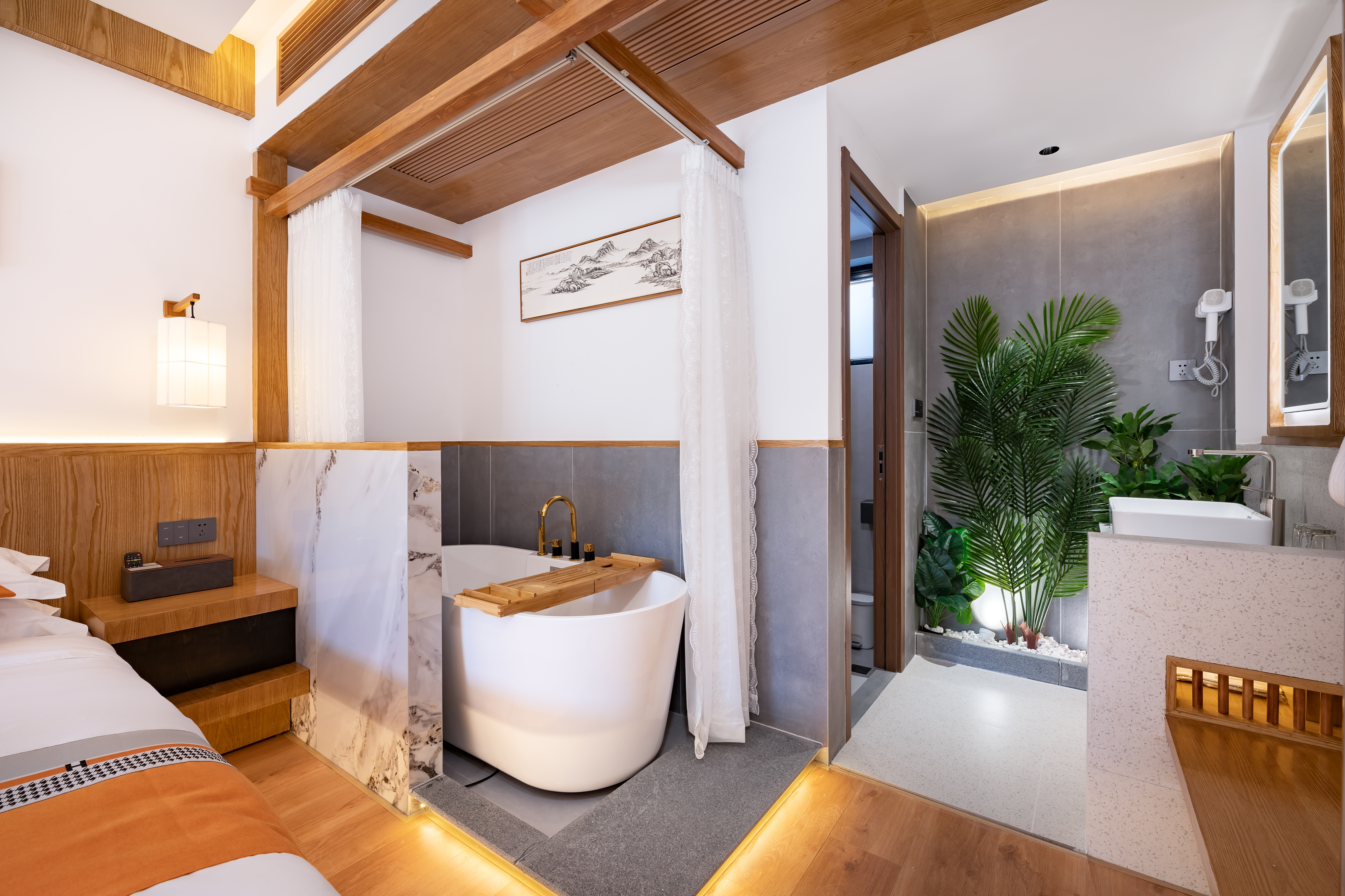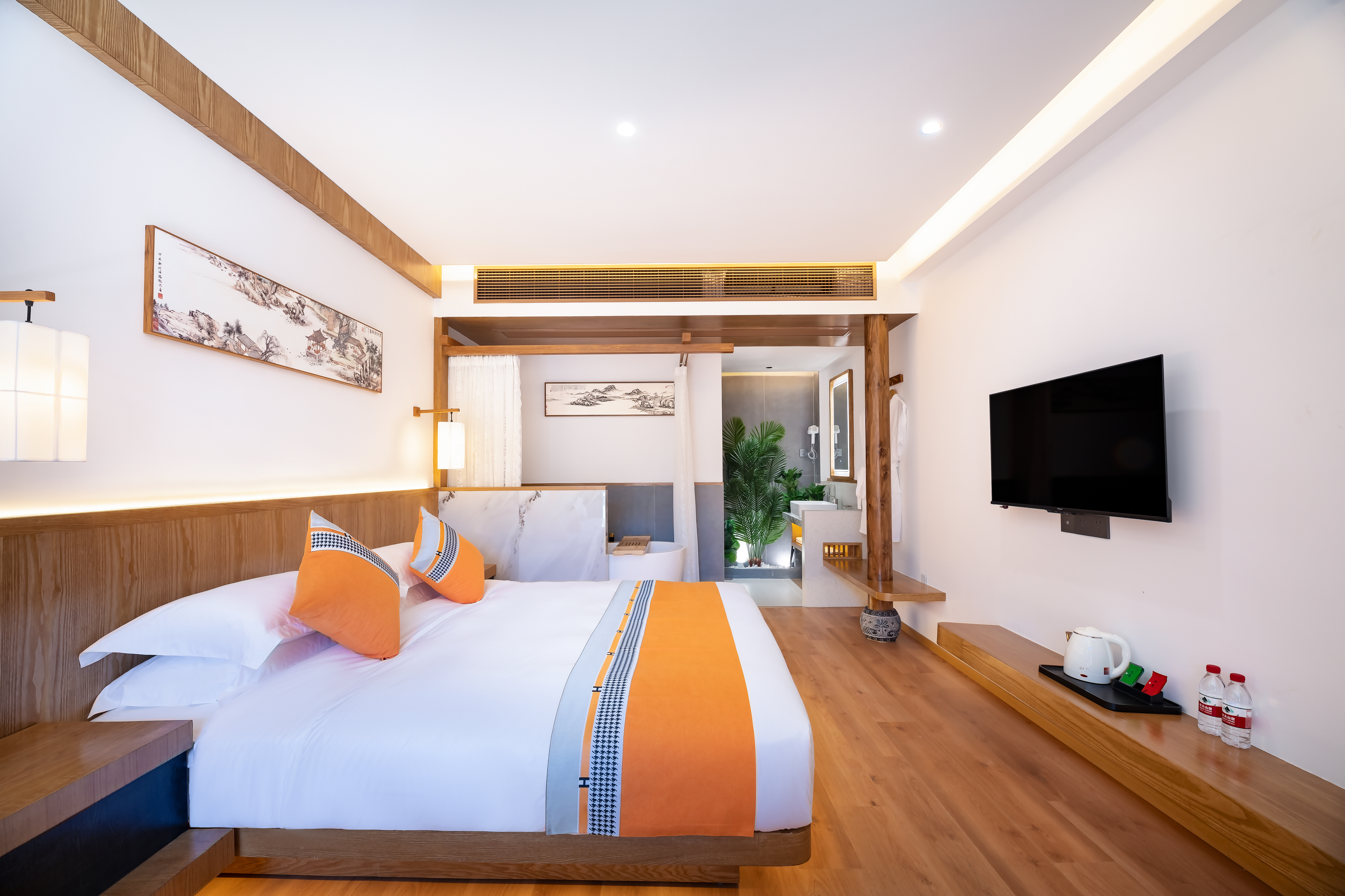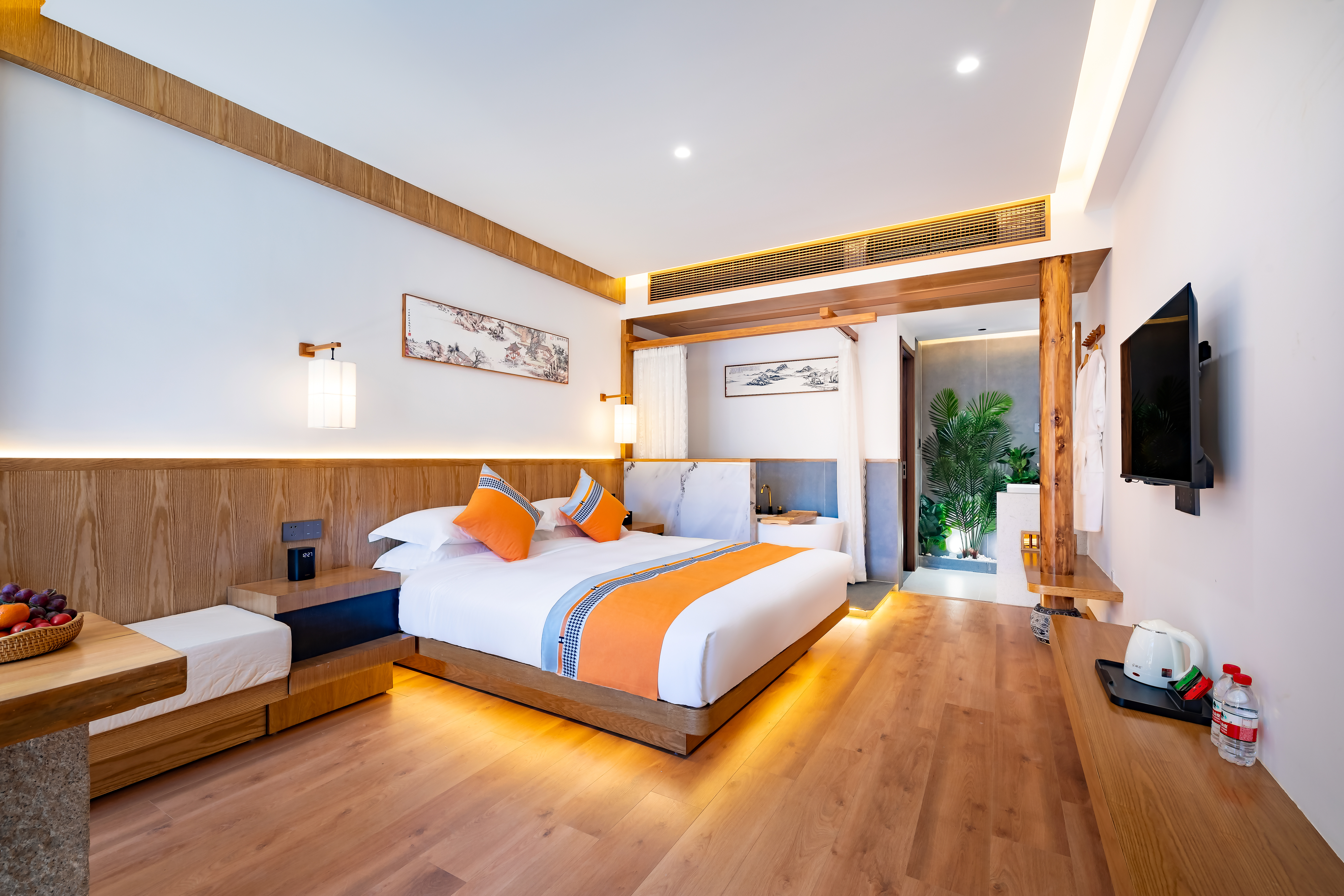 观鱼(地暖)·休闲茶歇·带浴缸院景智能大床房