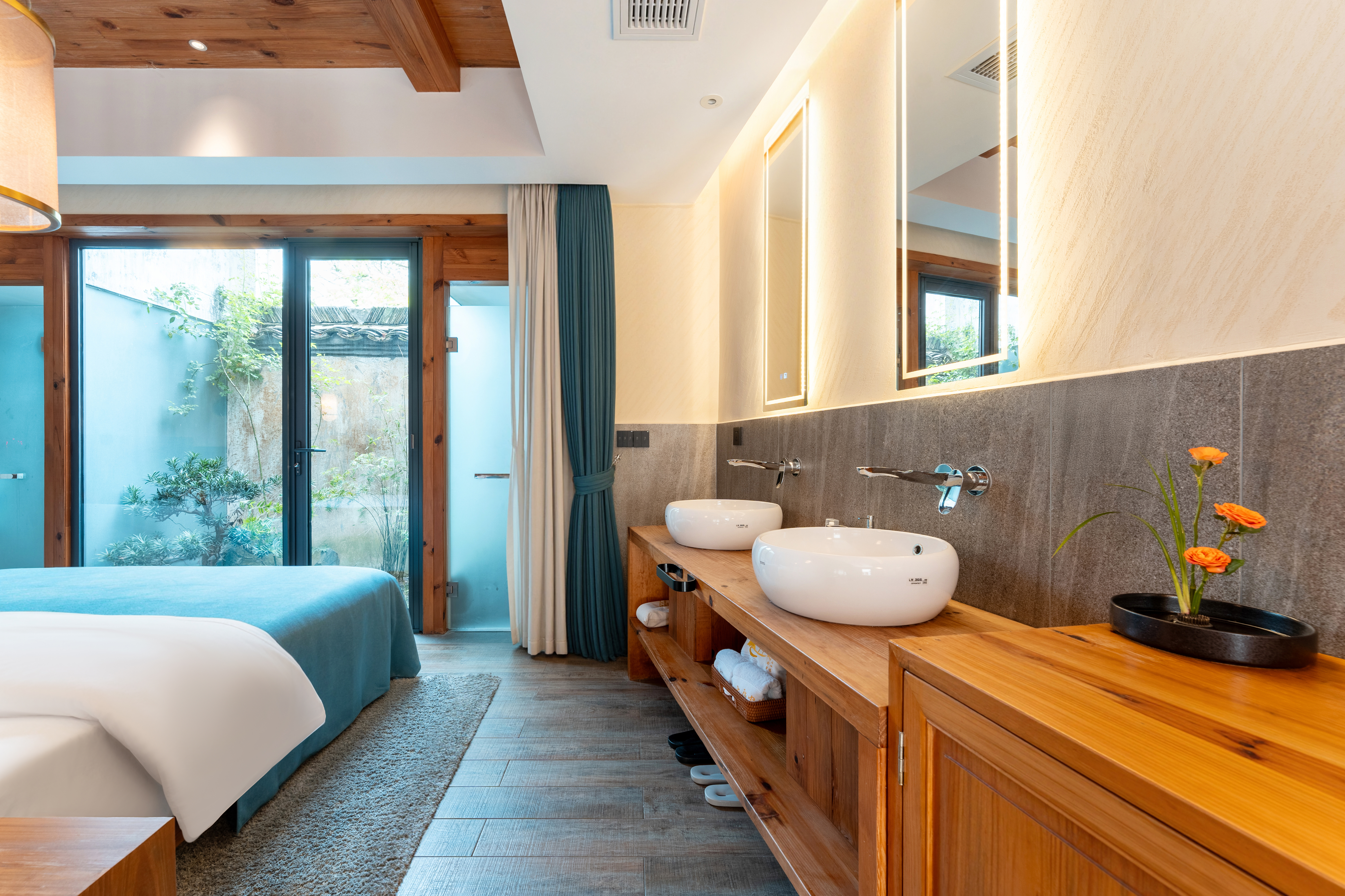 隐院陆号丨禅意双床房【中央空调+地暖+院景】