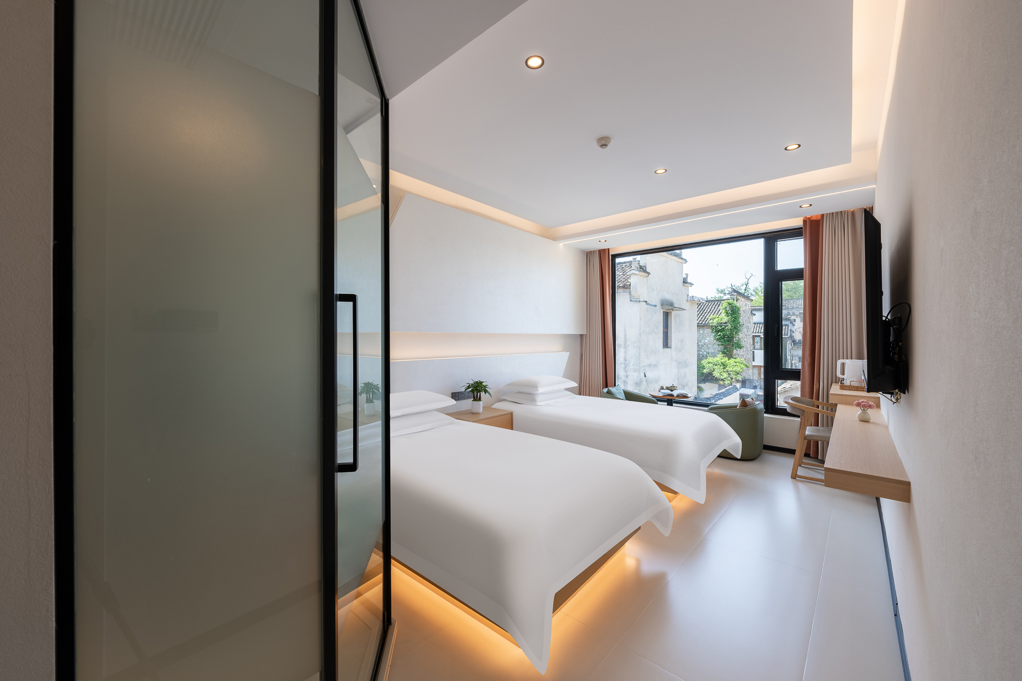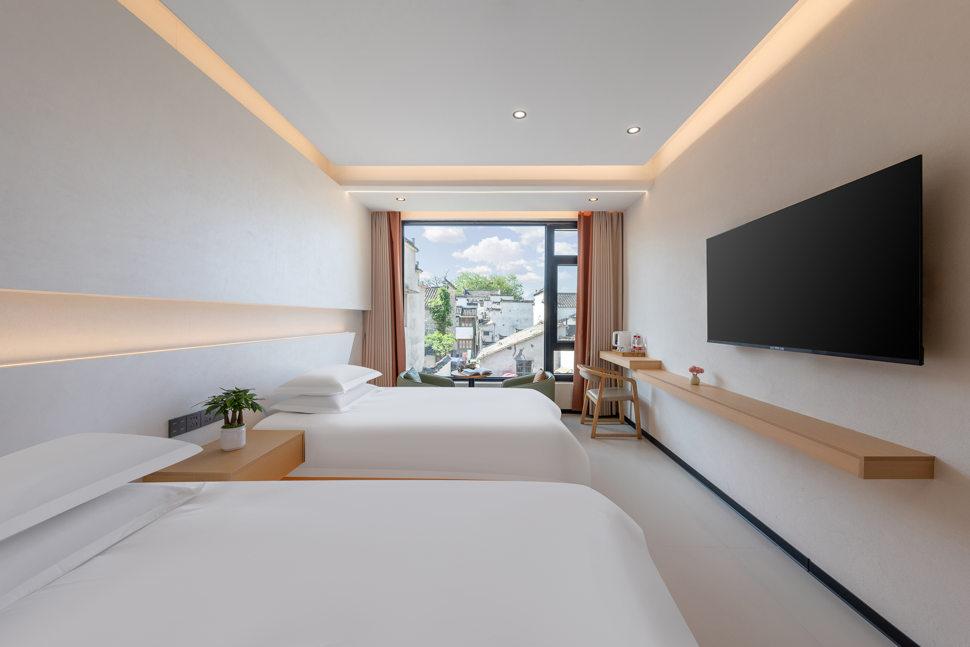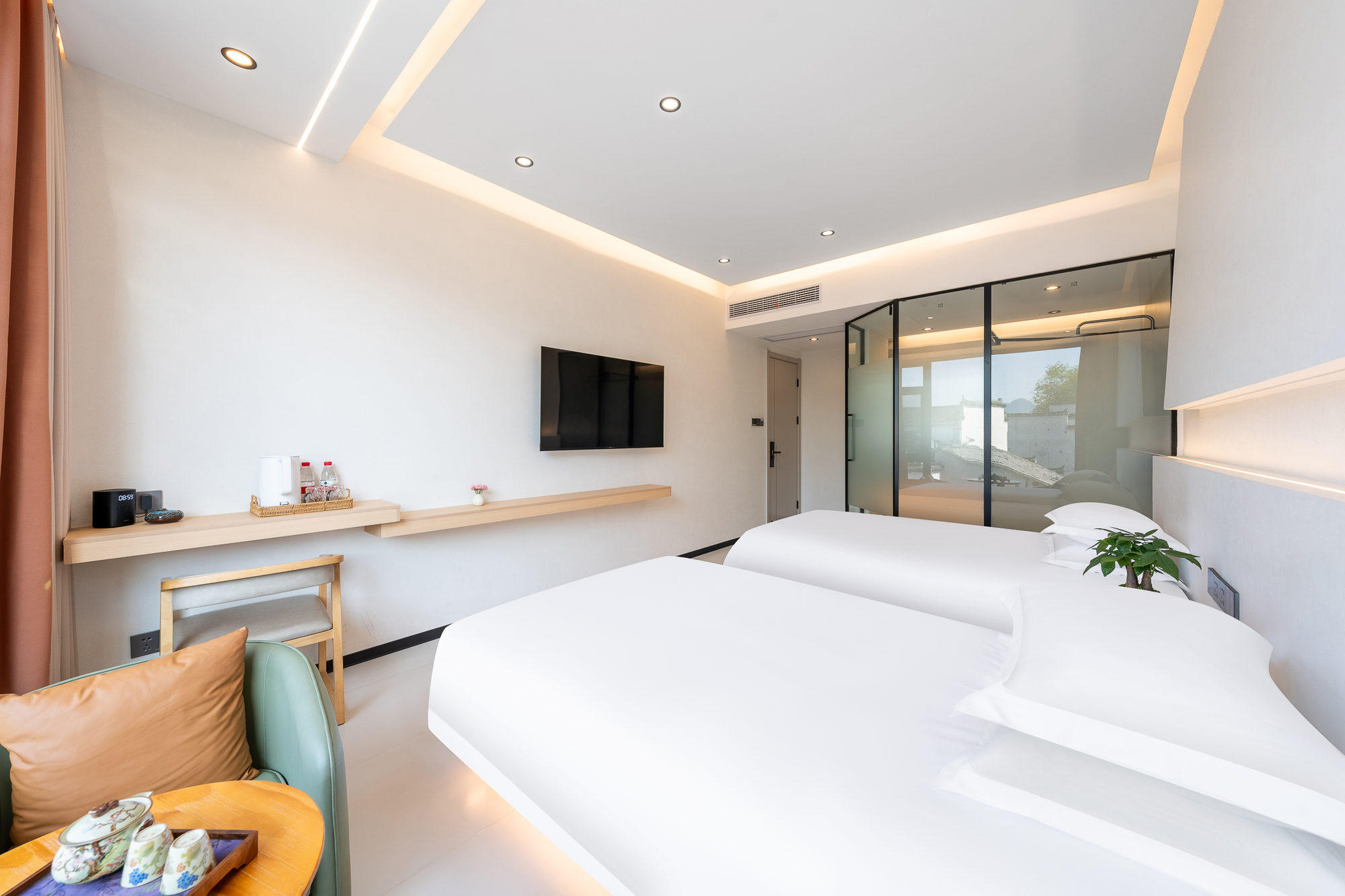 栖间堂-景观双床房(地暖+俯览宏村+全屋智能+深度睡眠)
