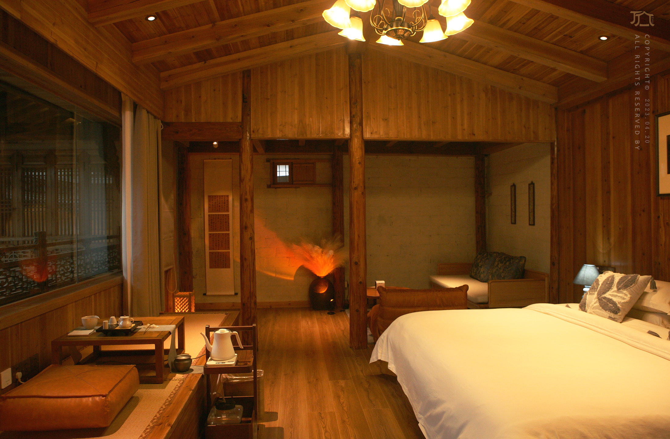 古宅别墅【柿井】百年徽式庭院空间+花园+地暖+茶室+书房+私汤泡池+娱乐投影