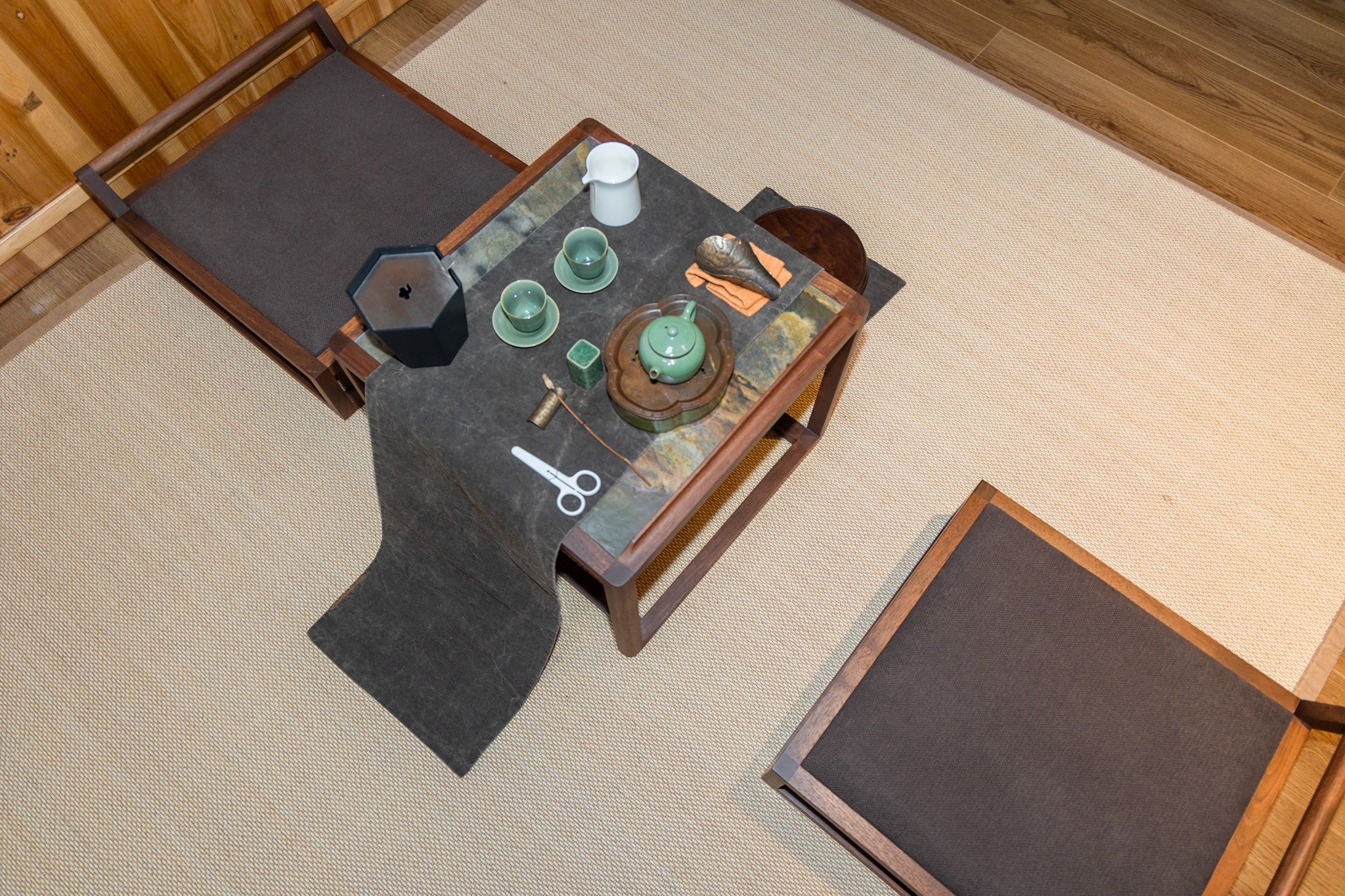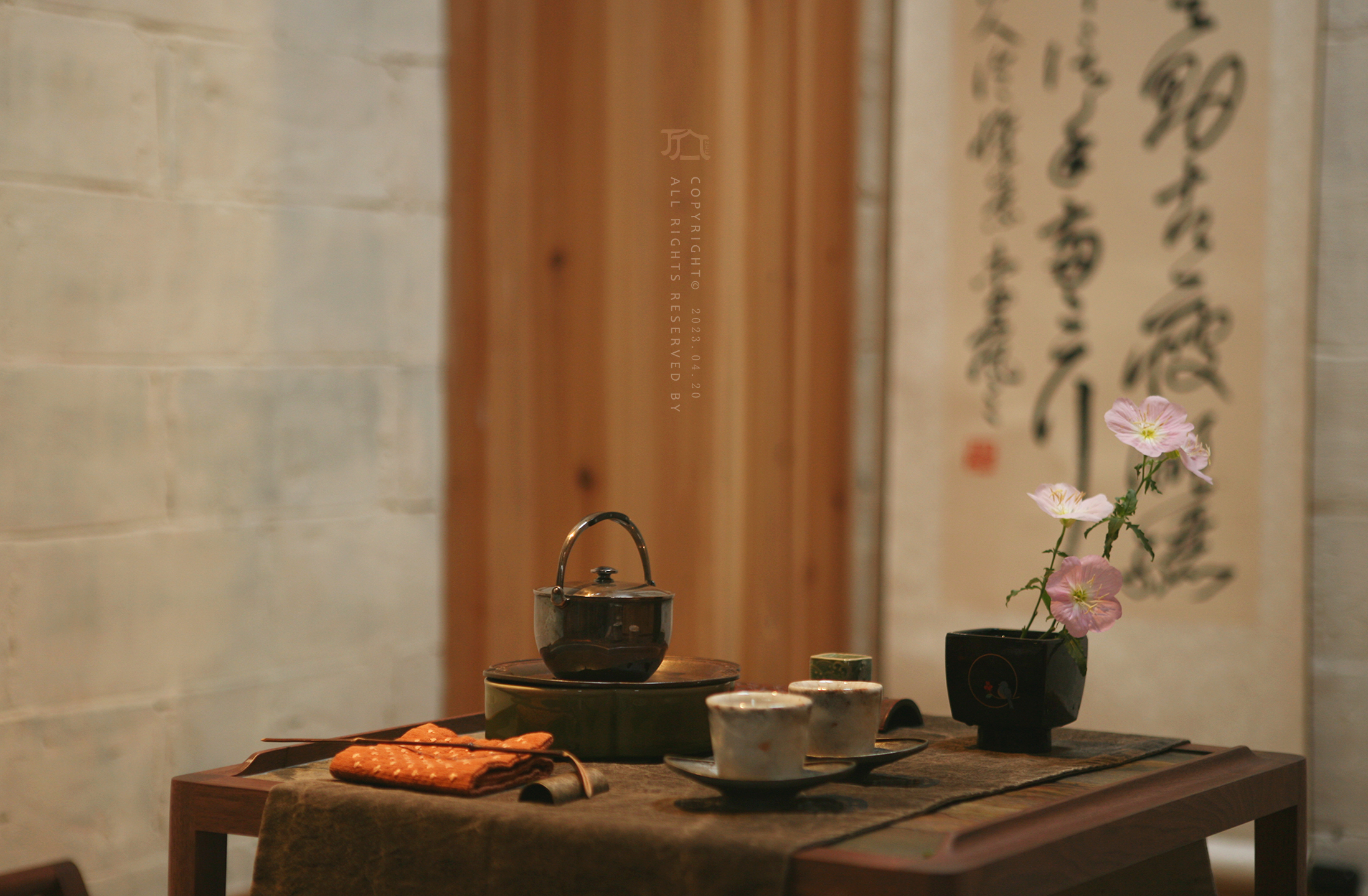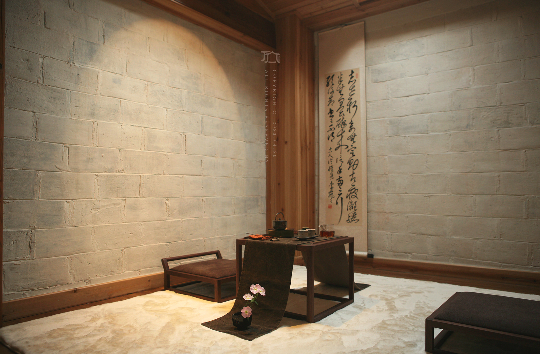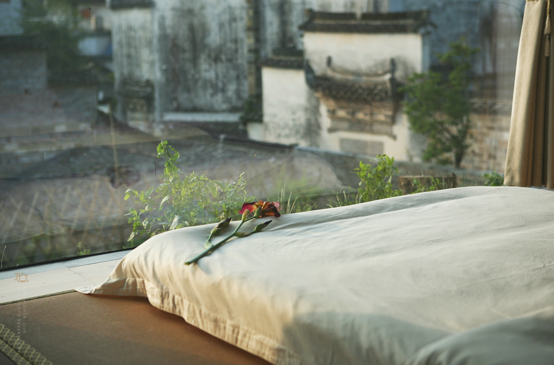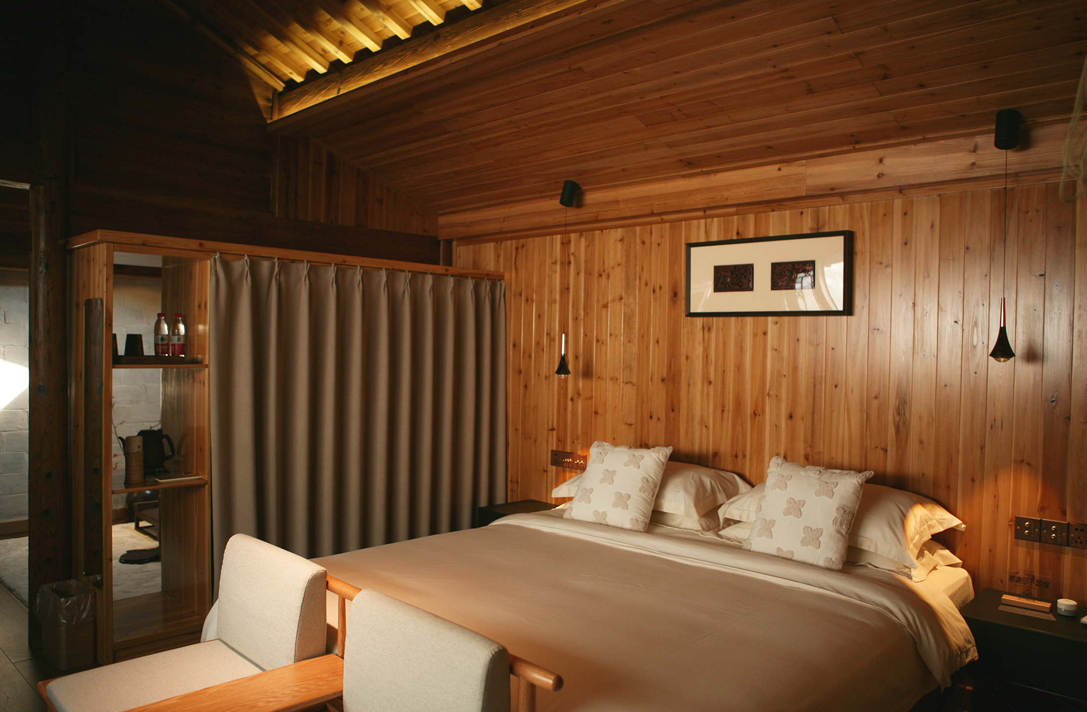 晒秋·马头墙茶韵大床房(南台)传统砖雕+榻榻米茶席